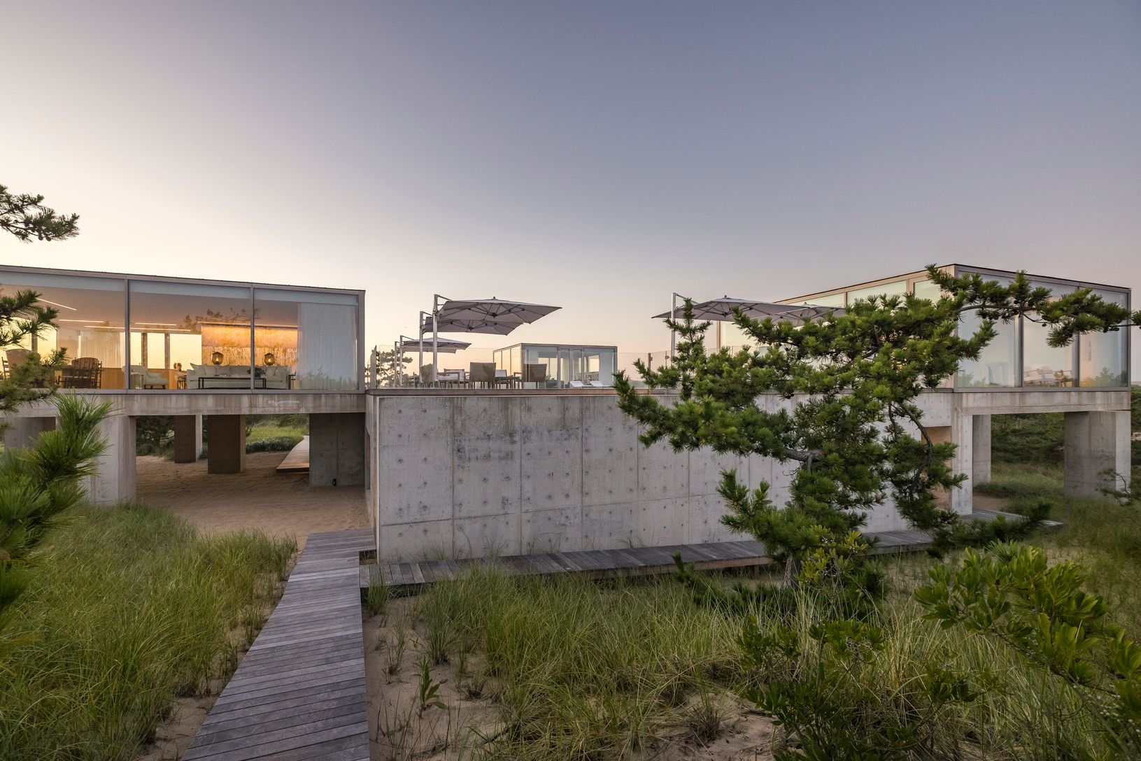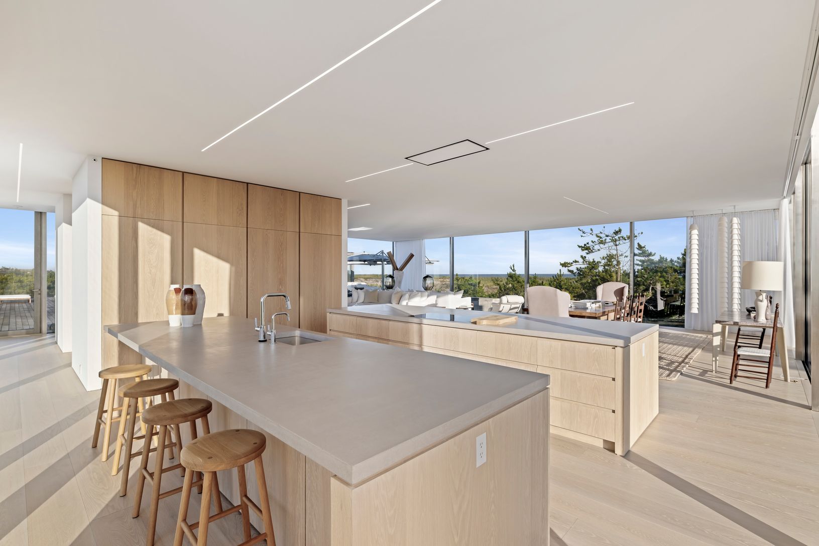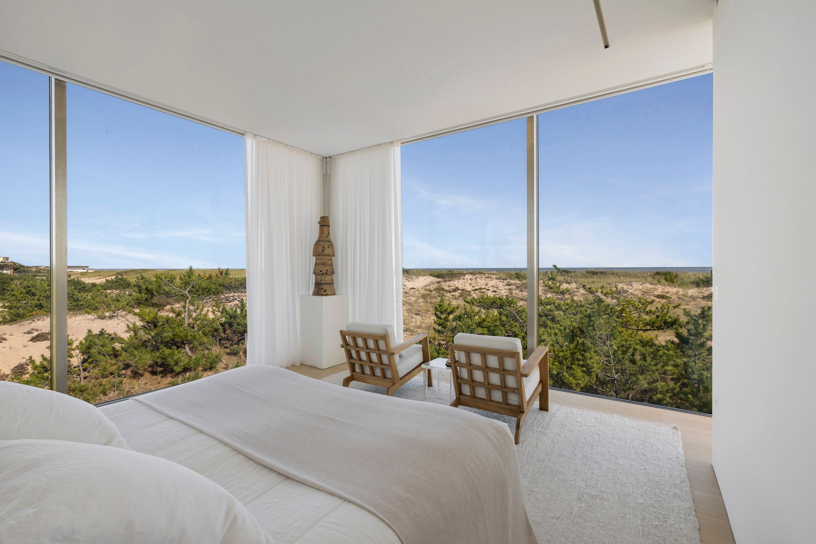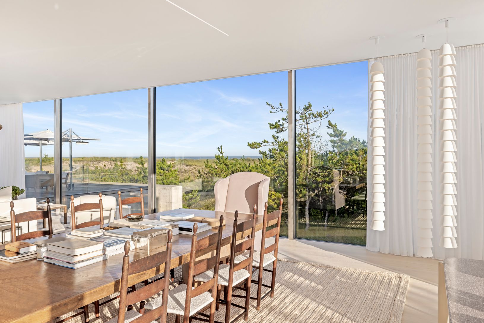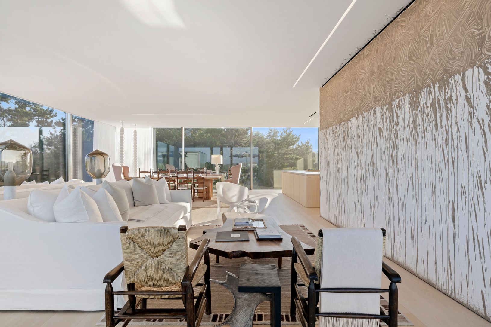Set on the ocean and completed in 2023 after a five-year design and build process with renowned New York architects Thomas Phifer and Partners, this gated oceanfront estate is a striking modern retreat seamlessly integrated into its natural dune landscape with unobstructed views to the east. Conceived as a private sanctuary, the residence is discreetly tucked into the coastal scenery, ensuring a rare sense of peace and seclusion. Designed as a