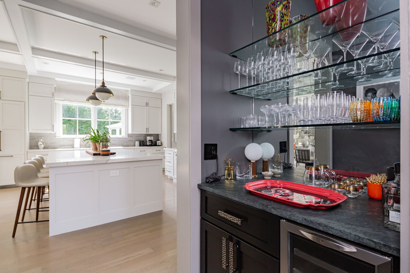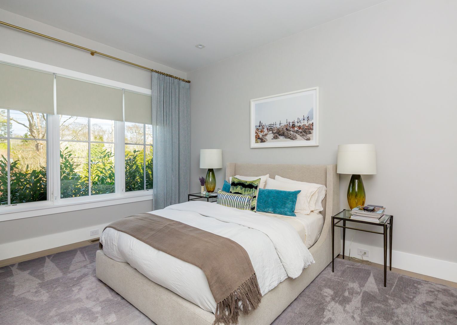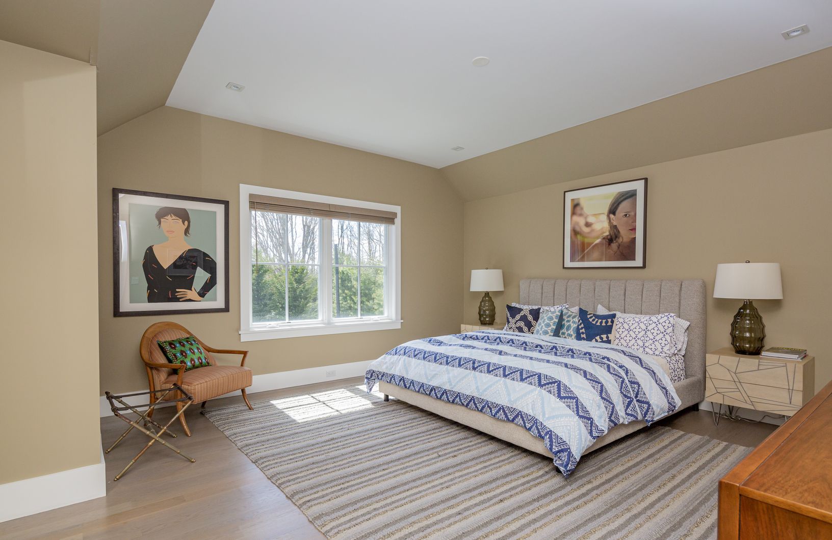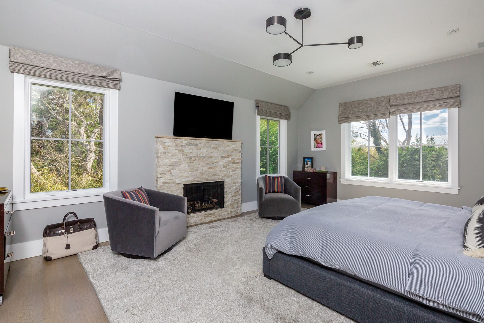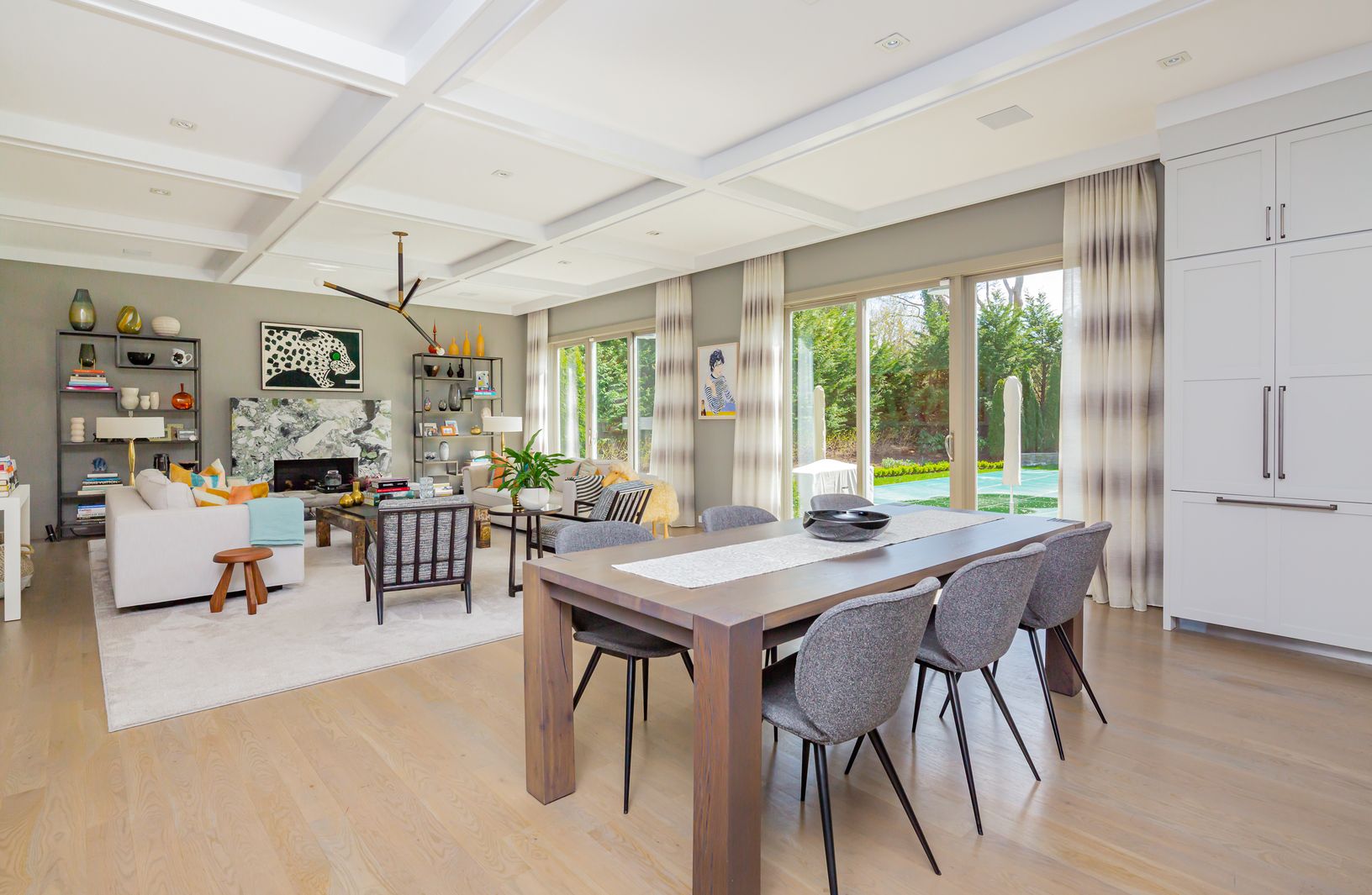 Enjoy the best part of summer in this chic, new and professionally decorated home with a pool just a couple of minutes to the heart of East Hampton Village. Its 4,500 sq. ft. provide 5 en suite bedrooms and 5.5 baths. Light-filled living areas feature open living-dining-kitchen with coffered ceilings, island seating, quartz countertops, high end stainless appliances, and gas fireplace with breakfast area dramatic marble surround in the living