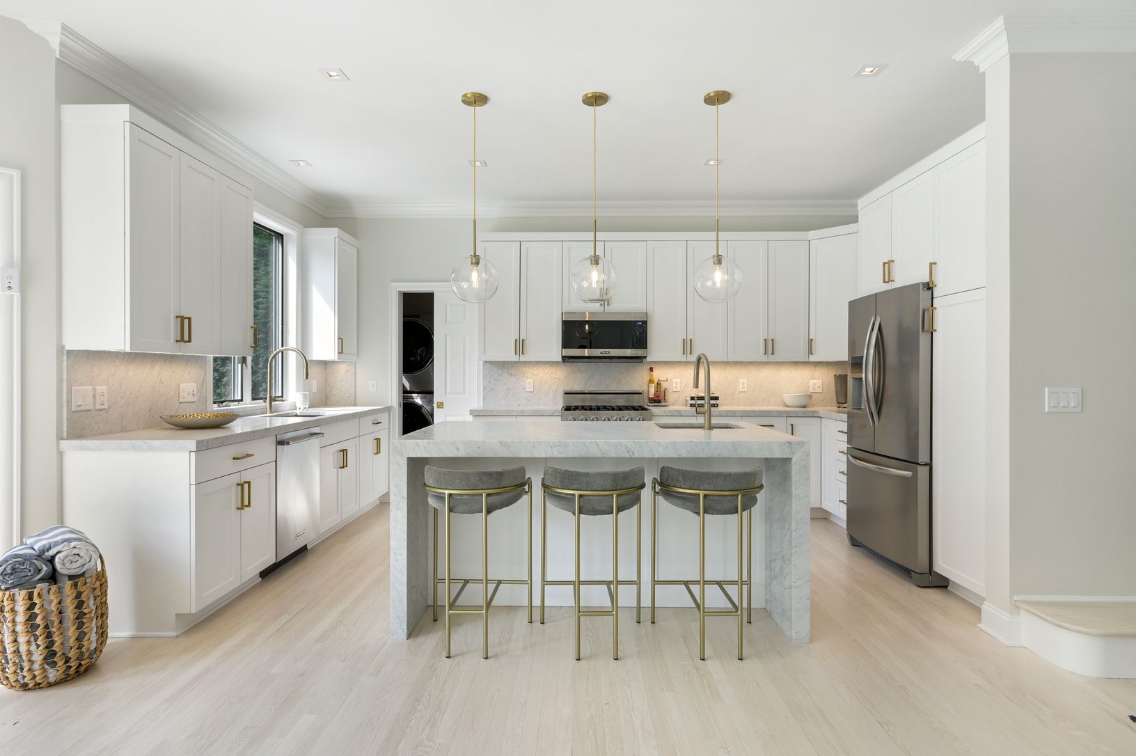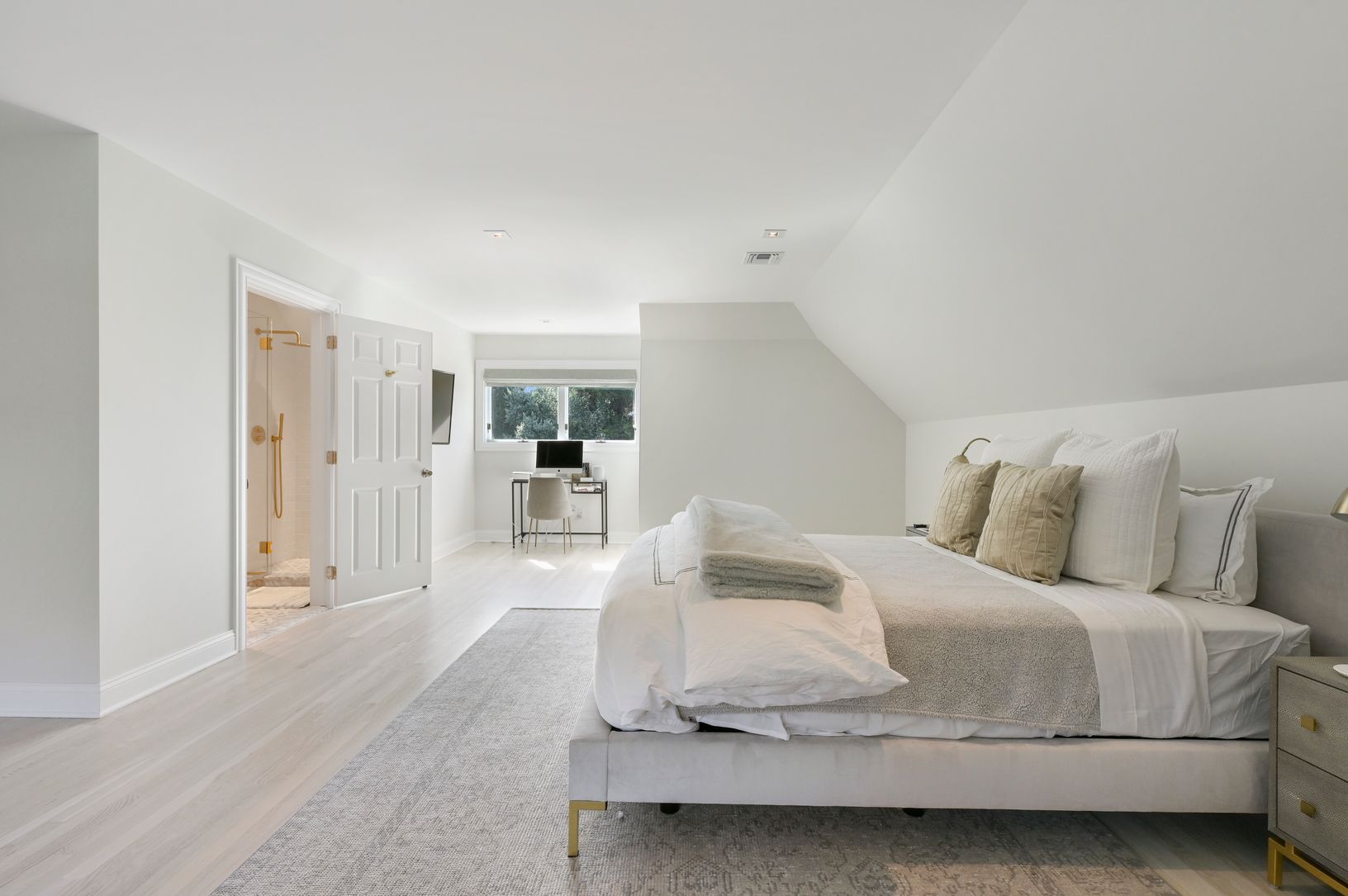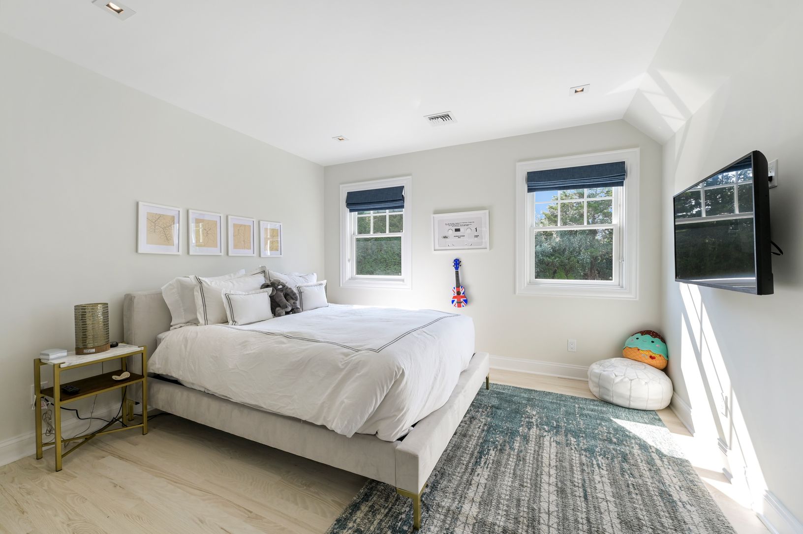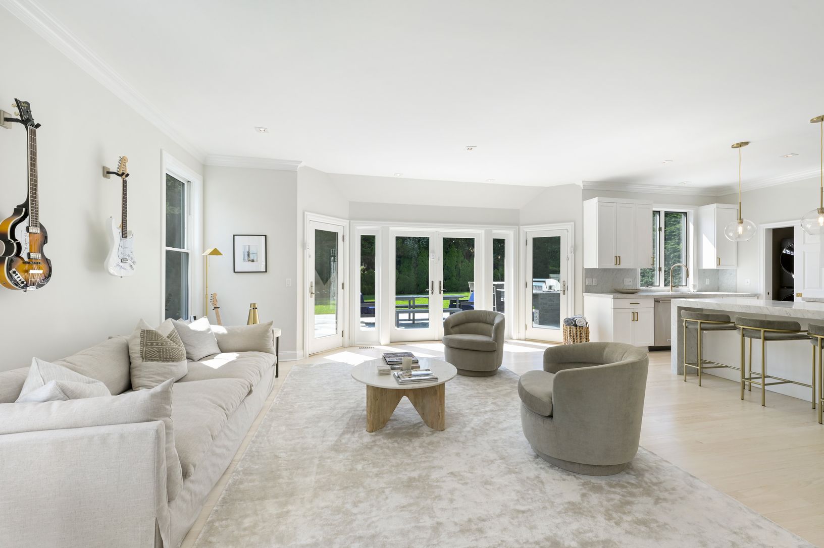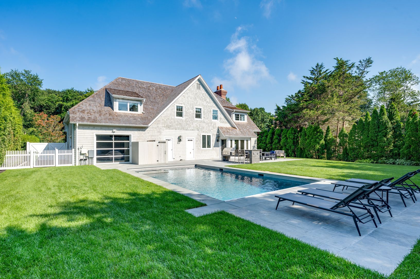 Newly & fully renovated retreat at 55 Gould Street, with access to all things East Hampton, close to town, train and close to village beaches. The custom redesign of this Francis Fleetwood house has transformed this 4 bedroom, 4 full bath and 2 half bath home into a light, bright and airy oasis both inside and out. The first floor includes an inviting entryway, dining room, living room with fireplace, and an over-sized gourmet kitchen with