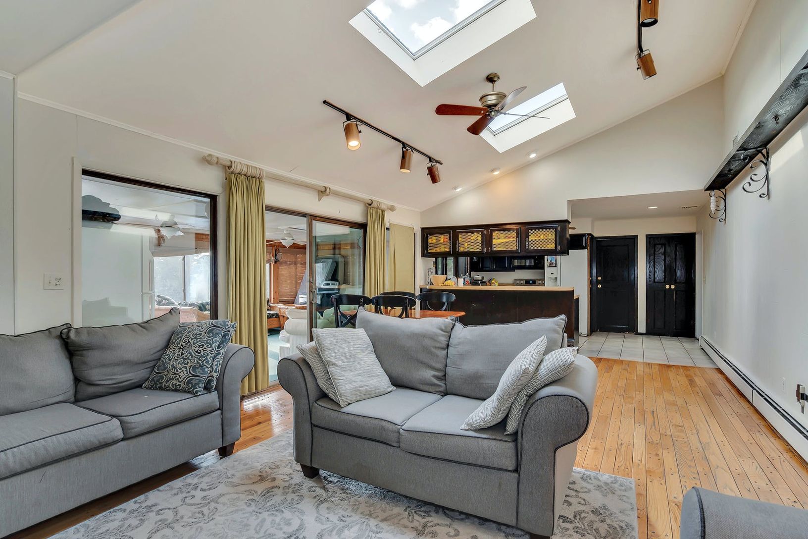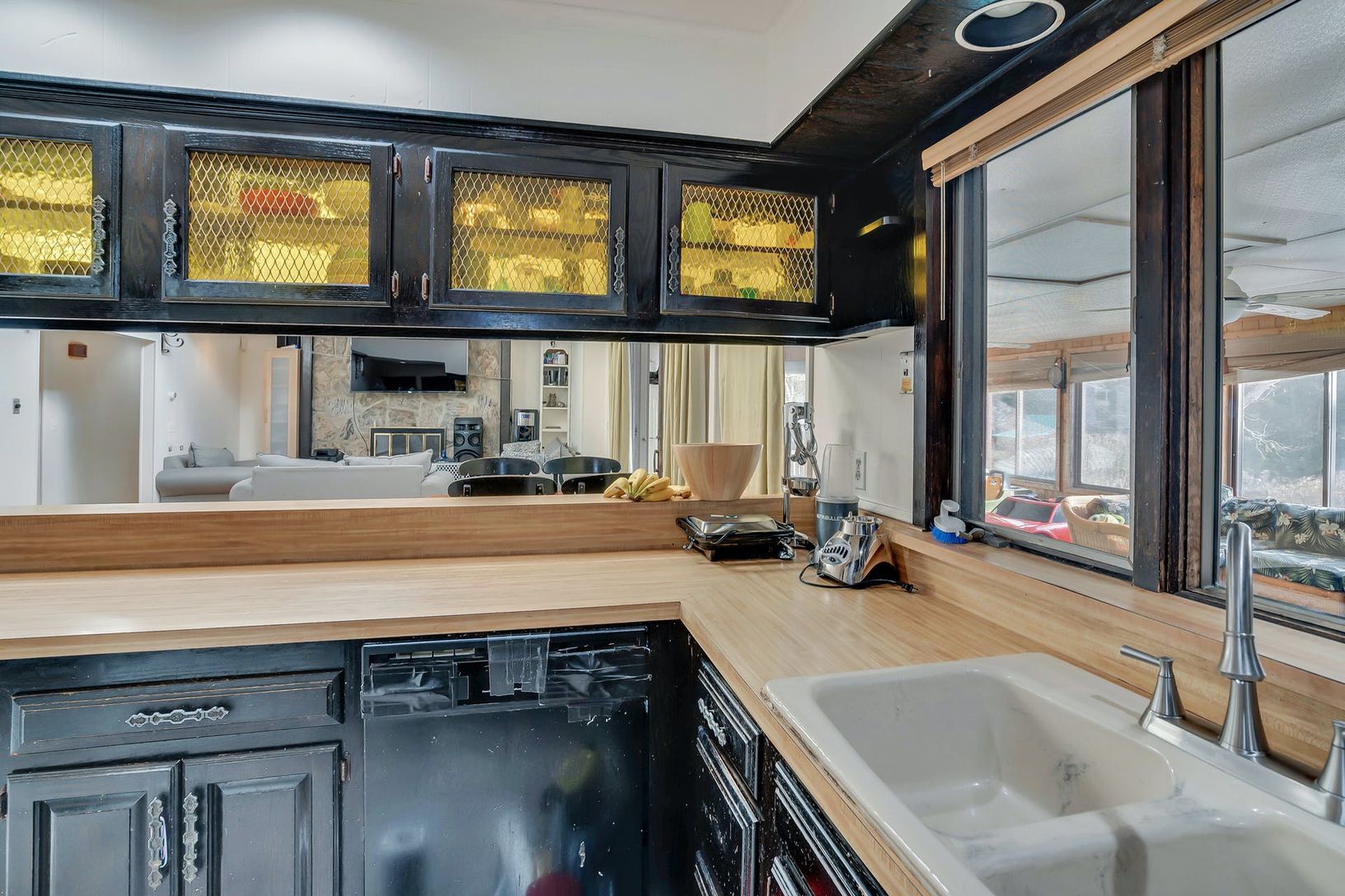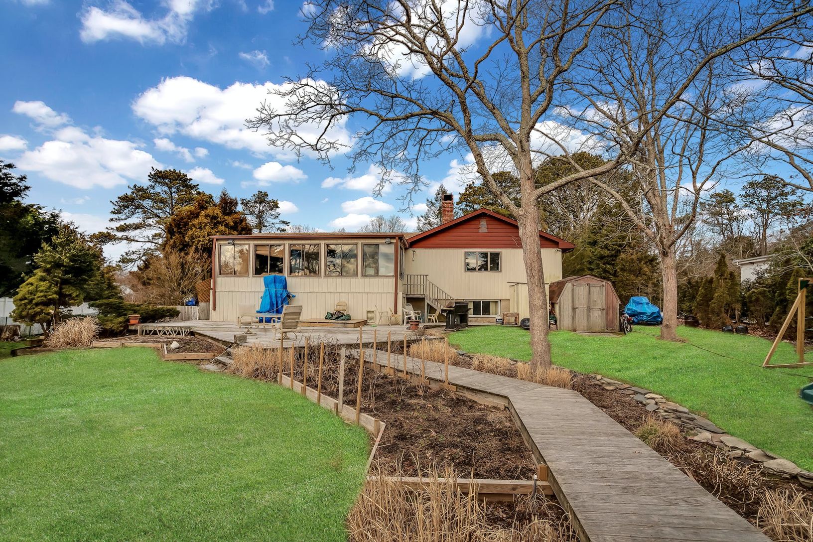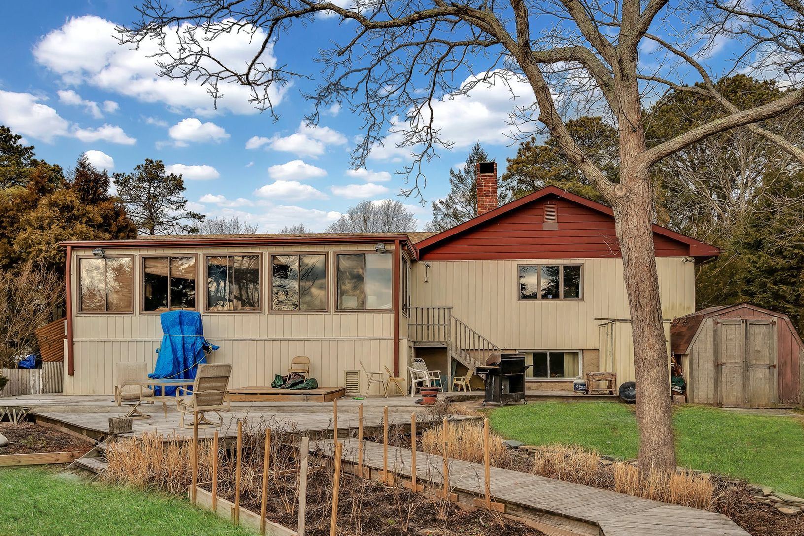 Waterfront home with dock and sunsets. This property can be transformed into a beauty. Very large property with finished family suite downstairs with fireplace. Upstairs has open floorplan with beautiful views of Tiana Bay and magnificent sunsets. Master bedroom with Bath, two guest bedrooms, formal dining room, fireplace, study, kitchen, living room, laundry room, enclosed porch.