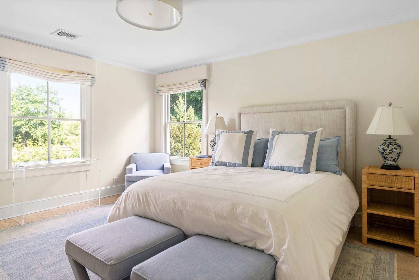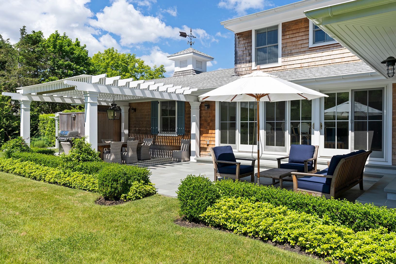 A rare find in today's market, this immaculately renovated 5 bedroom, 3.5 bath home is located south of the highway in the picturesque Village of Quogue. In turnkey condition, this gorgeous home is move-in ready. Perfect for entertaining, it features a stunning heated pool, shaded and sun-soaked patio lounges, an expansive lawn, and a pool house. This light-filled traditional home offers an open floor plan with a seamless flow between the kitc