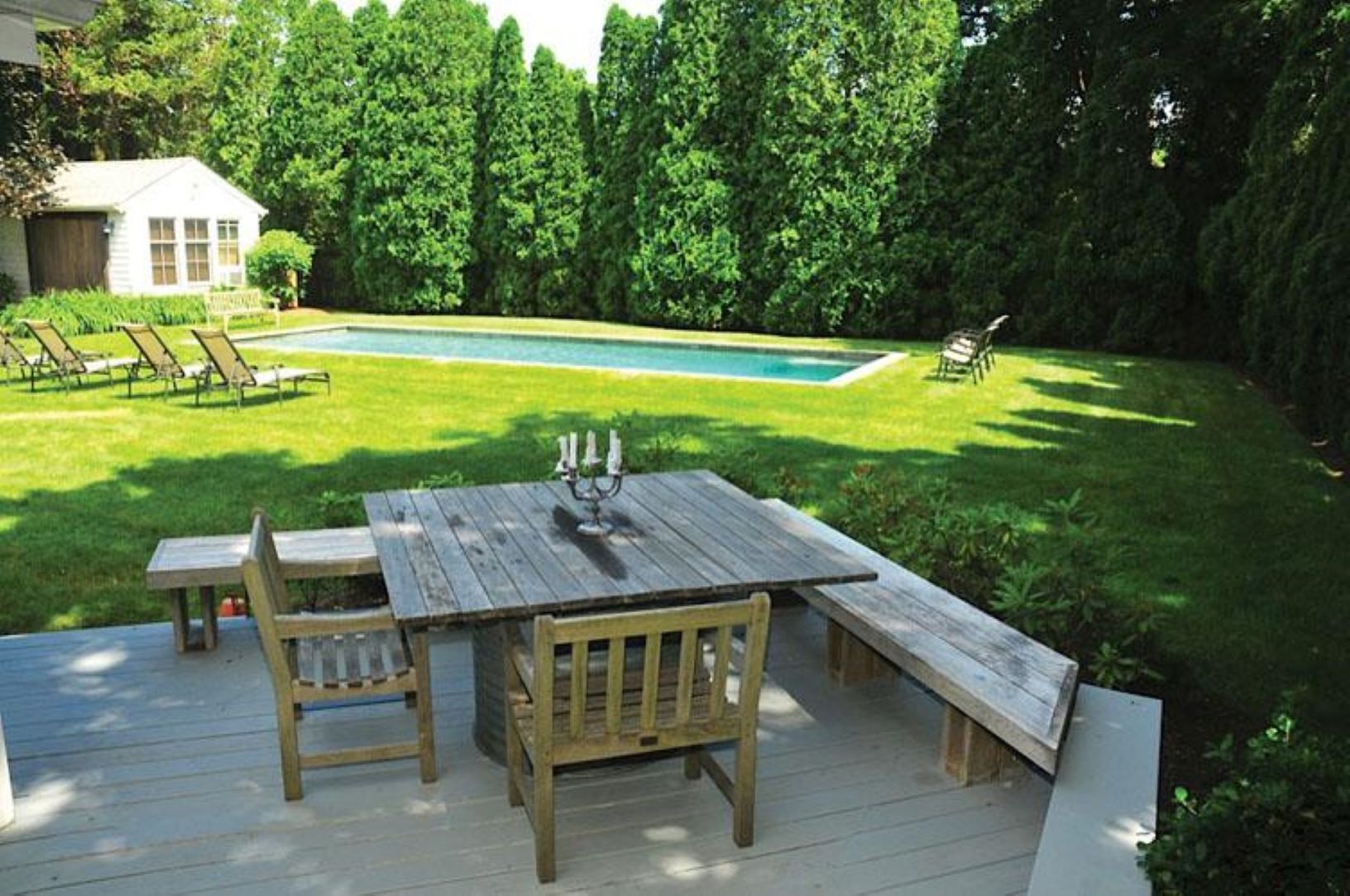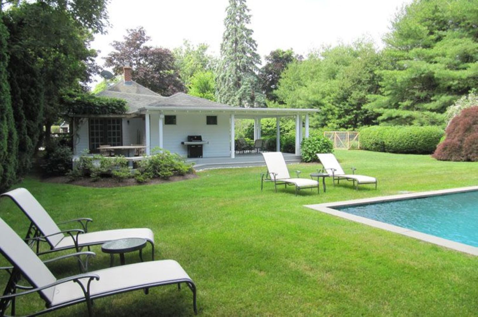 Private charming cottage in East Hampton Village on a shy half acre with heated pool and and separate pool house. The home features three bedroom, two baths and open living plan with central air. The backyard is perfectly landscaped with various decks for relaxing outdoor living