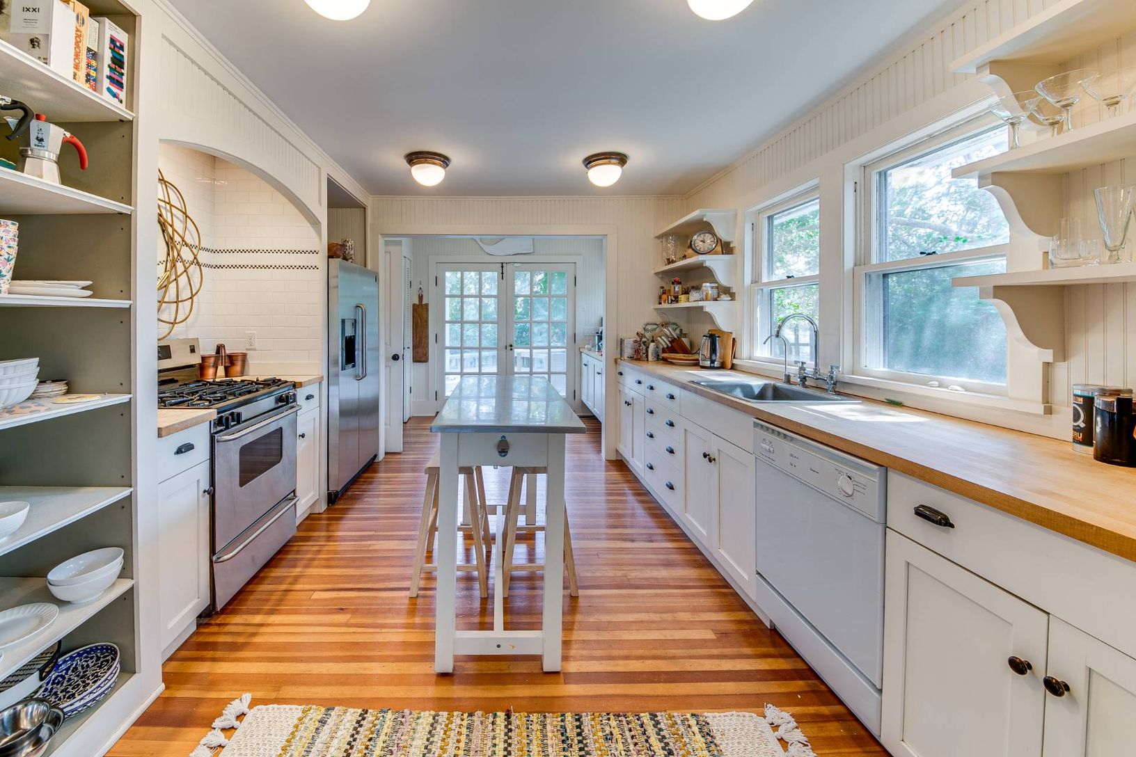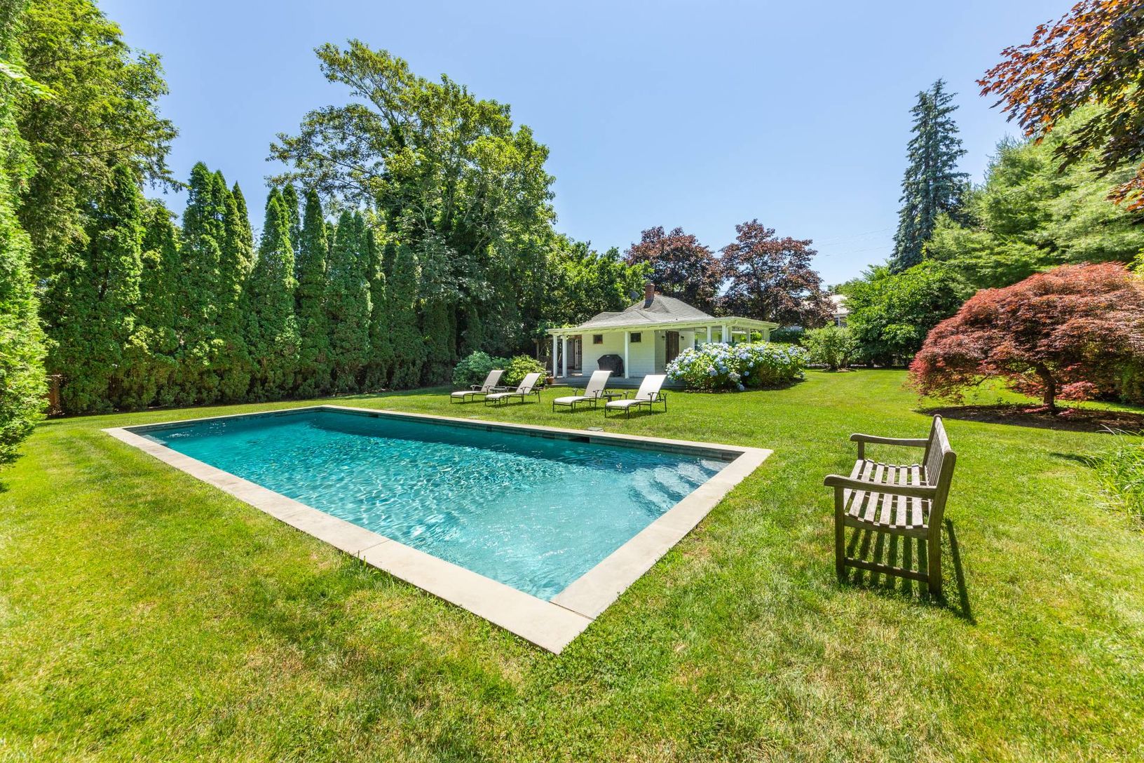 Make summer memories in the Village of East Hampton this year, in this charming cottage with a pool. Set on .39 acre the home offers 3 bedrooms and 2.5 baths in 1,200+/- sq. ft. Enter to open living areas flowing among a living room with comfy seating and large flat screen TV, dining area and eat-in kitchen with island seating, stainless steel appliances and butcher block countertops; a door opens to the spacious grounds where you find the hea
