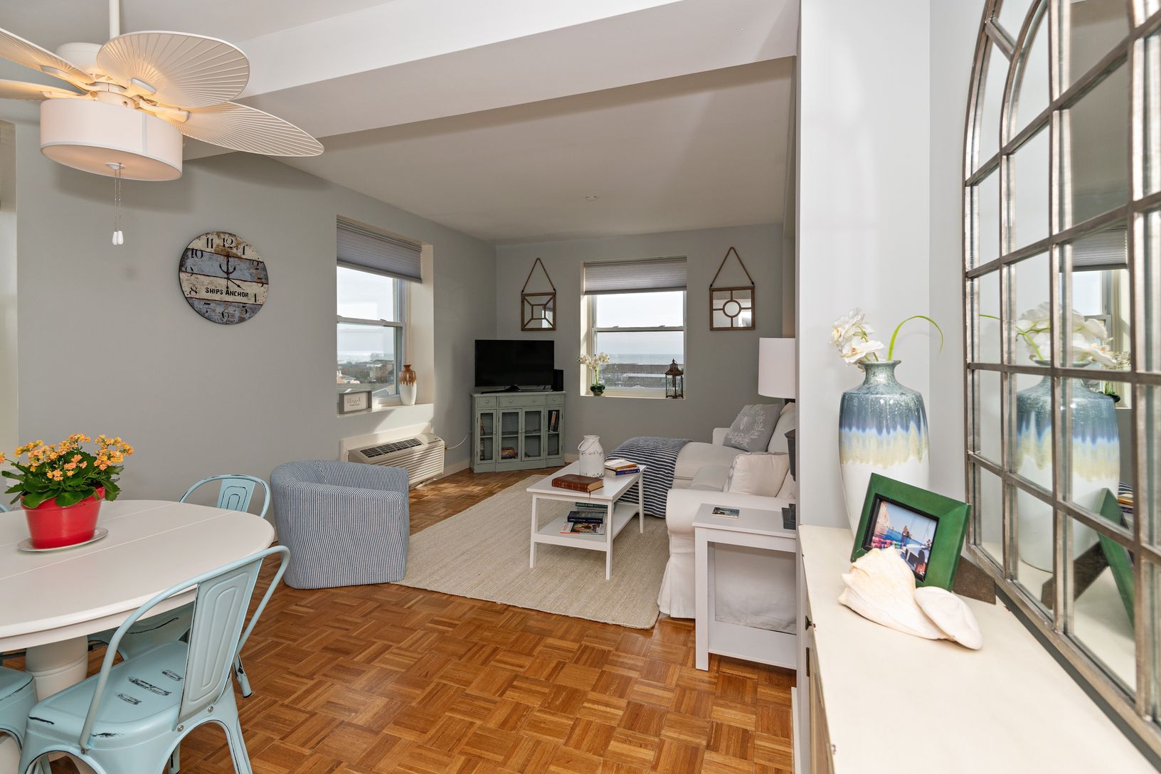Ideally located in the center of Montauk hamlet with breathtaking views of the ocean is this wonderful hideaway featuring a 1-bedroom/1-bath condo with saltwater pool, parking and private storage area. Ocean, restaurants and shops surround you in this elevator building with laundry.