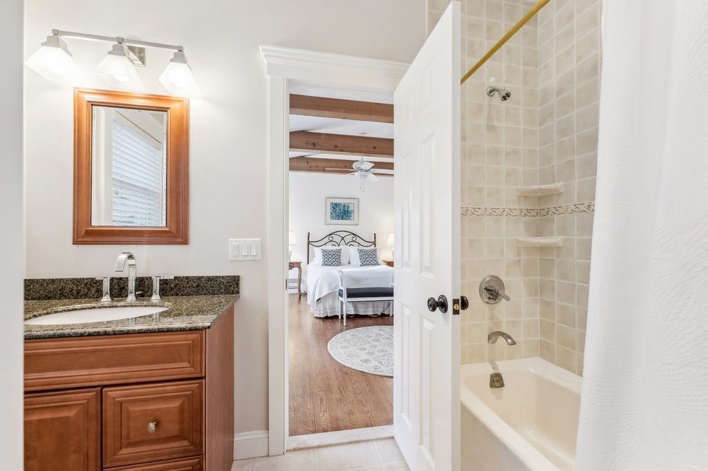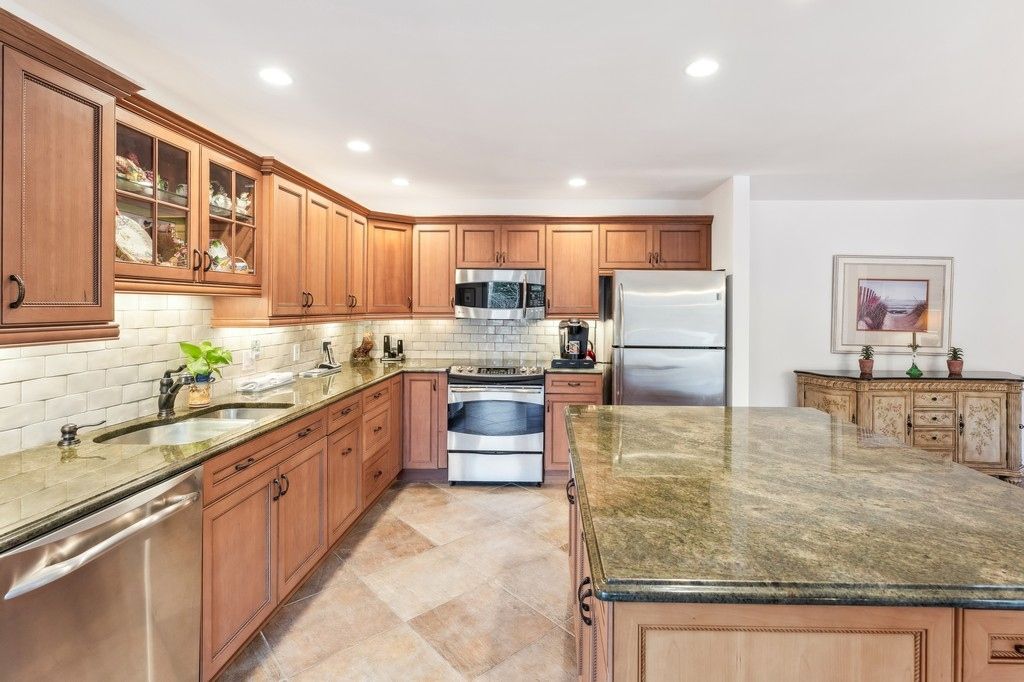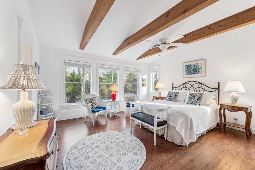 Wainscott retreat in the heart of Wainscott South bathed in natural light and boasting an open floor plan. Enjoy an open concept kitchen adorned with granite countertops and brand-new appliances. An adjacent dining area, great room with double height ceiling centered around cozy fireplace and ensuite junior primary complete the first floor