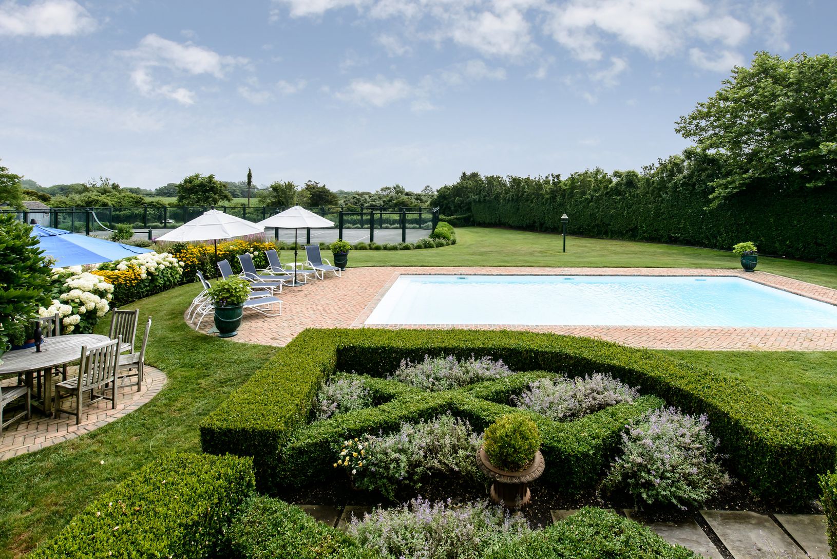 Feel the salinity, and hear the waves of the robust ocean from this traditional Hampton shingle-style home. Located south of Daniel's Lane, this classic coastal combination of curved gambrel roof and natural cedar shaker lend itself to the quintessential South Fork aesthetic. A neo-classical spacious back porch overlooks manicured gardens, in-ground pool and tennis court. Recreation abounds. A modest bike ride or scenic walk lends itself to th