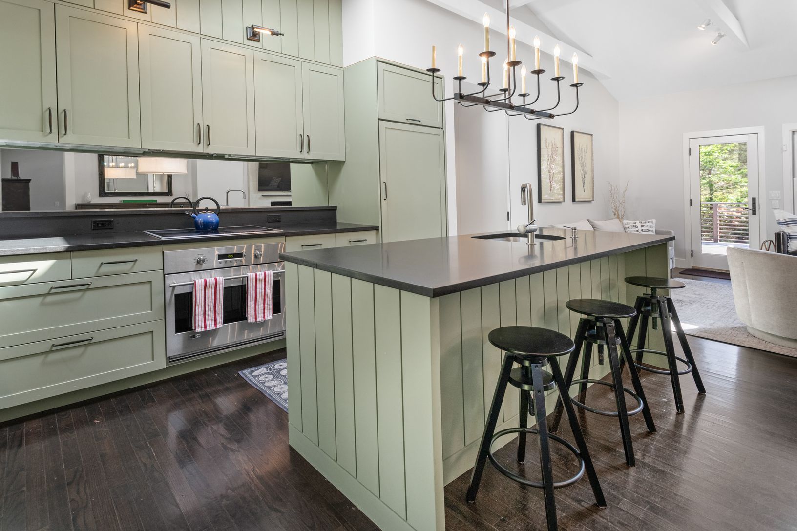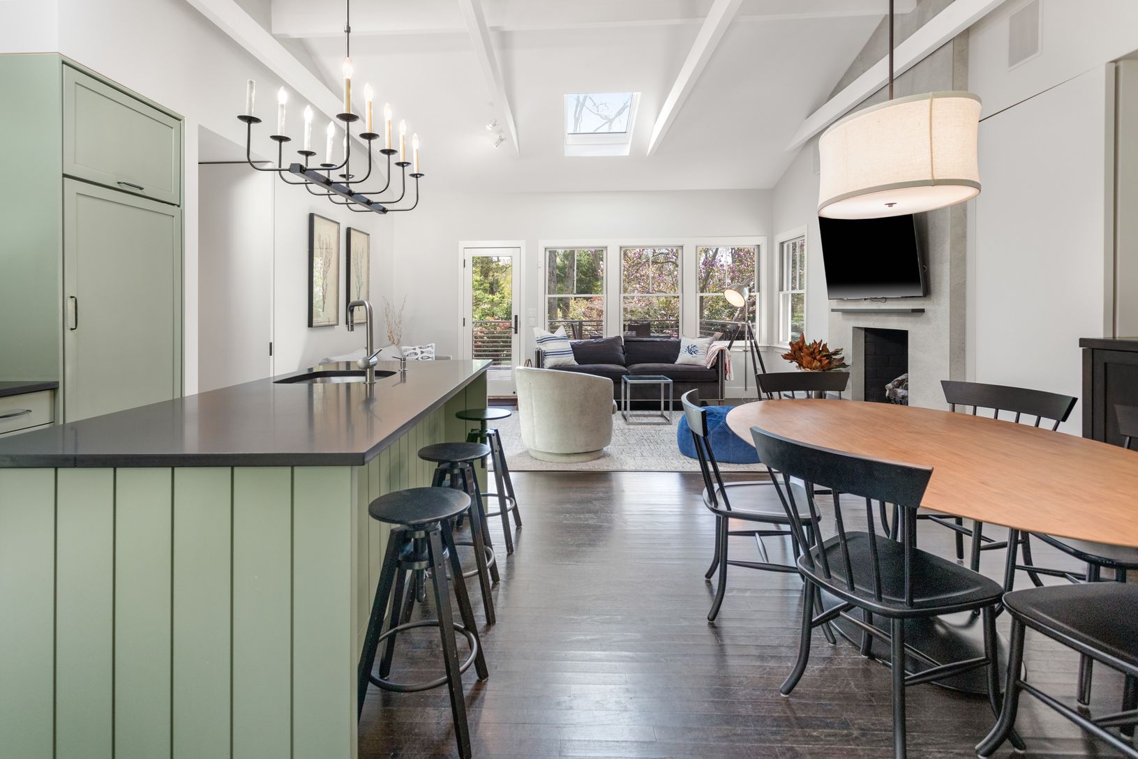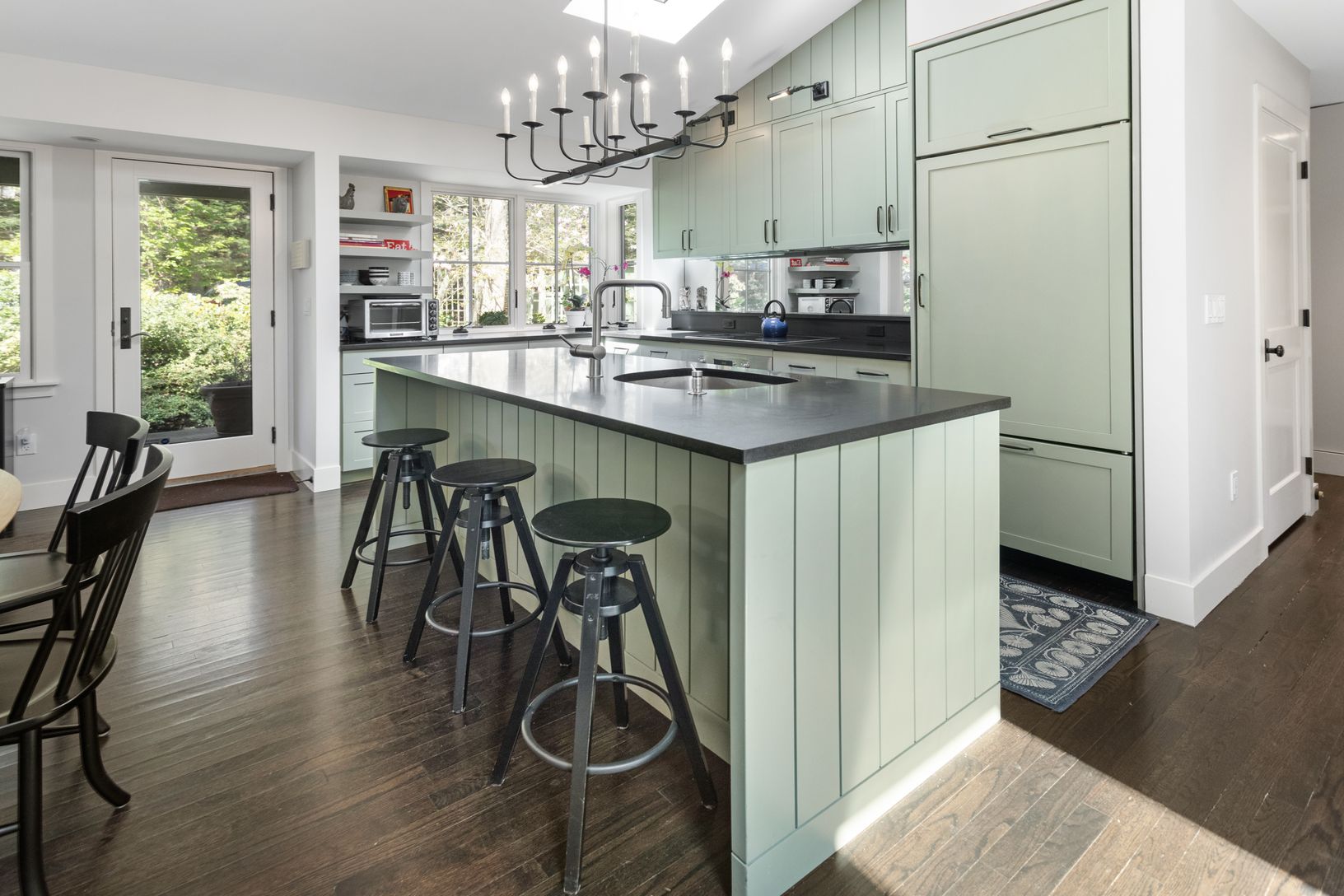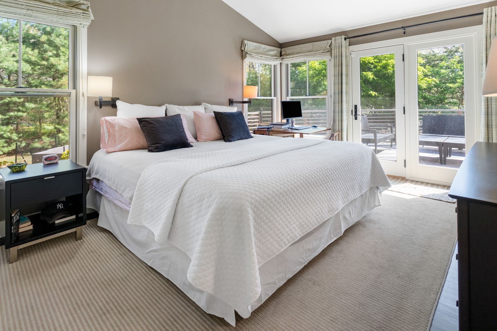 Renovated ranch with an open layout and high end appliances: SubZero, Miele, 1100 sqr ft with 900 sqr ft deck on .75 acres, new gunite pool & deck, outdoor shower, central AC, fireplace, basement, perennial garden, less
