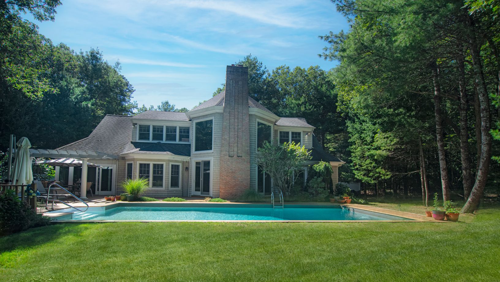 Rental Registration #: 24-126 Spacious Northwest home at the end of a quiet cul de sac and surrounded by over 50 acres of wooded reserve - your own oasis! Enjoy this quality East Hampton home and beautiful property that offers a fabulous great room with double height ceilings and fireplace, a well appointed eat in chefs kitchen, a separate den/office with a large flat panel TV for quiet moments, a glass enclosed porch off the kitchen, two full