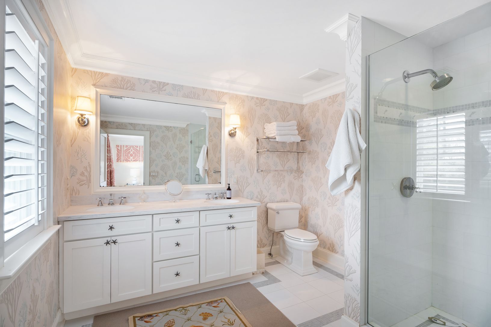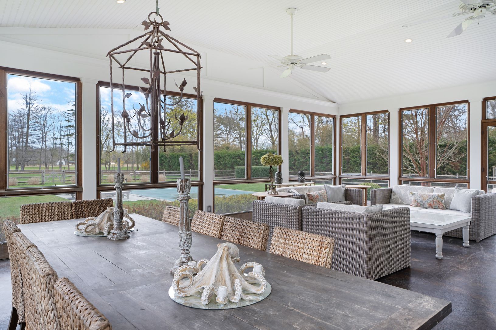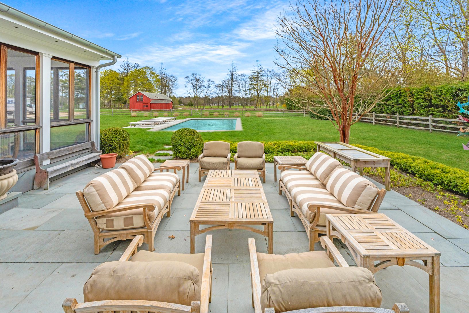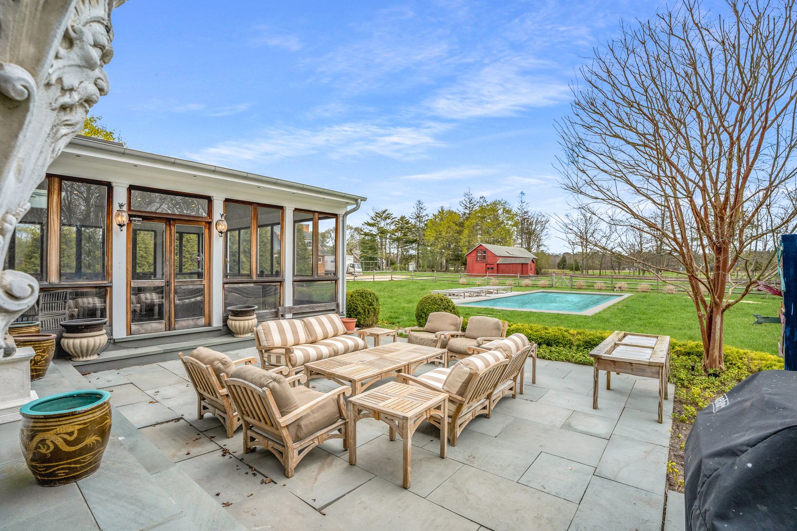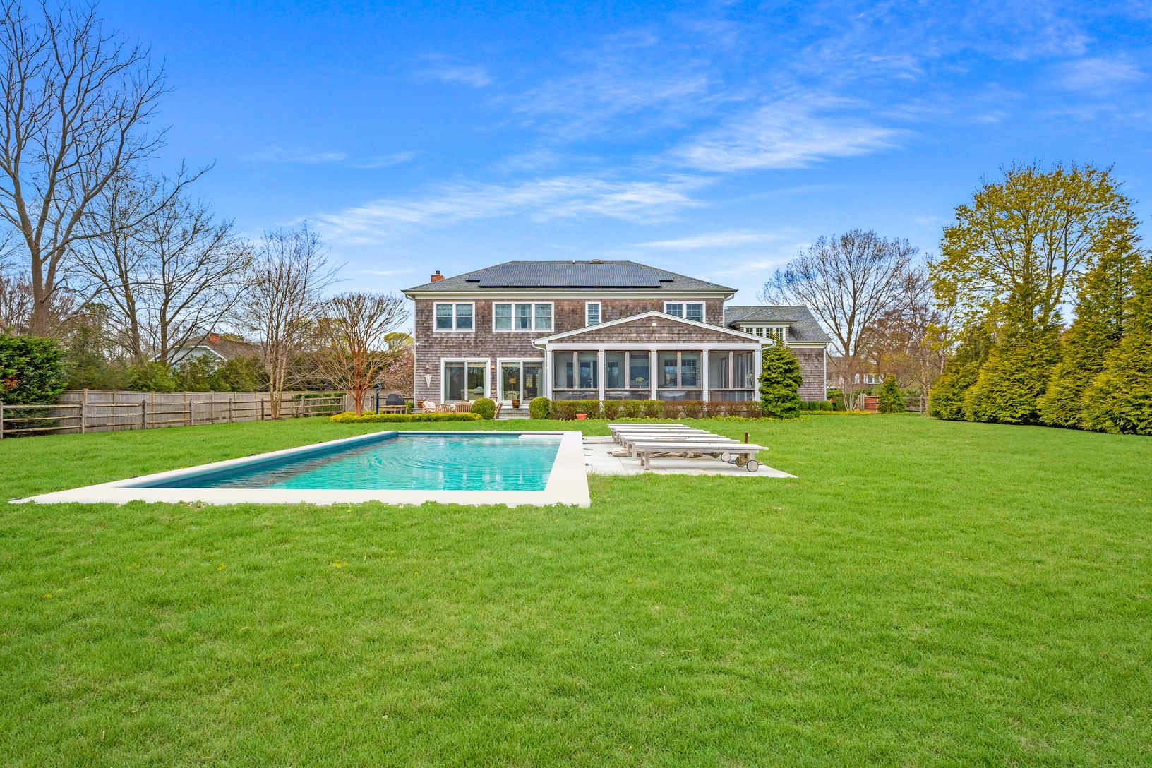 A Gorgeous, classic five bedroom home in Westhampton with privacy overlooking the WCC golf course. There is a primary bedroom on the first floor with an open kitchen and dining area; a screened in porch and an outdoor patio by the heated pool. There are five huge bedrooms with three en suite, a place for everyone. And two laundry rooms and central air.