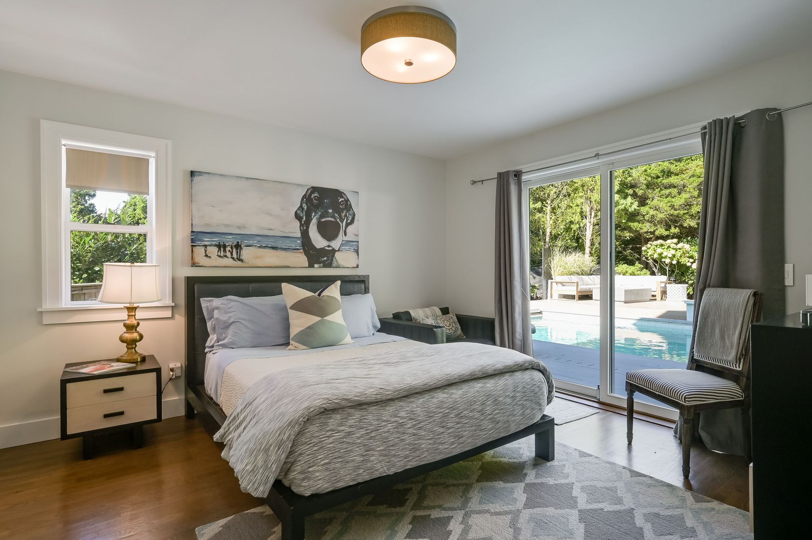 AVAILABLE AUGUST 1-LD OR AUGUST 1-AUGUST 29...This perfectly renovated and beautifully furnished Modern Barn has 3 bedrooms with 3 full baths. The home features a large open floor plan with a hand painted concrete tiled fireplace overlooking the dining room and high ceilings. Your kitchen is beautifully appointed with top of the line chef's kitchen appliances and amenities....Wolf 6 burner, farm sink, marble center island, soft close custom ca