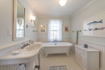 This postcard pretty, circa 1900 two-story East Hampton Village home on a favorite lane between Main Street and the ocean offers the sentimental charm of the past and important modern features. There are six bedrooms, four full baths, a powder room, formal and informal living rooms, a center-of-it-all kitchen, three fireplaces, a full height basement, central air conditioning, detached garage and a gunite pool. The almost .75+/- acre lot is hi