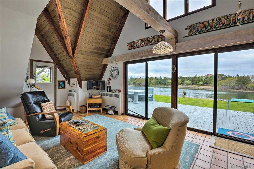 Spend your summer days relaxing in this adorable A-Frame summer home. Enjoy water views from the cozy living room or on the large back deck as you relax in the sun. This beautifully landscaped yard overlooks Honey Pot Pond AND Shinnecock Bay.