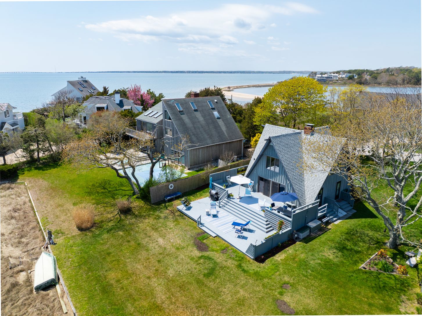 Enjoy a peaceful and tranquil summer on the water. This delightful beach house with access and views to Sinnecock Bay, is south of the highway in Southampton and features 3 bedrooms, 2 baths, an open living area, kitchen and dining area, and inviting outdoor spaces. Lounge on your back deck and appreciate the beauty that surrounds you!