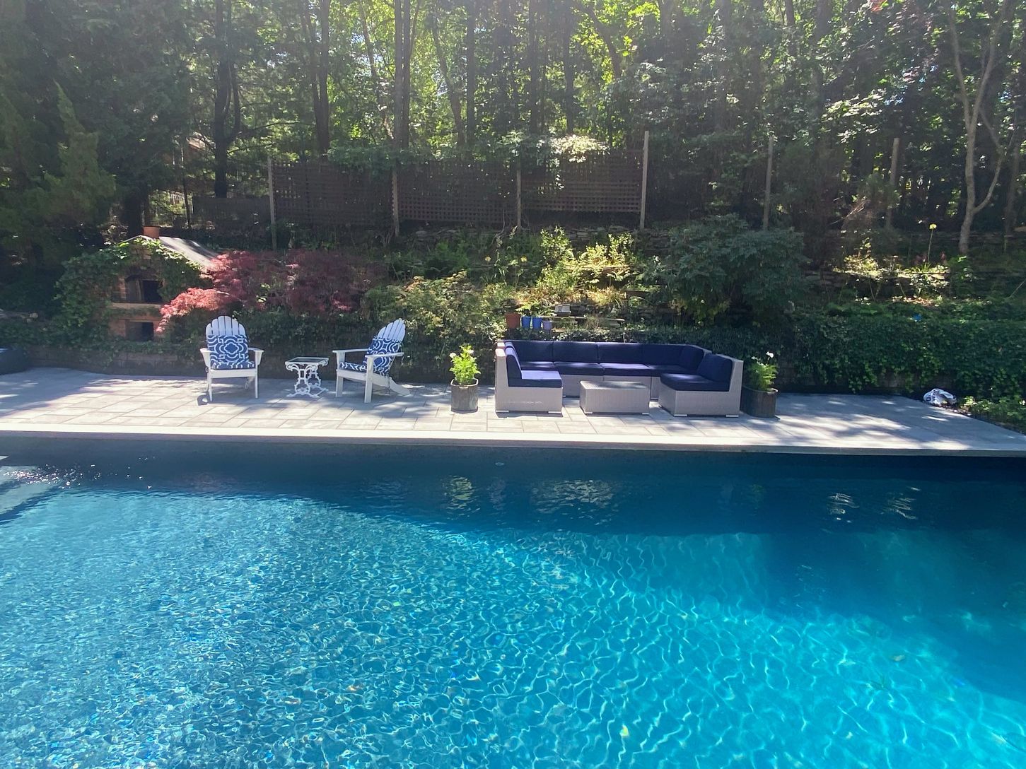 With 4 bedrooms and 3 baths(first floor master) open living room, eat in kitchen, covered porch, formal dining room, heated pool, outside cooking area with BBQ and pizza oven, and outside shower. Very private and acess to beach close by.