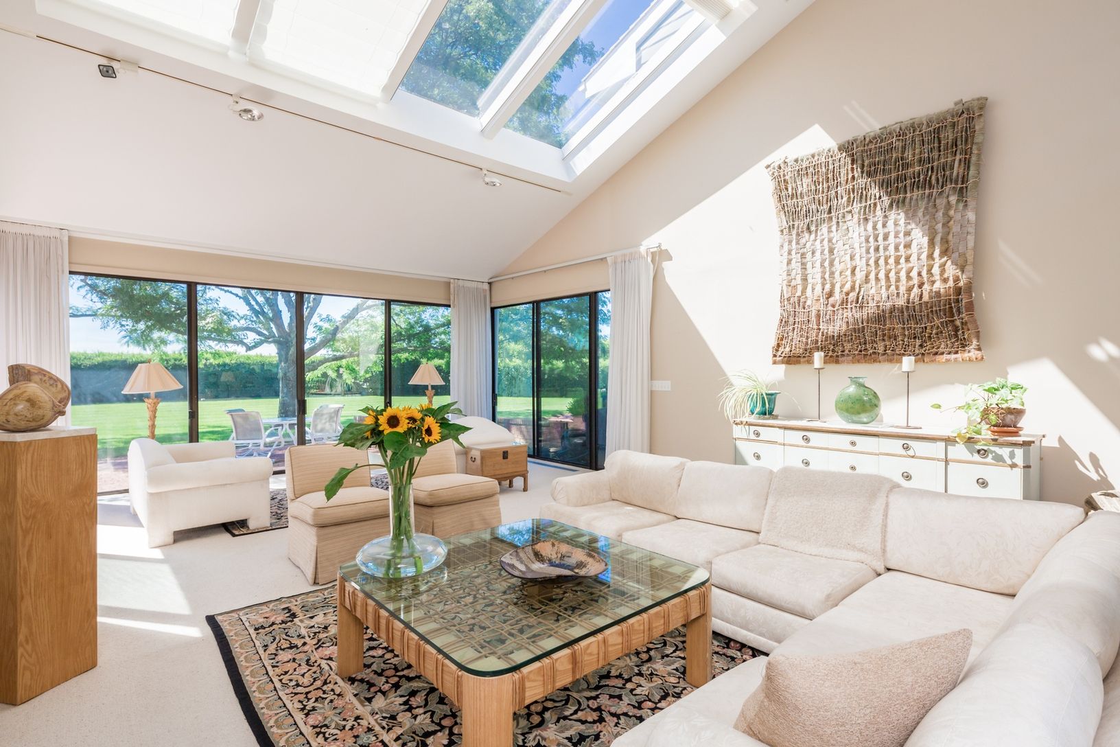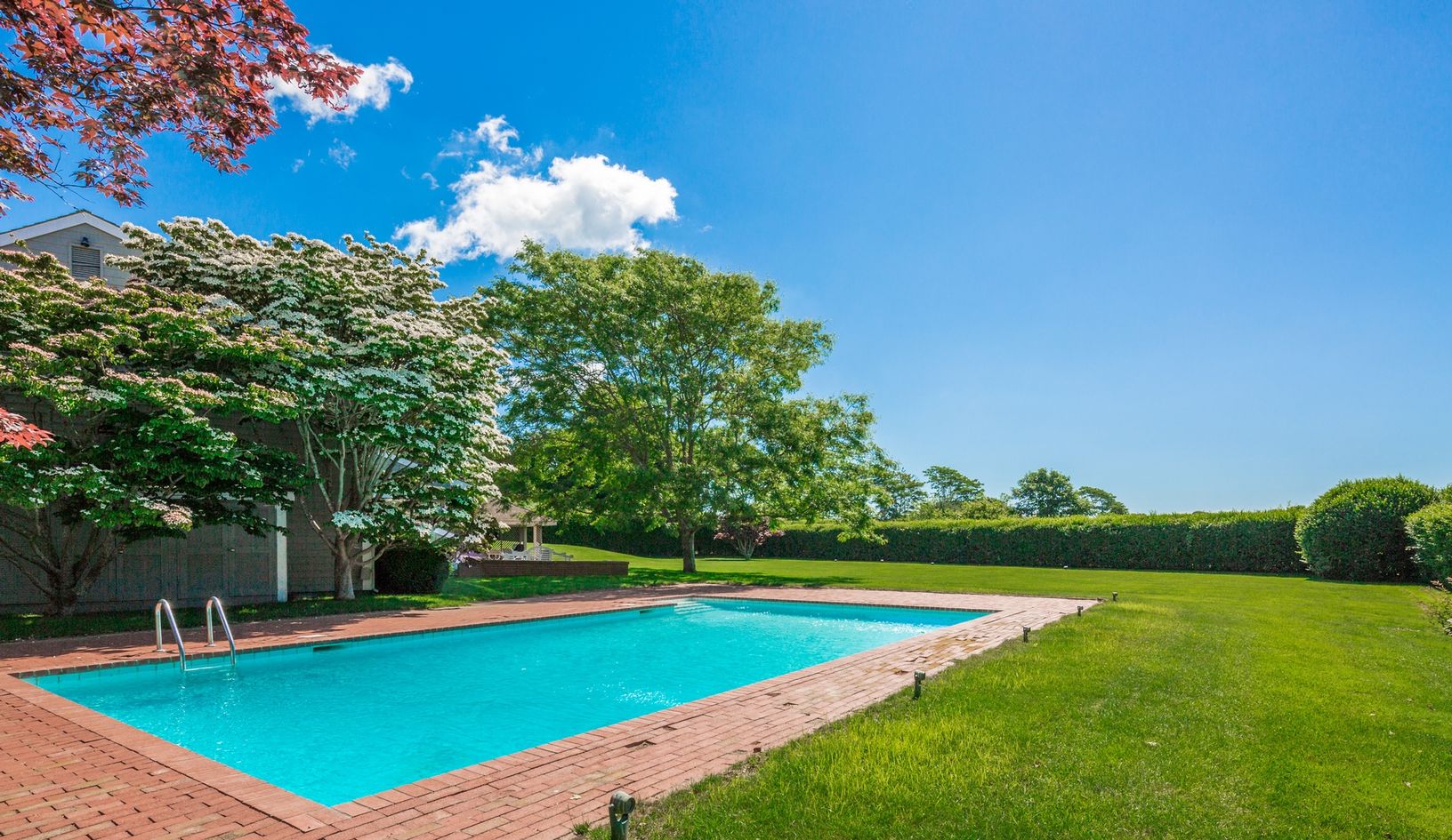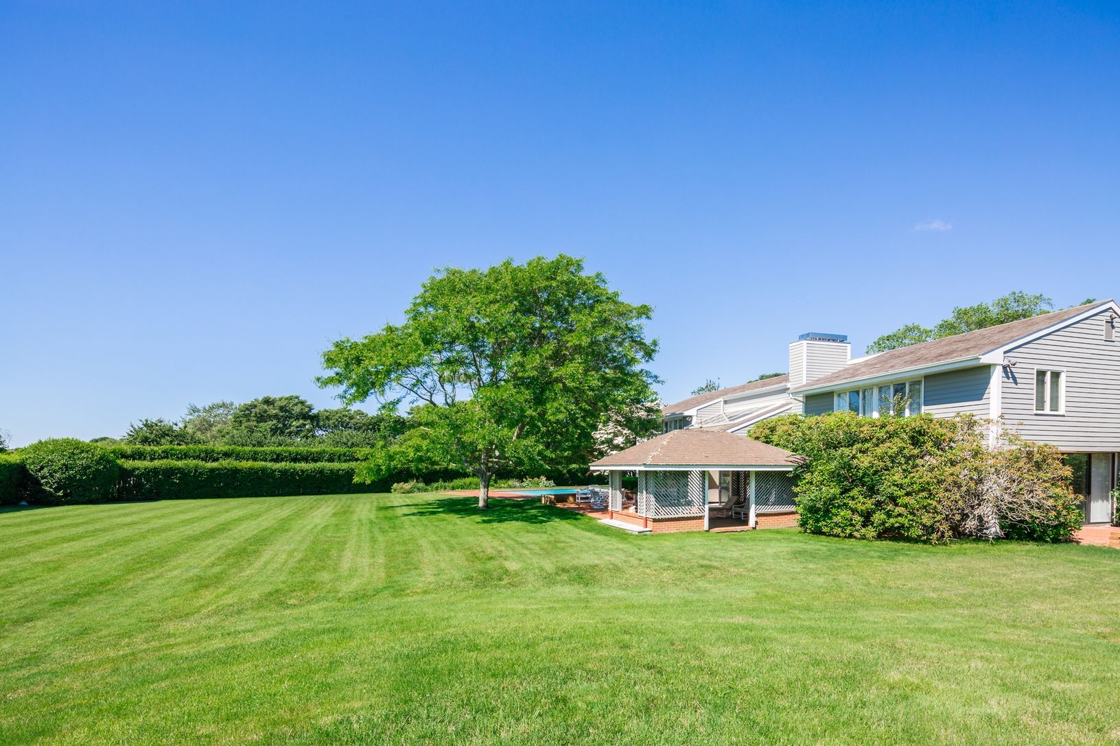Outstanding redevelopment opportunity in prime estate location with distant oceanview and short stroll to Georgica beach. Gated 1.07 acre with light-filled contemporary featuring double-height skylit living room with fireplace, kitchen with breakfast area and gas grill, separate dining room, 5 bedrooms, 4 baths. Beautiful hedged grounds with rolling lawn, specimen trees and 40 ft heated pool. Zoning allows a 5461 sq ft residence plus finished