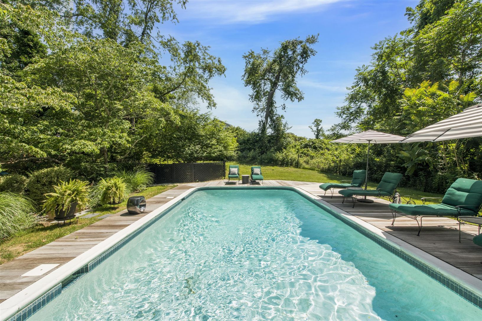 Located on a private 1/2 acre is this lovely Mansard style cottage. Completely renovated & move in Condition. 3 bedrooms, 2 1/2 baths, open concept living room with fireplace , large renovated kitchen with high end appliances, Sub Zero refrigerator, Viking stove & spacious dining area. 1879 sq. ft., In-ground heated gunite pool, full basement & garage. Close to Fresh Pond and Wades Beach.