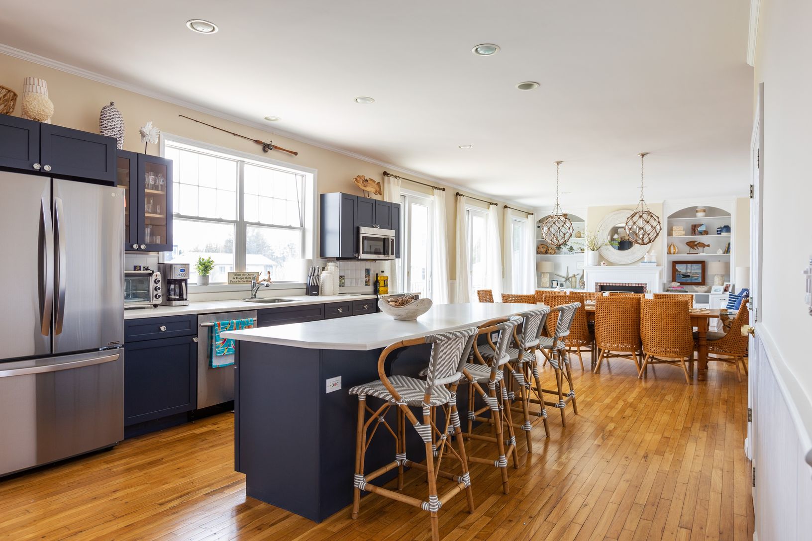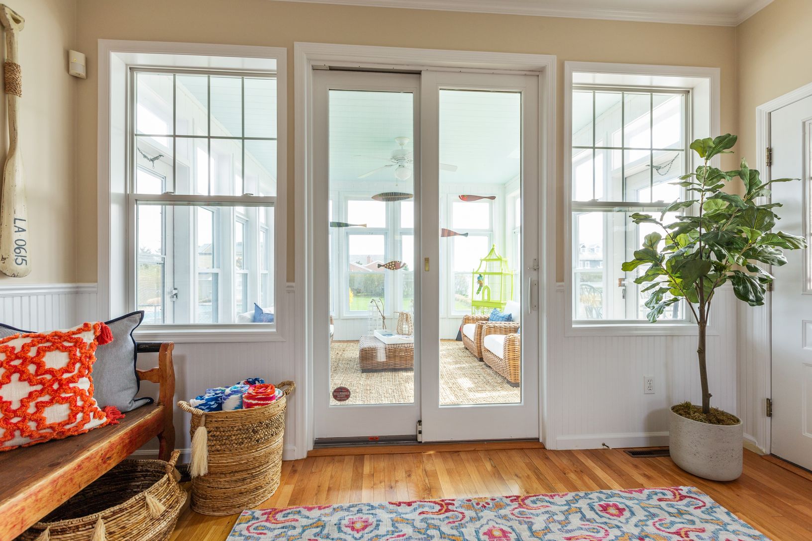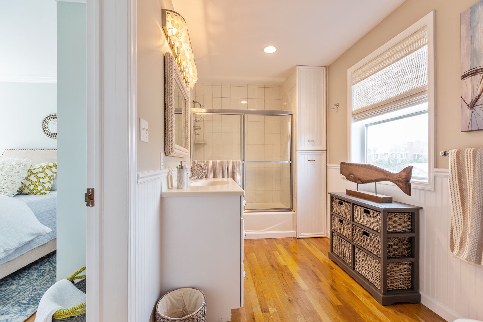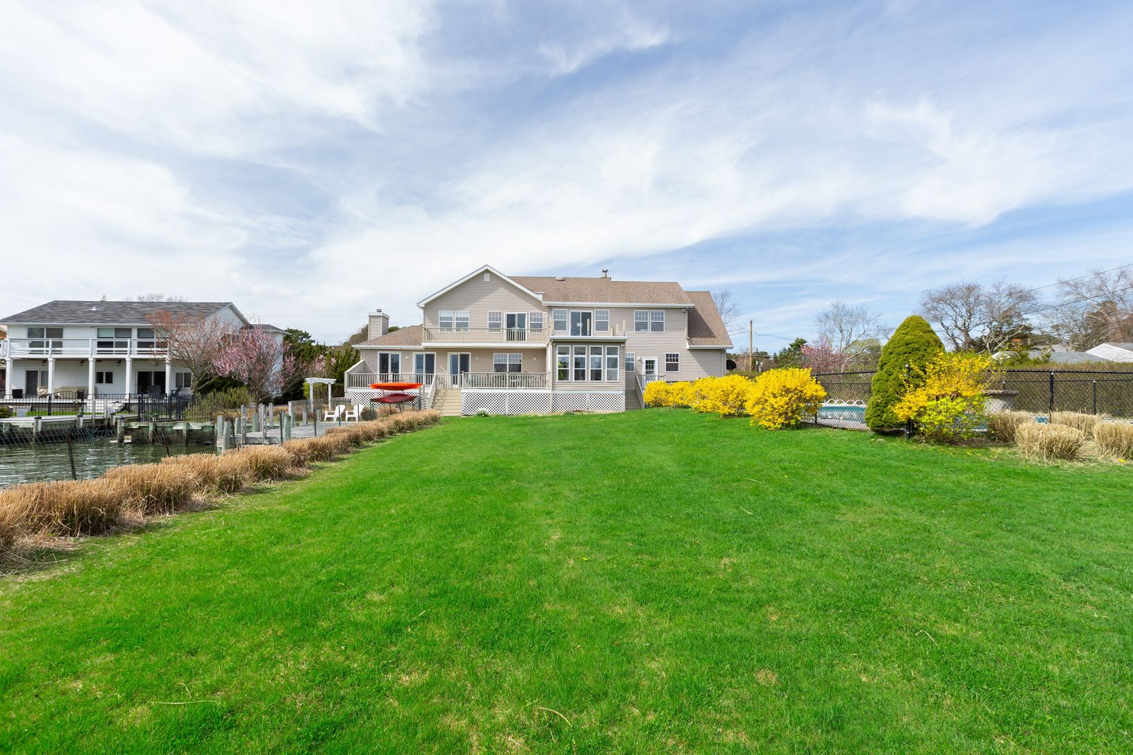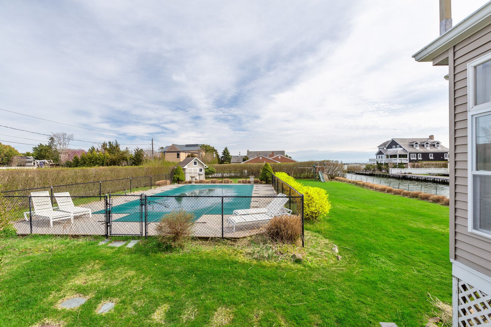 Located South of the Highway in Southampton, enjoy this gorgeous post-modern home overlooking Far Pond and Shinnecock Bay. Enter the sprawling first floor complete with newly styled kitchen and open den with fireplace, and bonus room, all perfect for entertaining. Enjoy choice of 2 private guest rooms with 1 full and 1 half bath. Relax in the sun room just adjacent to the new mahogany deck and fenced in water side pool area.
