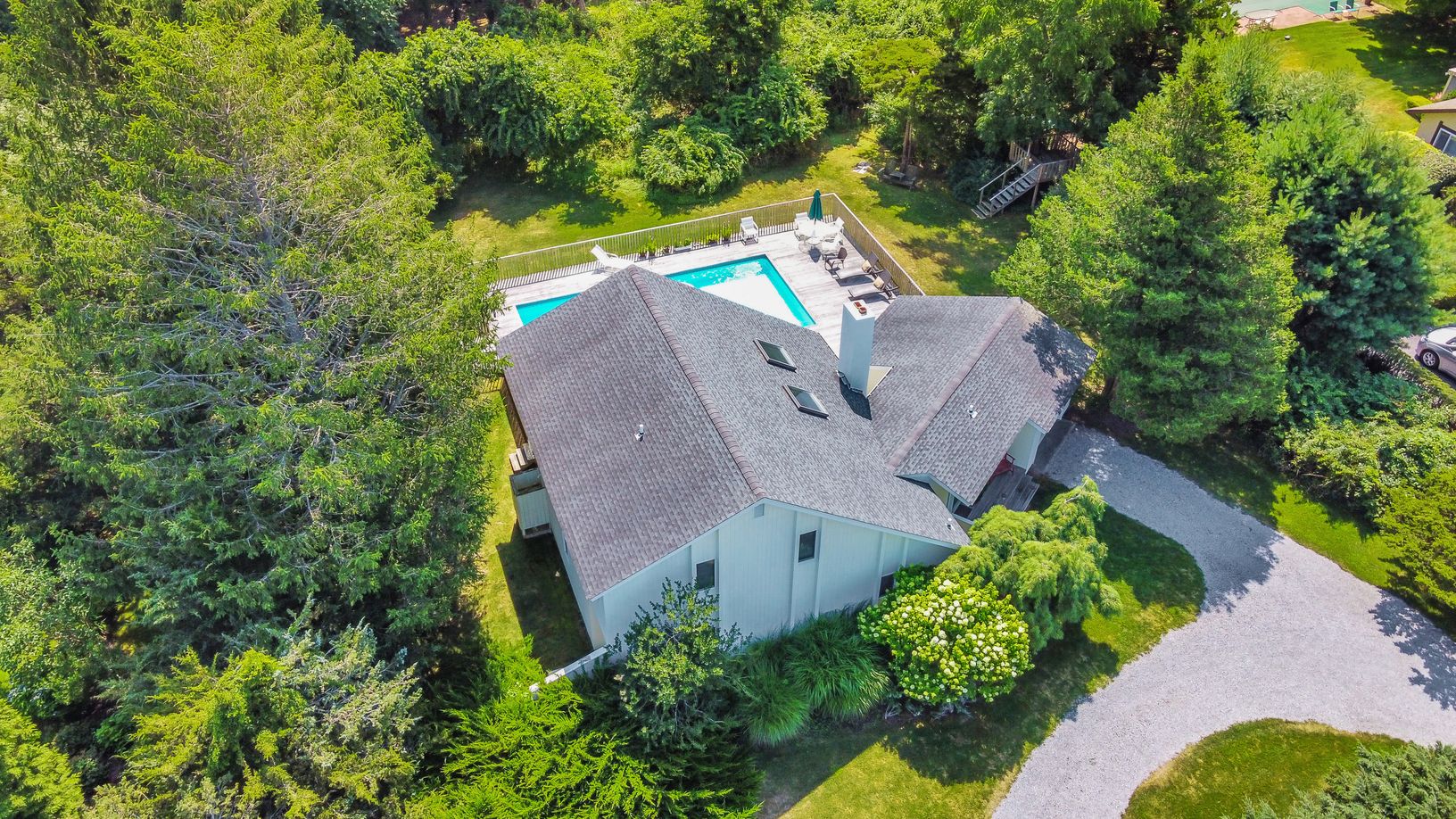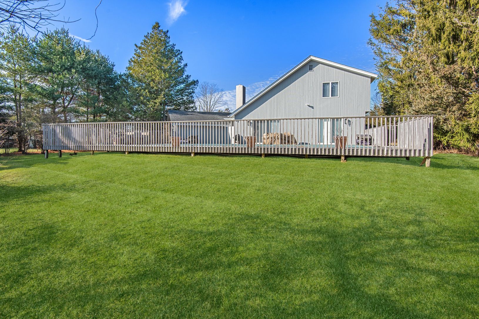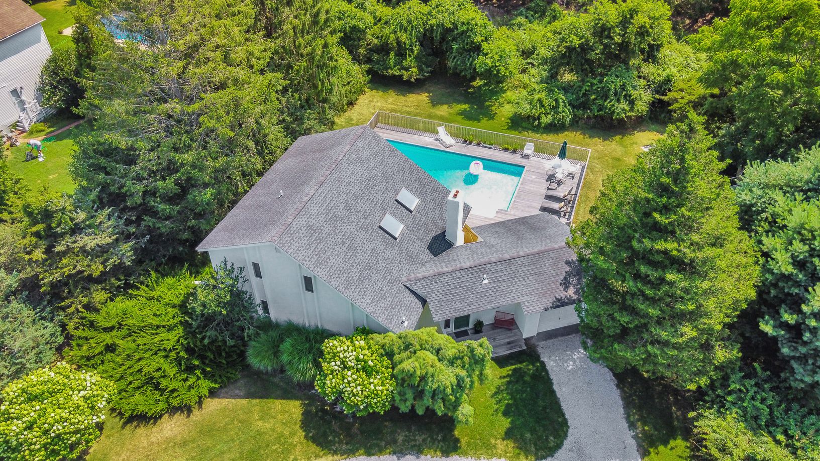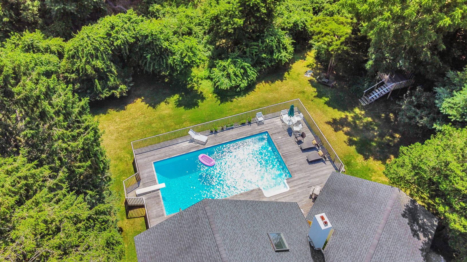 The home you've been waiting for is here! Custom two story Contemporary completely updated with brand new Chef's kitchen and top grade appliances. Vaulted ceiling in bright, open living room with freshly refaced wood burning fireplace. First floor primary with sliders to large Mahogany deck and pool boasting a very private backyard for entertaining or just plain relaxation! There are three additional bedrooms, basement, garage and beach right