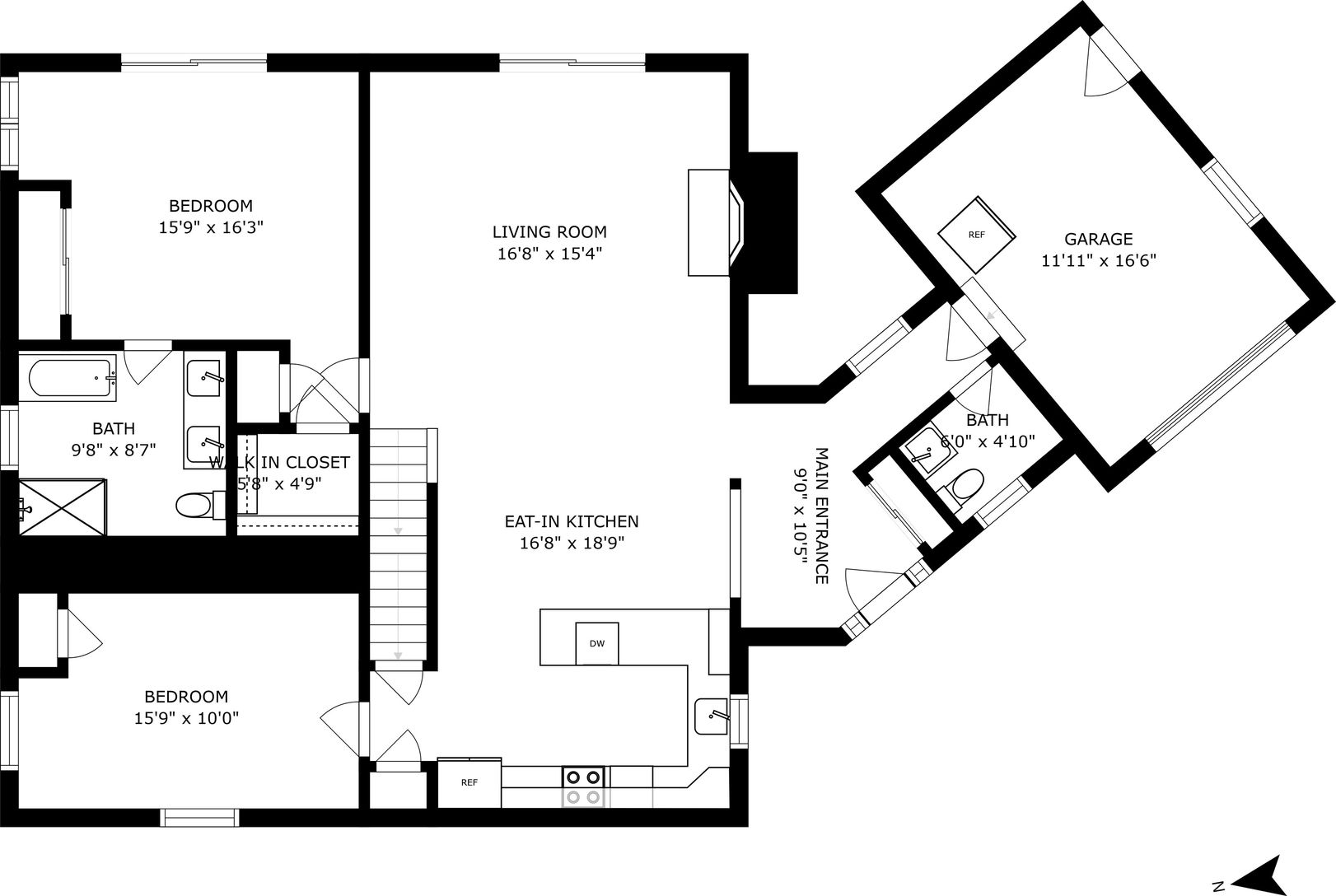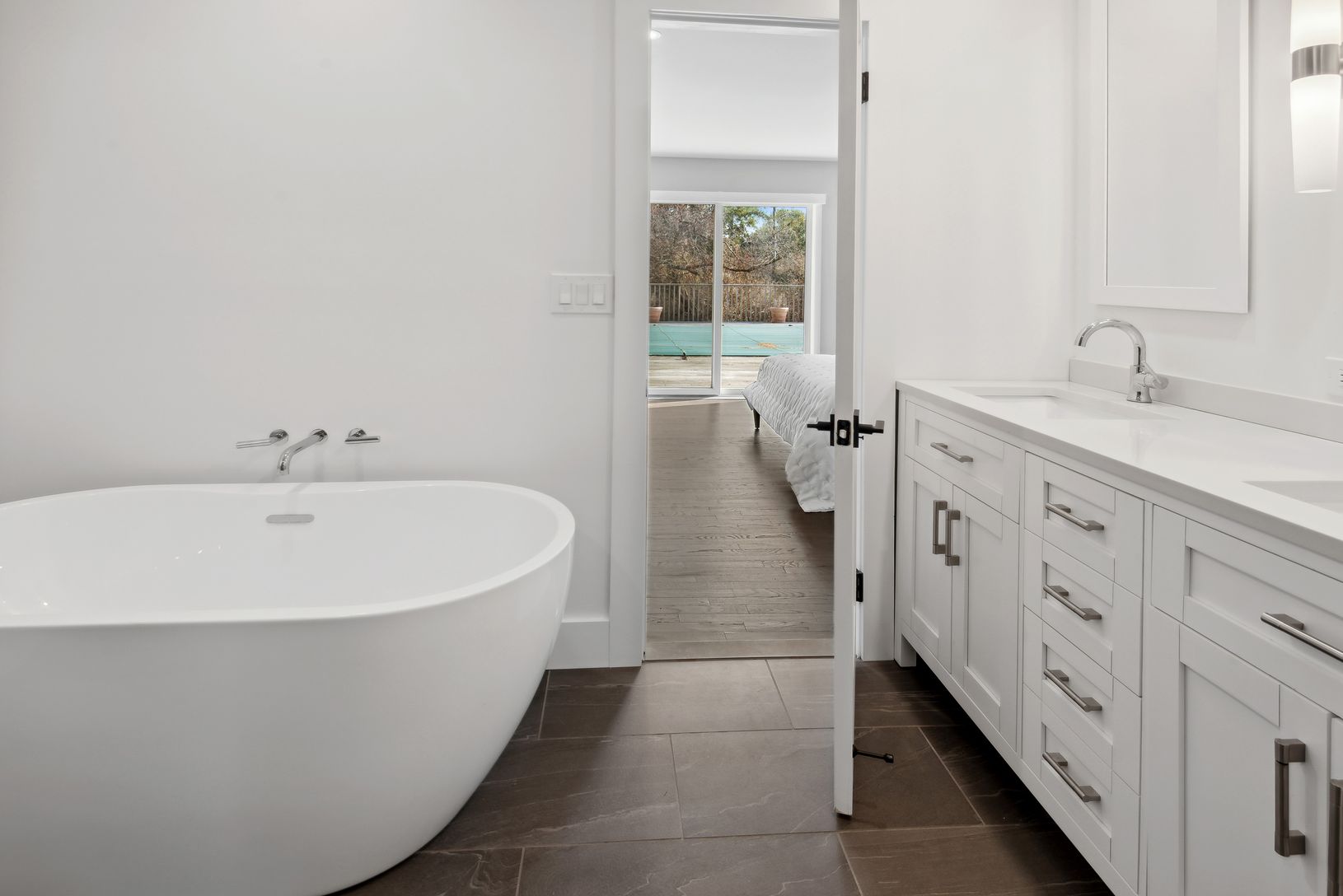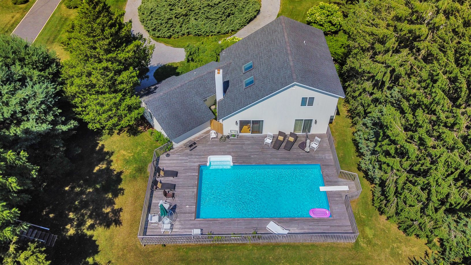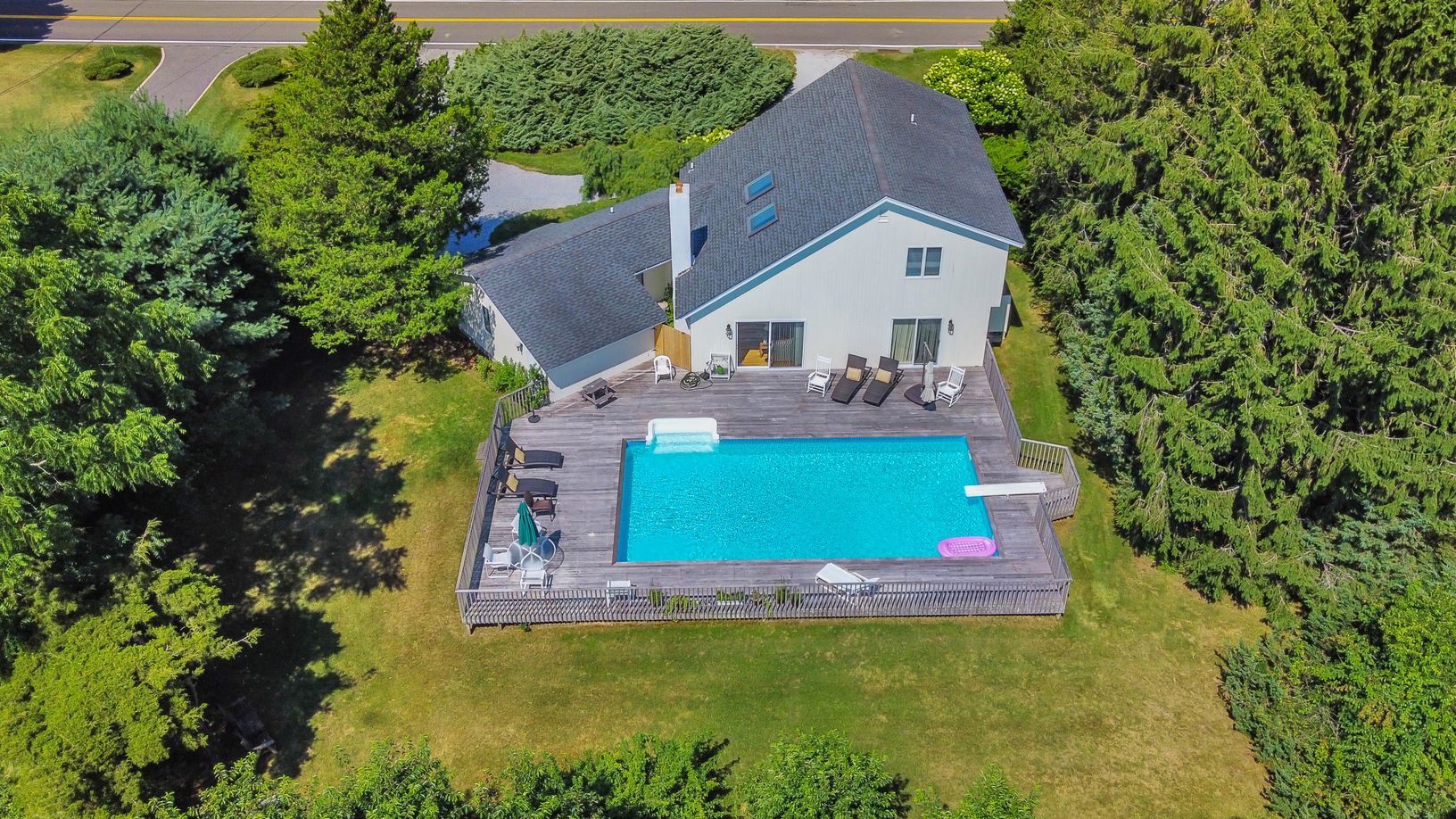 The home you've been waiting for is here! Custom two story Contemporary completely updated with brand new Chef's kitchen and top grade appliances. Vaulted ceiling in bright, open living room with freshly refaced wood burning fireplace. First floor primary with sliders to large Mahogany deck and pool boasting a very private backyard for entertaining or just plain relaxation! There are three additional bedrooms, basement, garage and beach right