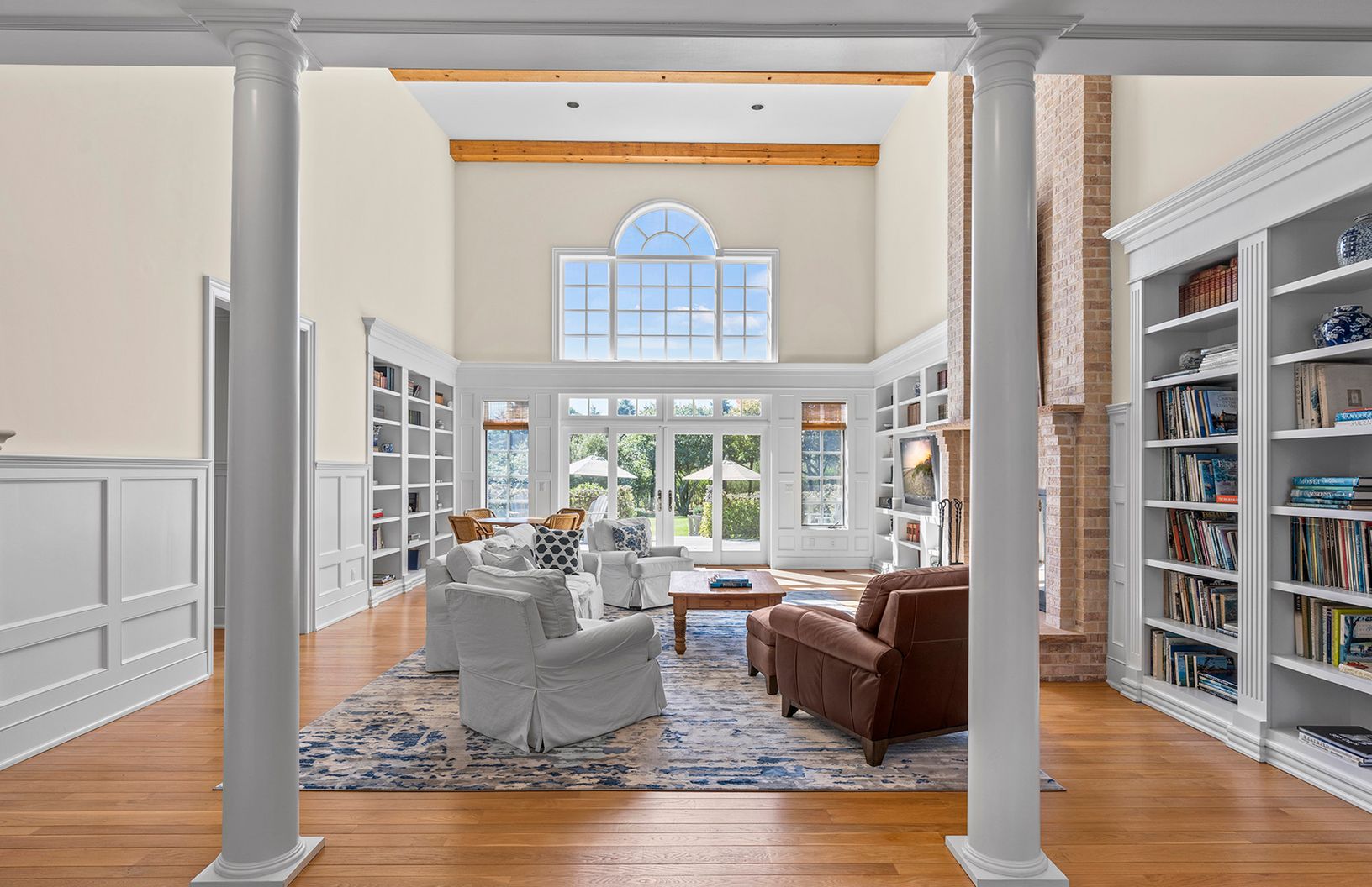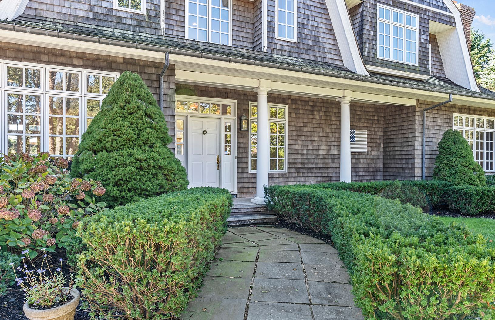 Private estate situated on a serene 1.5 acres located mere moments to the ocean. The completely renovated 6,000 +/- SF residence offers 5 bedrooms 4 full and 2 half baths. A grand light filled living room with double high ceiling and fireplace leads to a formal dining room and kitchen with top of the line appliances. The first floor also includes a master suite and library with fireplace. On the Second Floor are four additional bedrooms in