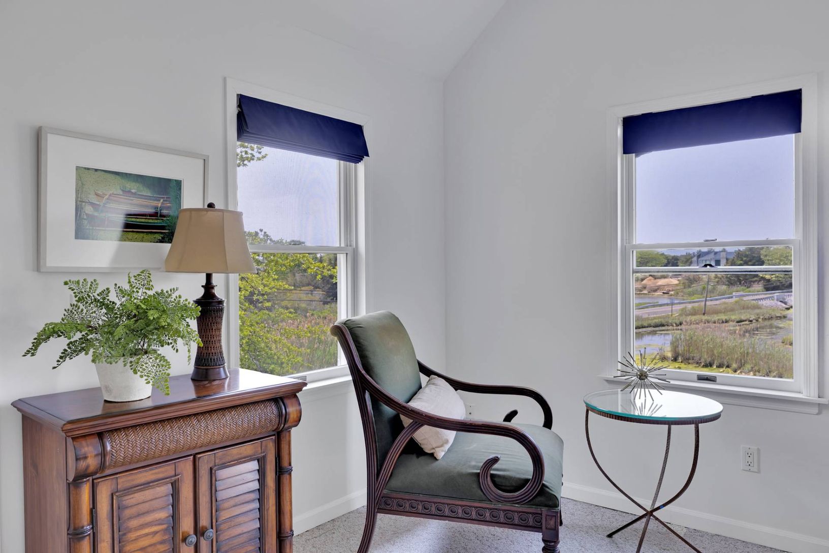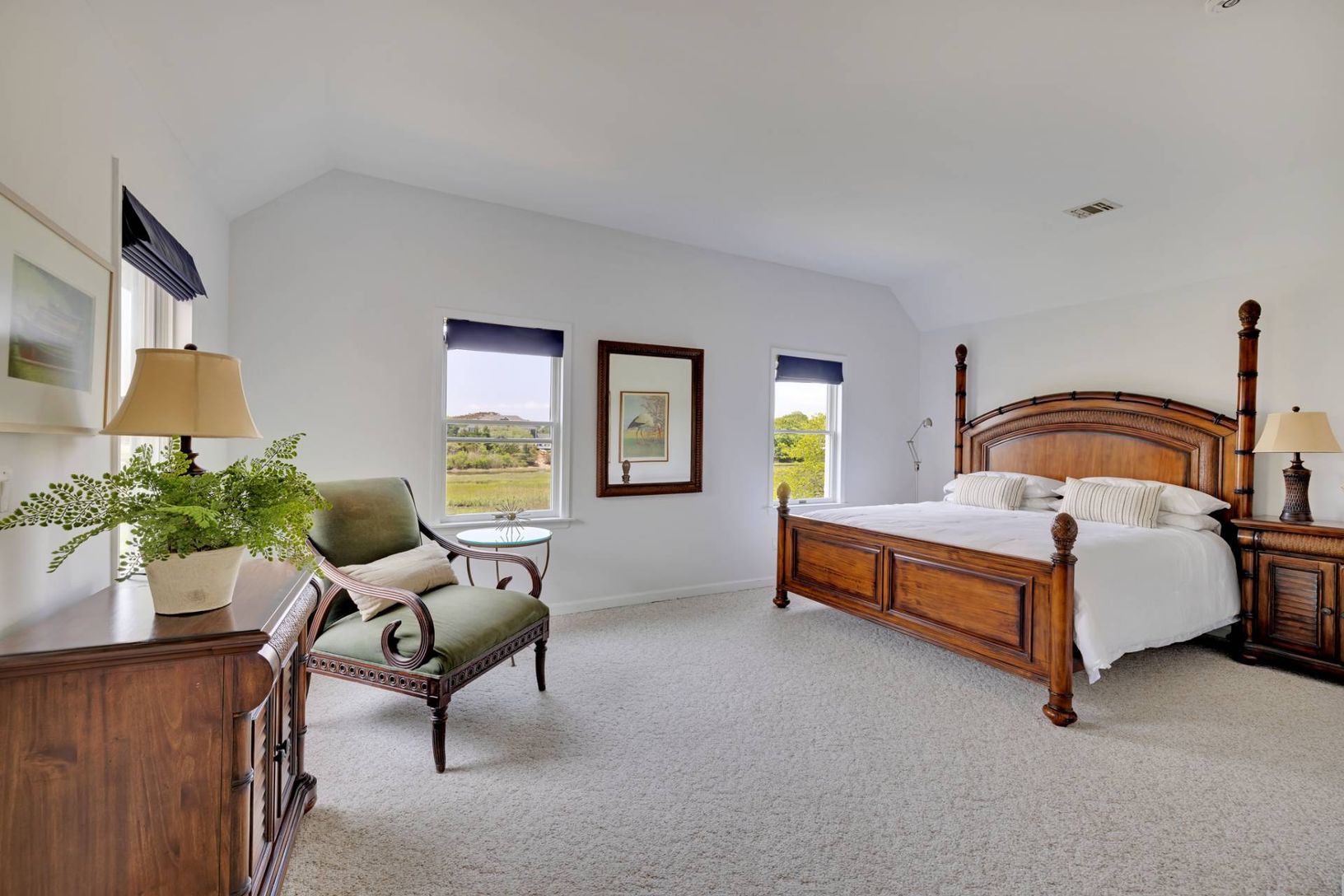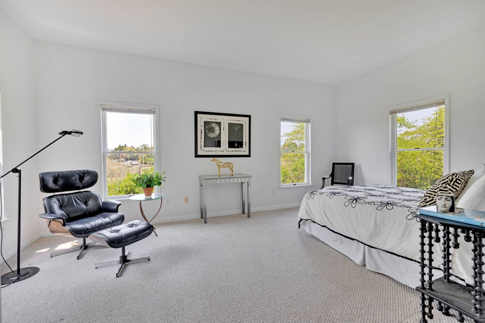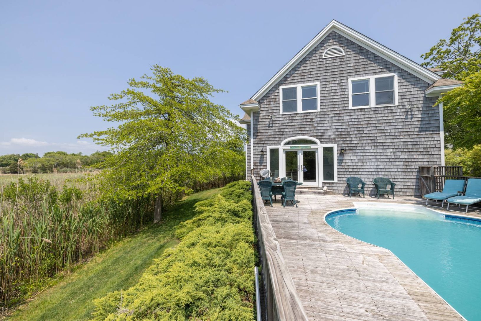 Spectacular west-facing retreat with glorious estuary views and bird watching for days! 56 South Country Road is an expansive and sun-filled beach house with multiple living and gathering spaces both indoors and out to enjoy nature and the best the Hamptons has to offer. The generously designed 2700 sf home features three large and sunny bedrooms and three additional bonus rooms to use as dens, guest spaces or for working from home. There are