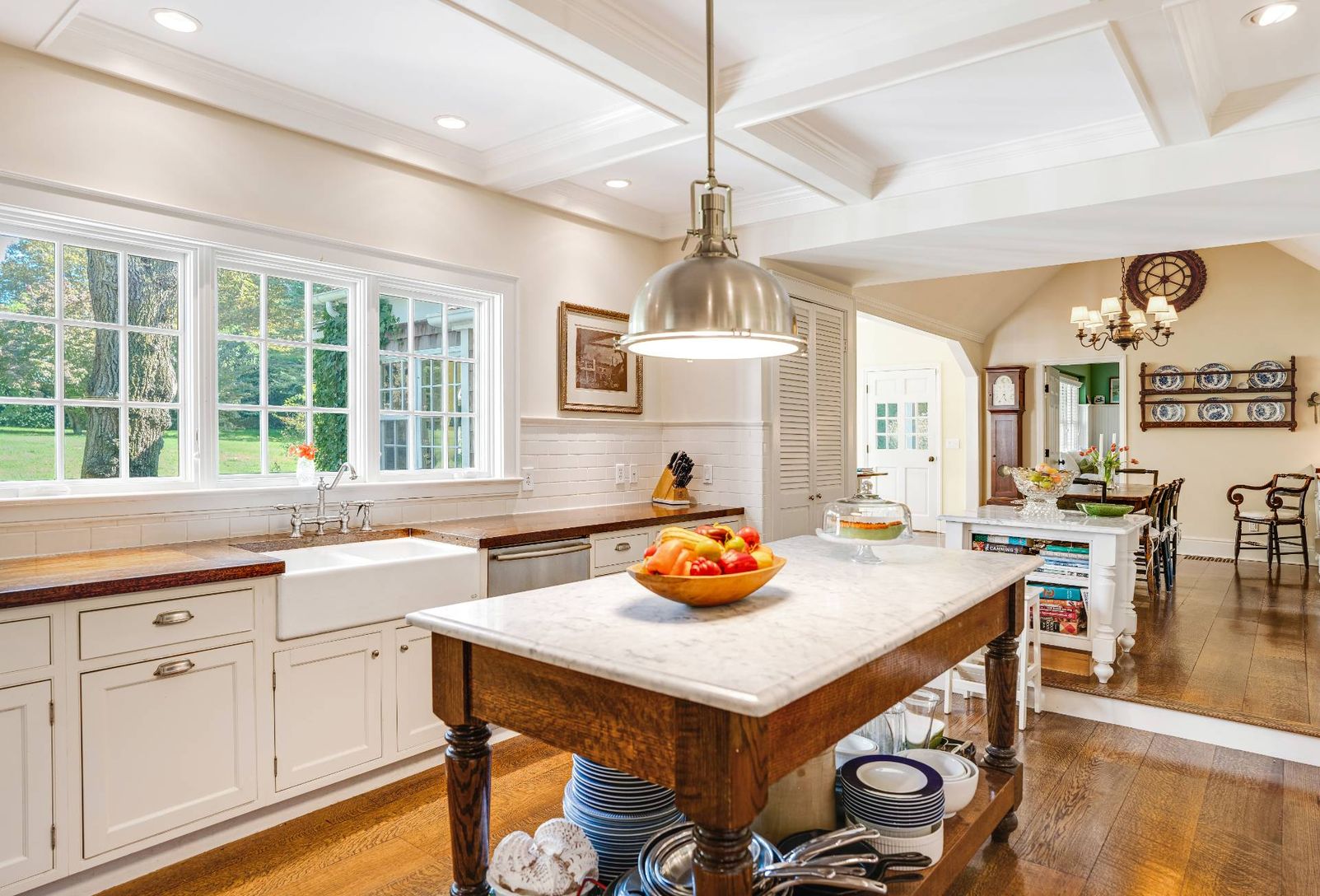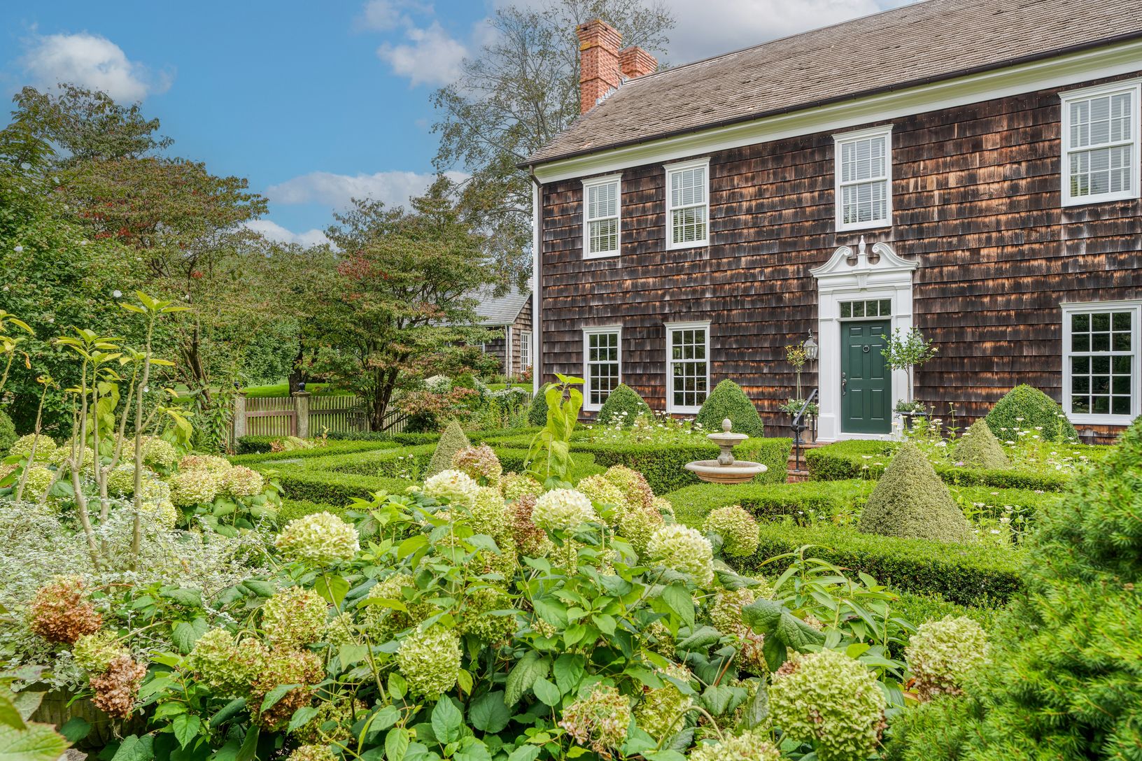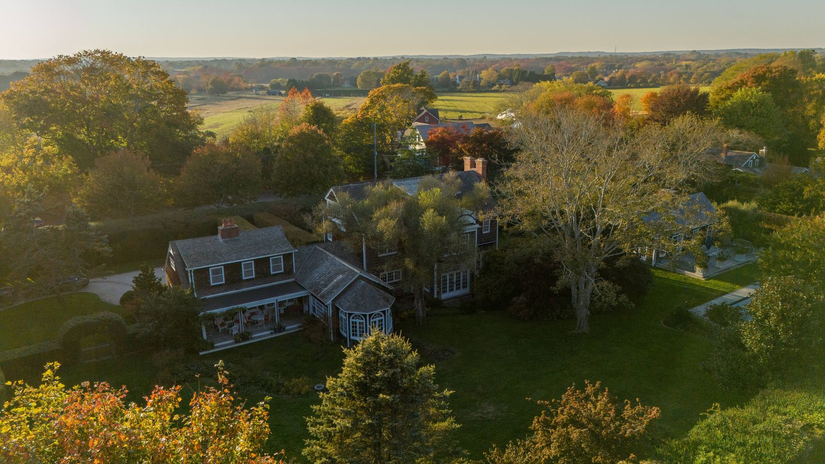 This 7,000 sq. ft. home in the Sagaponack Historic District sits on 1.3 acres of beautifully landscaped grounds. Inside, the main house blends classic charm with modern comfort, featuring a professional-grade kitchen, formal dining and living rooms, a sunlit den, a private library, and 7 bedrooms, including two primary suites with fireplaces. A fully finished lower level includes a media room, wine cellar, fitness room, and guest quarters. The