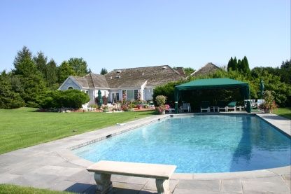One story Bridgehampton home on 1.5 lovely Butter Lane acres. Imagine easy, gracious living inside and the ultimate relaxing outside. Imagine watching those glorious western sunsets from your gardens, stone patio or stunning pool. This home features a living room with fireplace, a dining area, a completely new and elegant kitchen with stainless steel appliances, 3 bedrooms and 3 baths, plus a large den. Every system of this house is exquisite