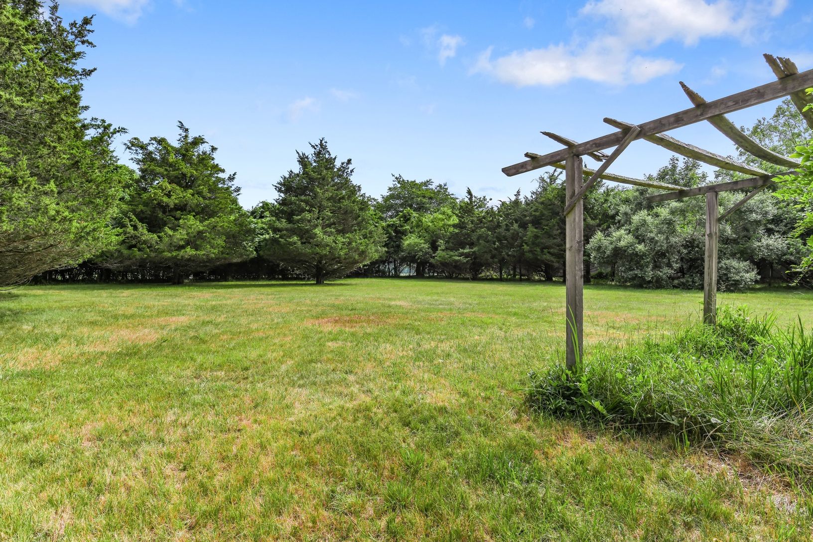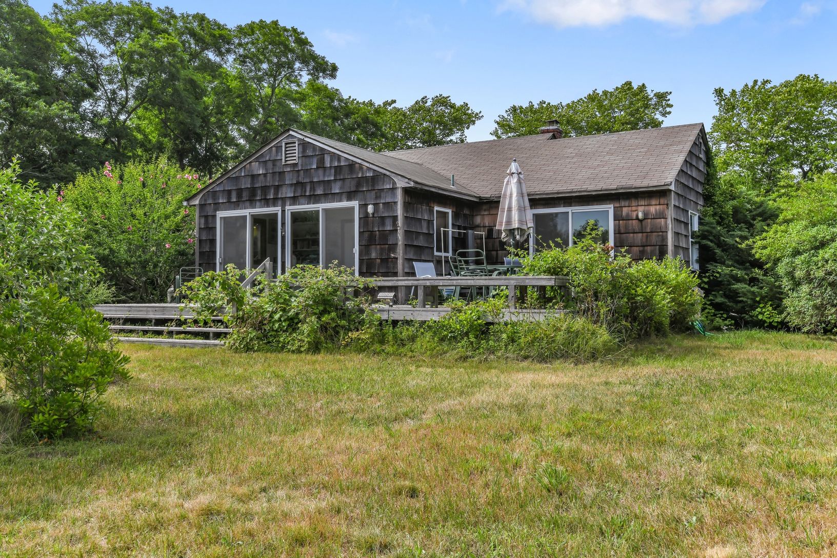 Restore this 1960's cottage or build the home of your dreams on this .82 cleared acre property , located in one of the Hampton's most quaint Beach Towns. This light, one level cottage features a master bedroom with southern exposure, and an eat in kitchen with great morning sunshine; two additional smaller bedrooms. Mature trees around property line for privacy, and views of farm across the street. All South of Highway and close to ocean beach