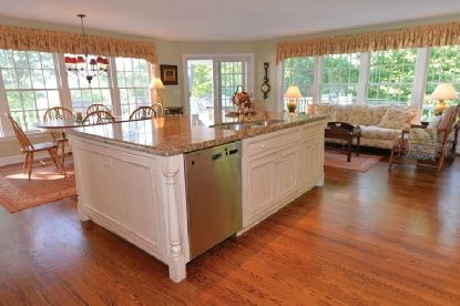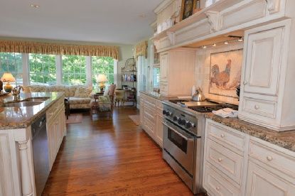 Located on a hill overlooking Dering Harbor, this well-crafted, tasteful traditional offers spectacular sunsets, prevailing summer breezes and turn-key waterfront living. Enter the foyer and to the left is a spacious kitchen-dining-family room, which spans half of the home, with outdoor entertainment deck with water views and rear deck for grilling. The kitchen is equipped with Thermador range, Sub-Zero refrigerator, custom cabinets with abov