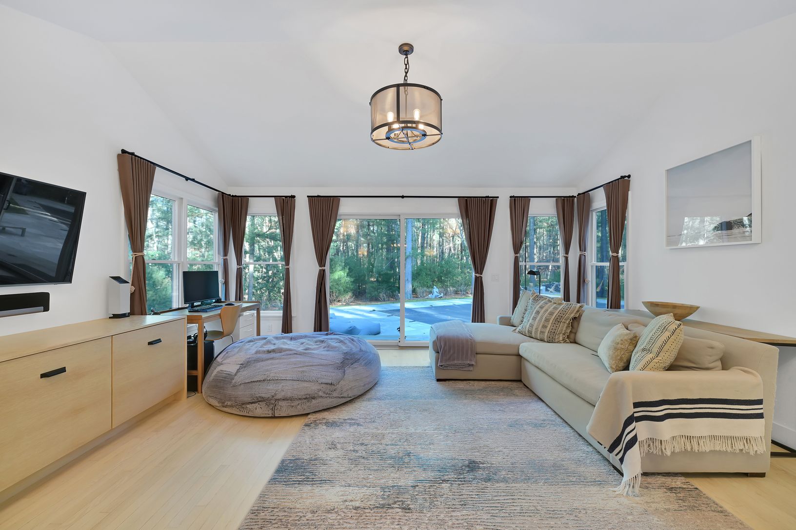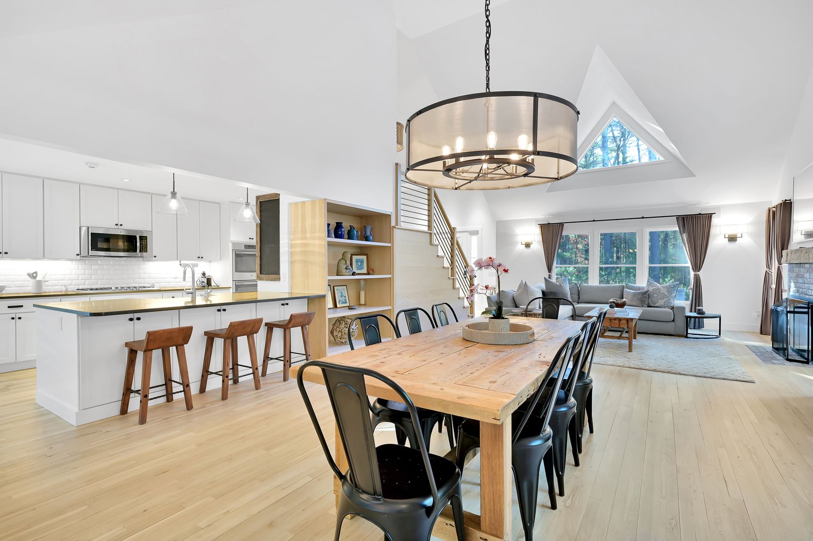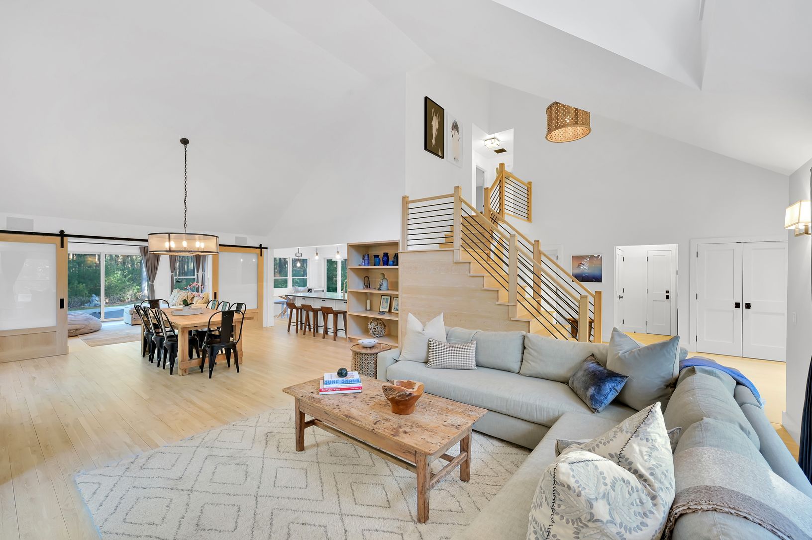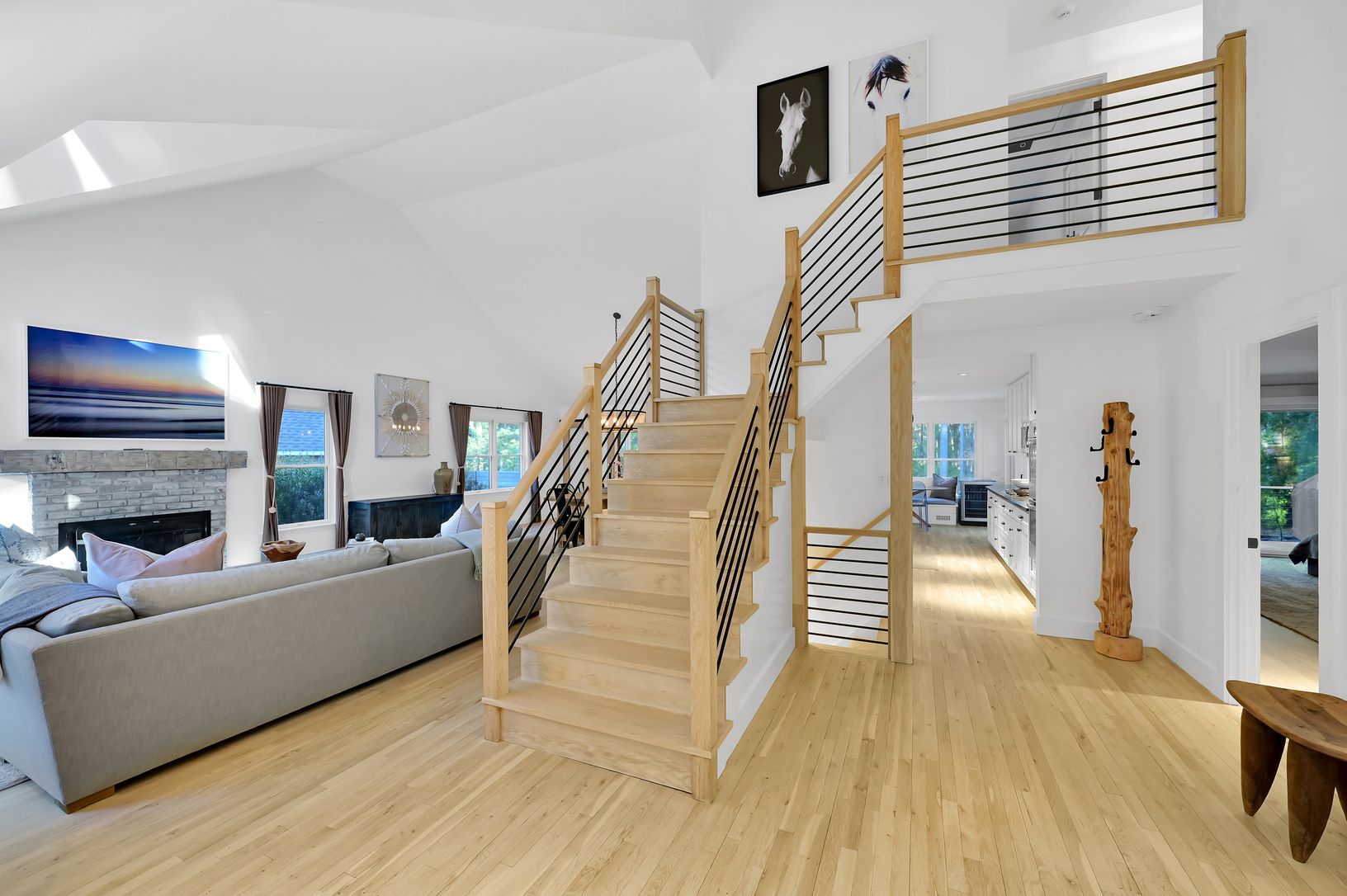 Private, yet close to all, in East Hampton's nearby Northwest, a striking 4 bedroom, 5.5 bath Forst & Silverblank built home reigns over nearly 2 acres of landscaped splendor under a canopy of towering, majestic, white pines. The 4,500 +/- sq. ft, sun filled residence on three floors of living space meticulously cared for and recently renovated by discerning owners welcomes all over beautifully light stained white oak floors into an open f