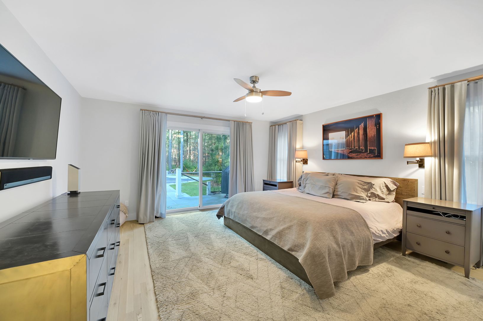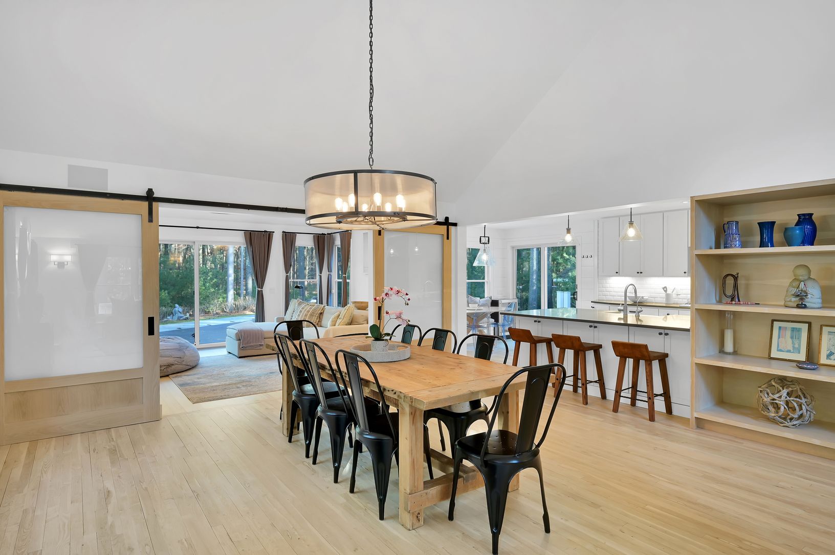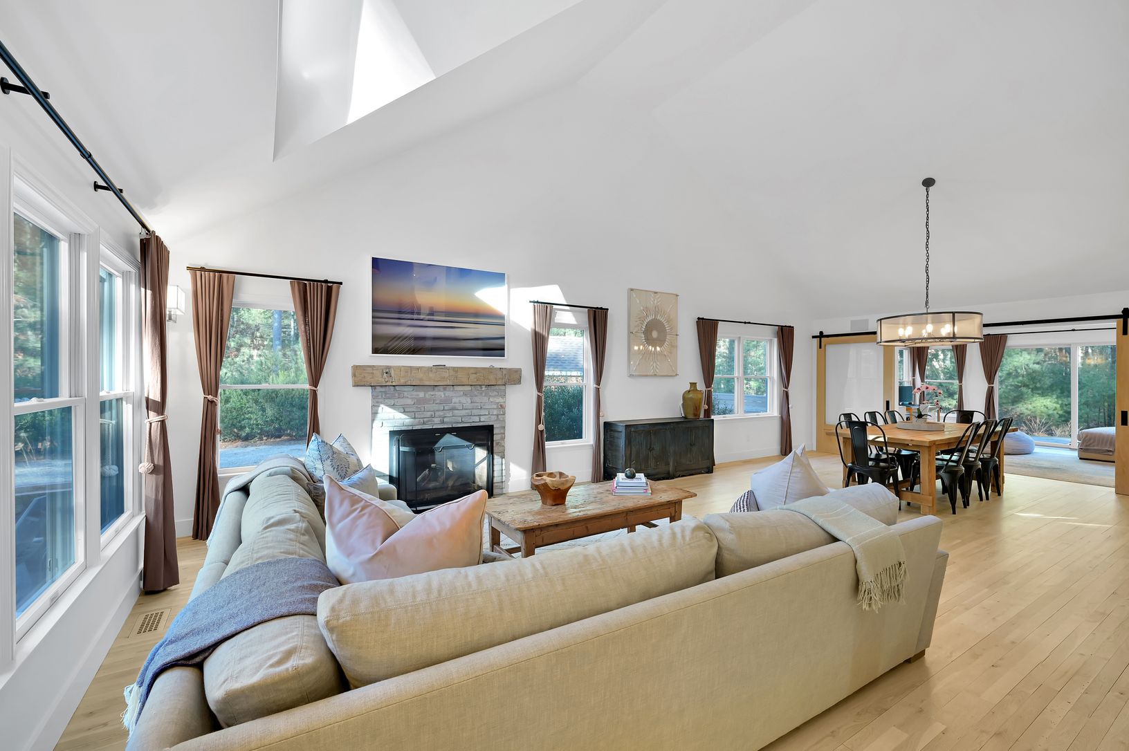 Private, yet close to all, in East Hampton's nearby Northwest, a striking 4 bedroom, 5.5 bath Forst & Silverblank built home reigns over nearly 2 acres of landscaped splendor under a canopy of towering, majestic, white pines. The 4,500 +/- sq. ft, sun filled residence on three floors of living space meticulously cared for and recently renovated by discerning owners welcomes all over beautifully light stained white oak floors into an open f