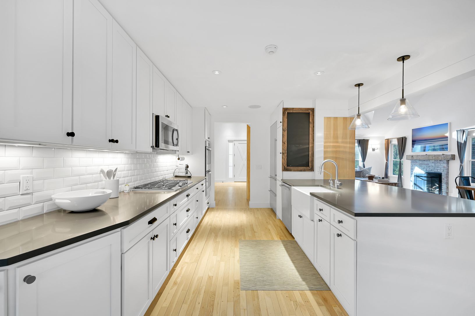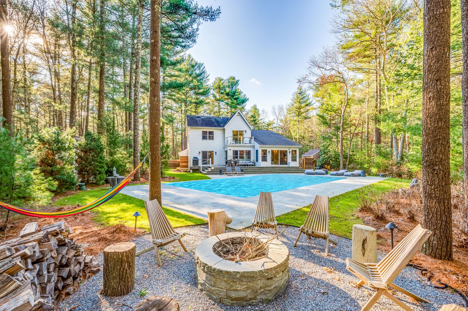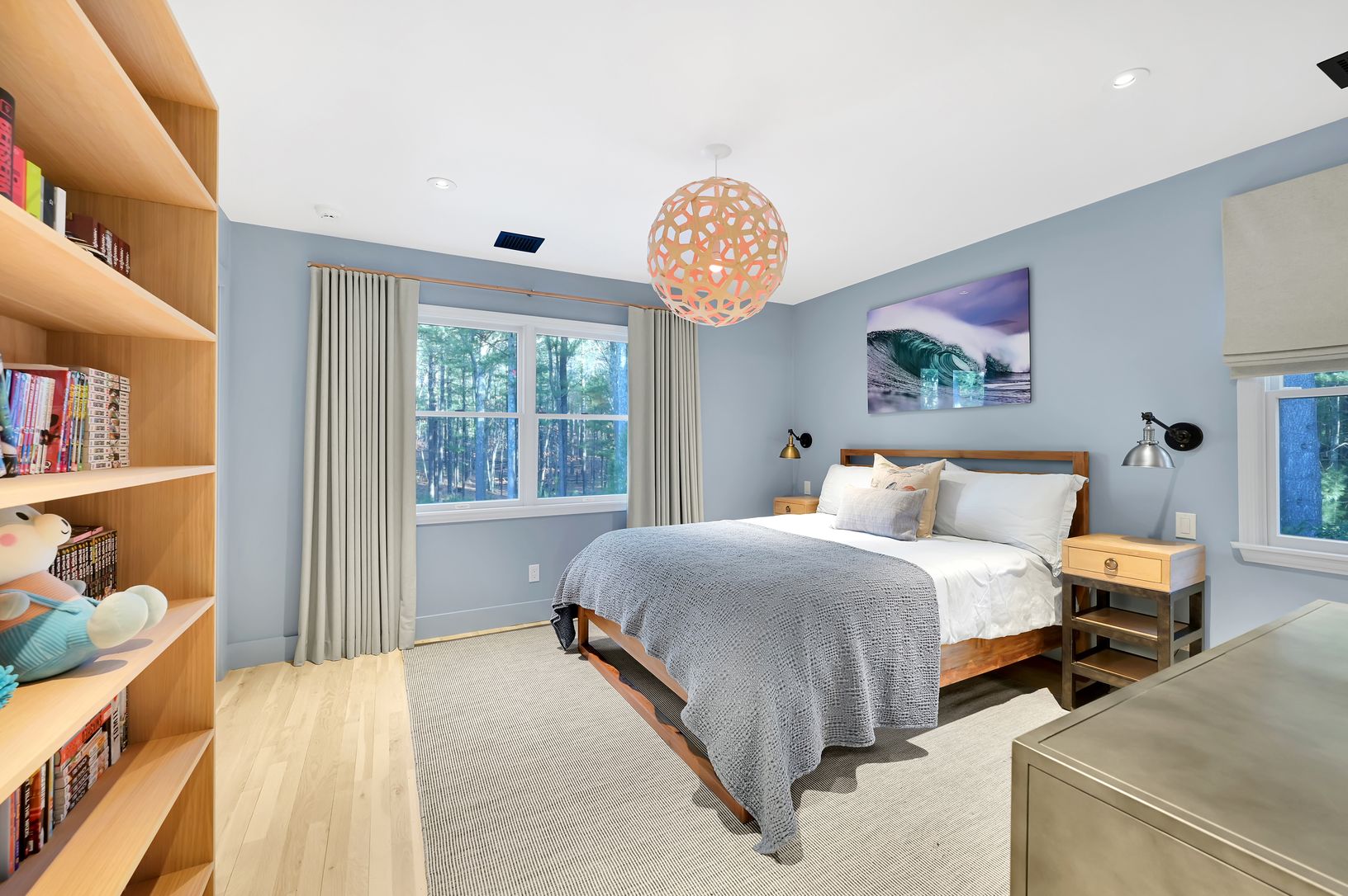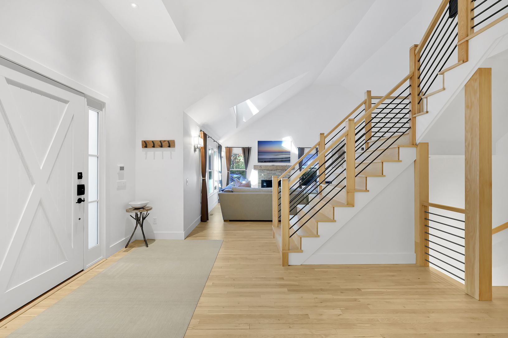 Private, yet close to all, in East Hampton's nearby Northwest, a striking 4 bedroom, 5.5 bath Forst & Silverblank built home reigns over nearly 2 acres of landscaped splendor under a canopy of towering, majestic, white pines. The 4,500 +/- sq. ft, sun filled residence on three floors of living space meticulously cared for and recently renovated by discerning owners welcomes all over beautifully light stained white oak floors into an open f