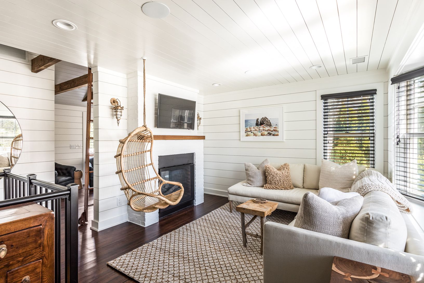 Upon entry through the solid oak Dutch door, a double-sided gas fireplace connects both the living sp