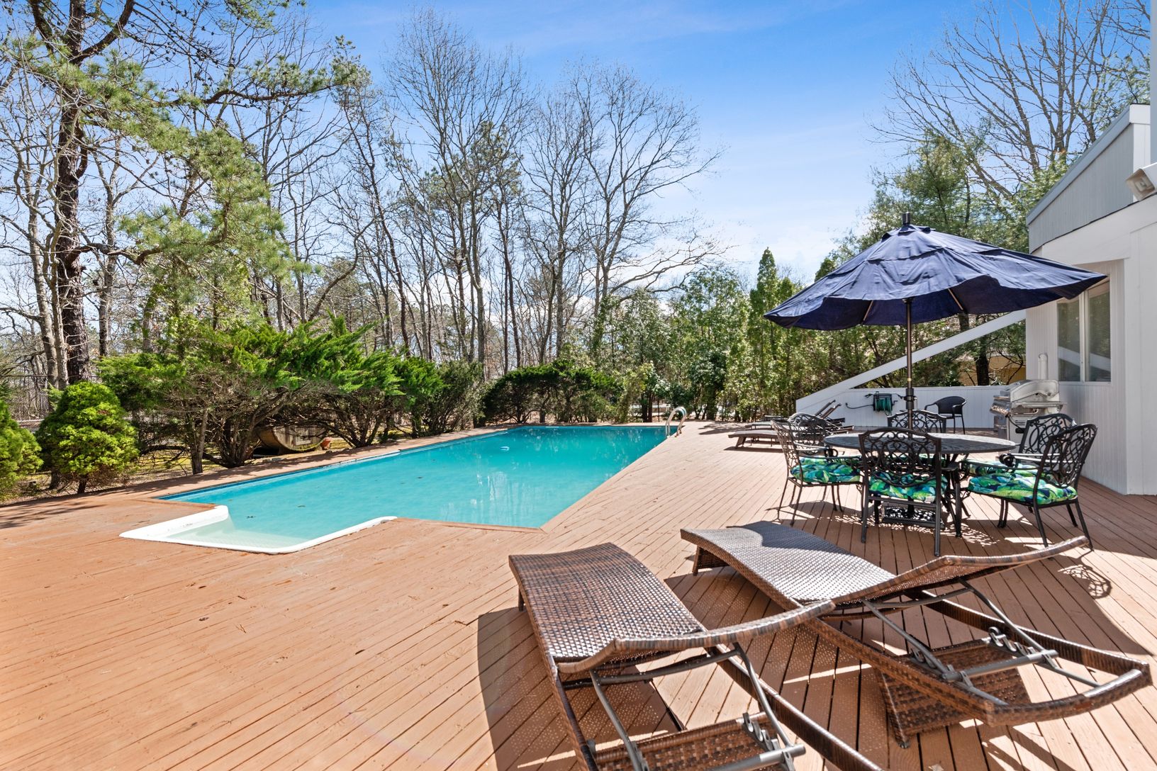 SPACIOUS 4 BEDROOM 2.5 BATH CONTEMPORARY COMPLETE WITH IN GROUND POOL AND TENNIS COURT. THE HOME IS SITUATED ON A PRIVATE ONE ACRE PARCEL ON A CUL DE SAC. OPEN FLOOR PLAN WITH VAULTED CEILINGS. BEDROOMS/GREAT ROOM HAVE ACCESS TO DECKS. MAIN LIVING GREAT ROOM OVERLOOKS A LARGE ENTERTAINING DECK AND POOL. FULL UNFINISHED BASEMENT THAT LEADS TO THE GARAGE. UPDATES INCLUDE: 2020- NEW ROOF, EXTERIOR PAINTED, KITCHEN AND APPLIANCES 2019-NEW GLASS IN