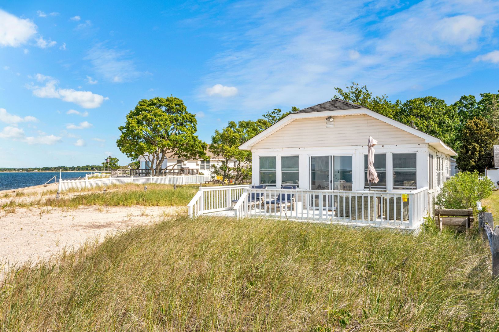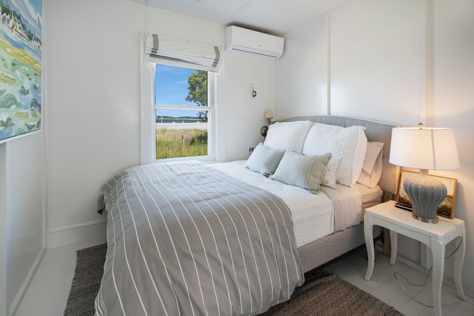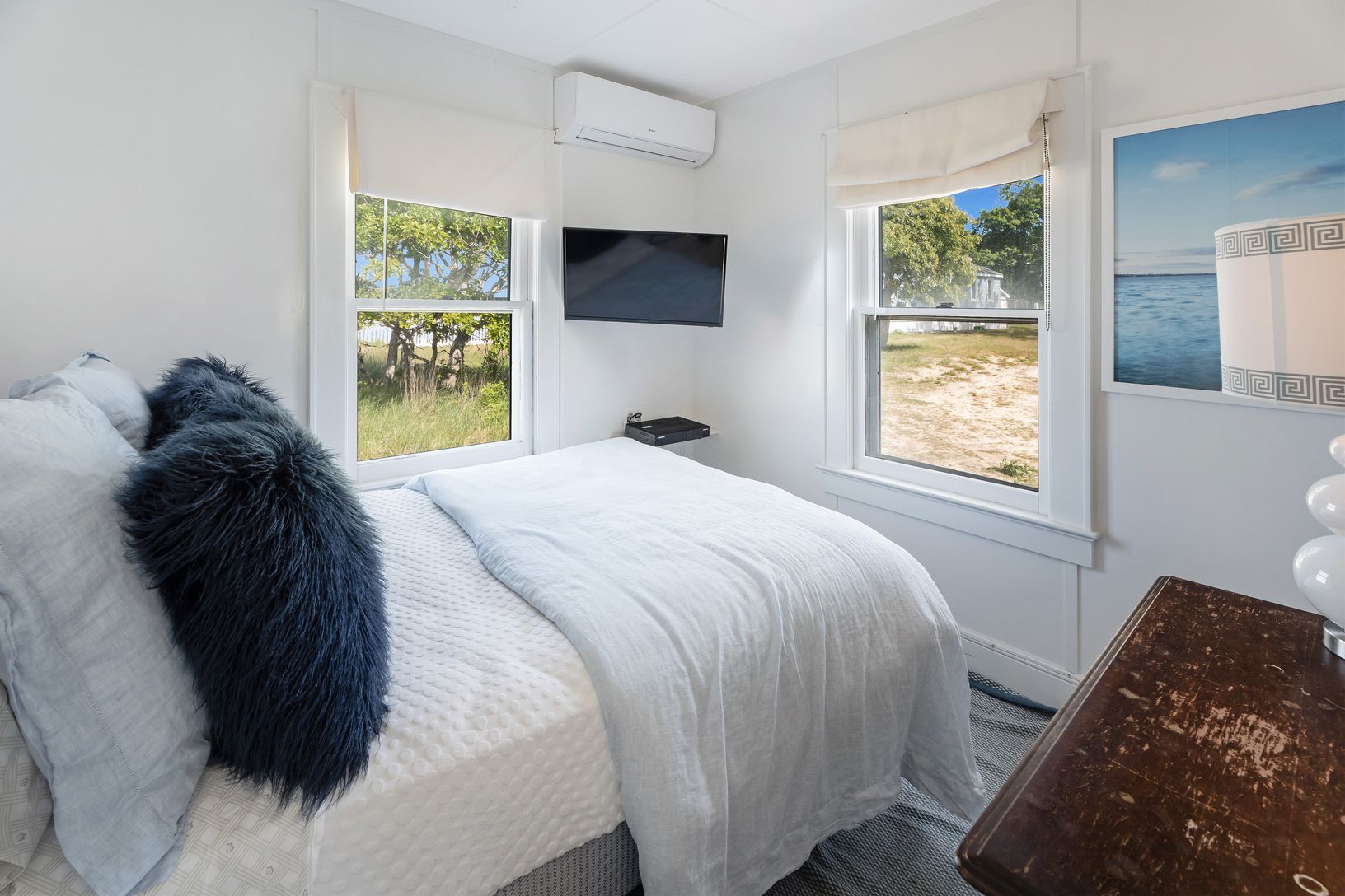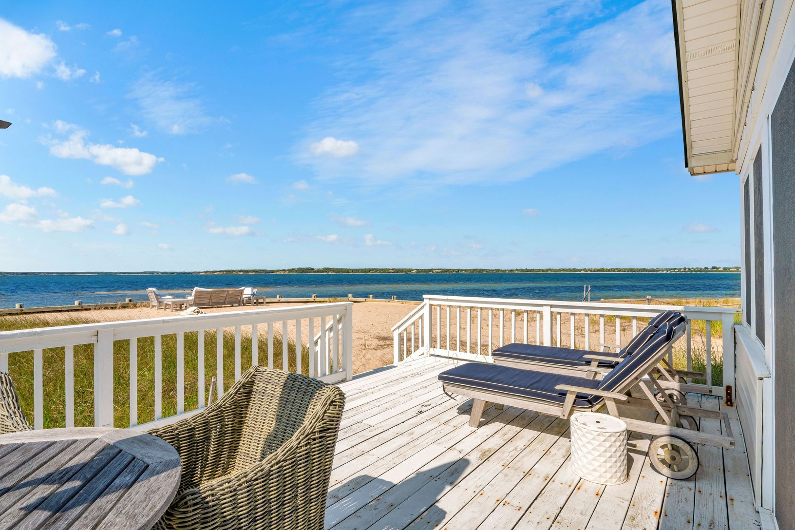 Stunning waterfront property on a corner lot with 180 degree water views -- 3 bedrooms with queen beds, cooling/heating splits in each room, and ample parking. Catch the sunsets and sip morning coffee with a view from the porch or the private beach. 3 minute walk to Circle Beach, 10 minute drive to Sag Harbor Main Street. 1 min from grocery/deli.