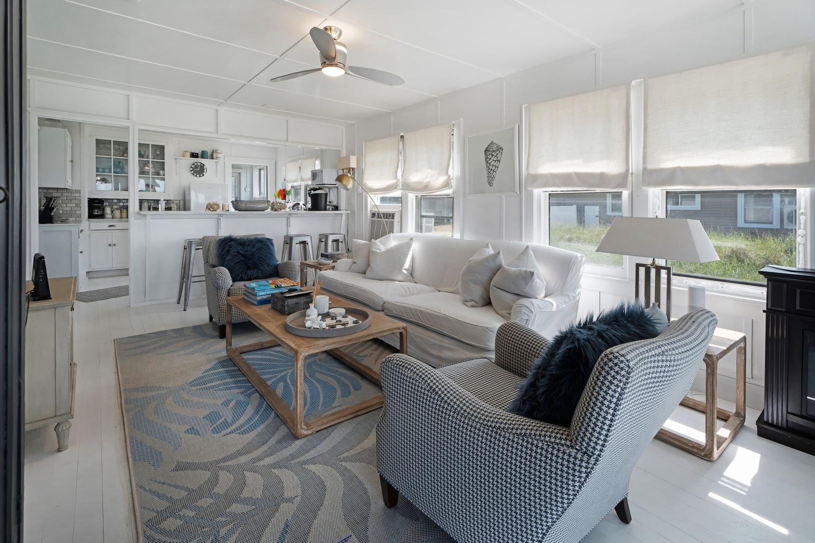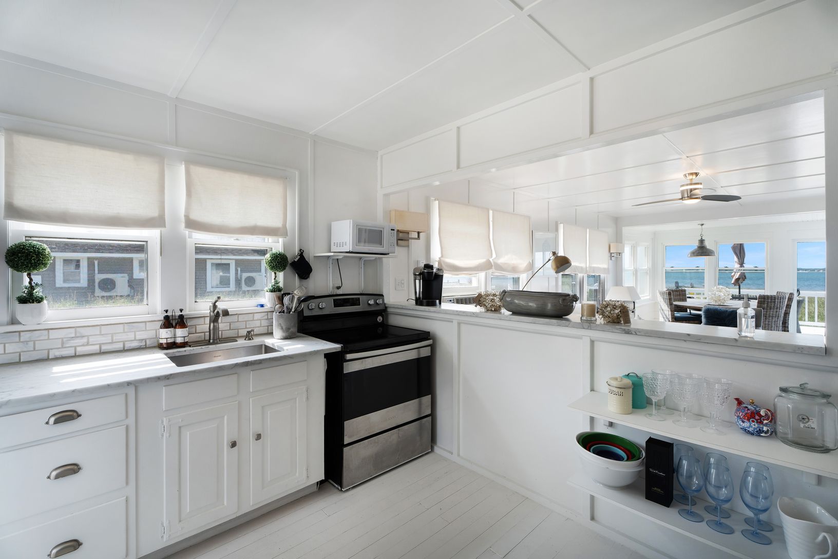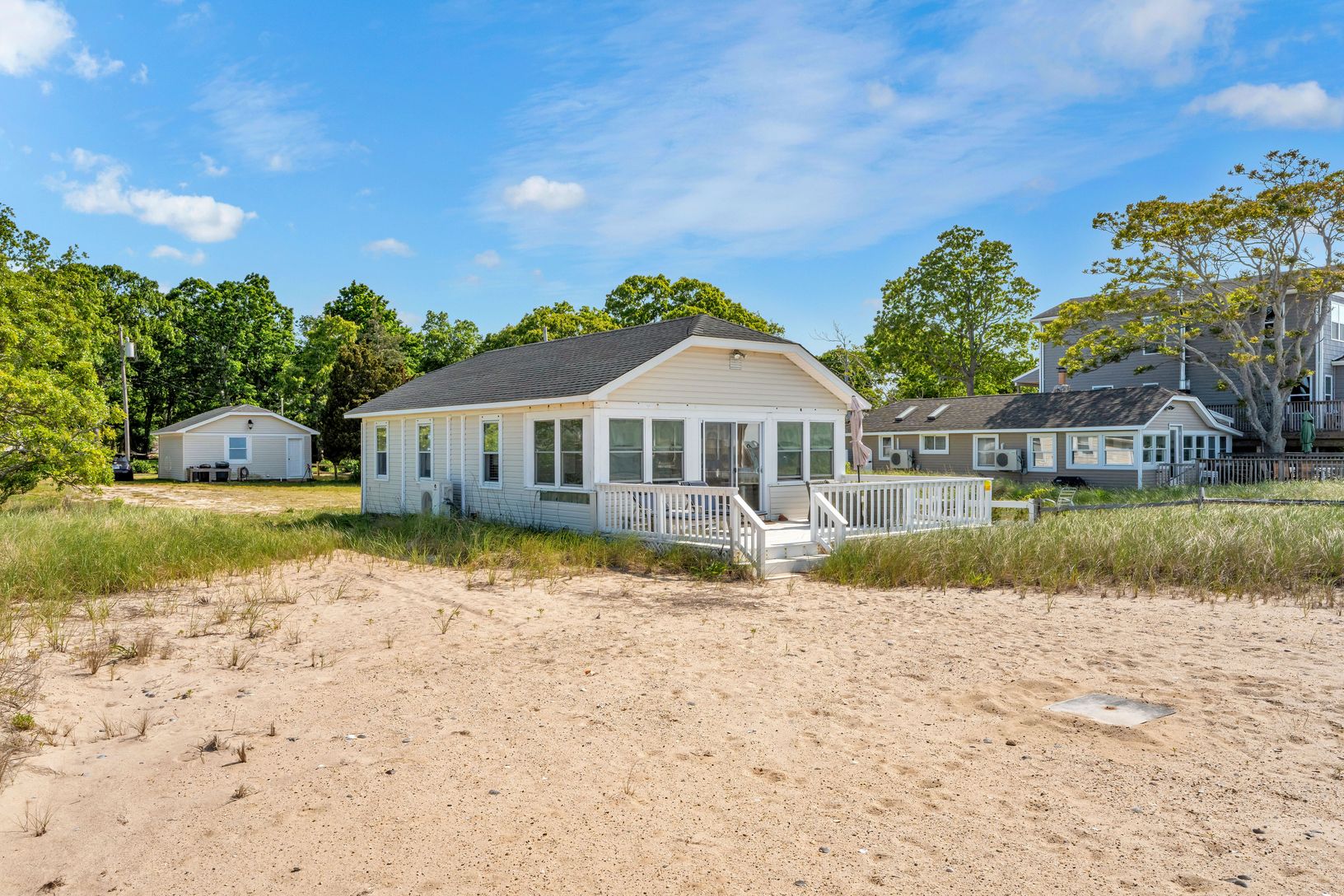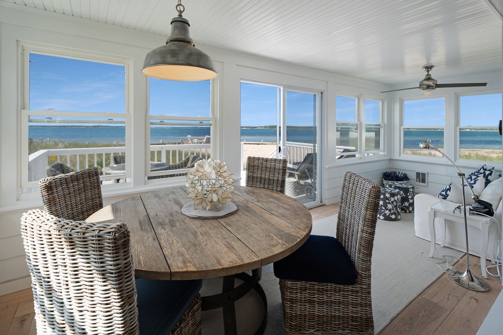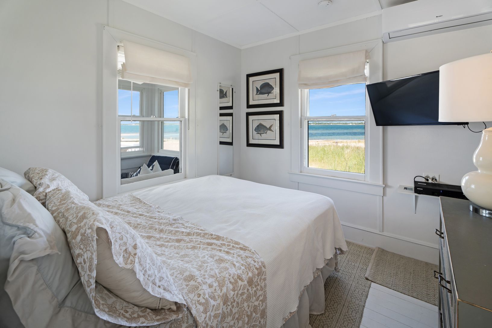 Stunning waterfront property on a corner lot with 180 degree water views -- 3 bedrooms with queen beds, cooling/heating splits in each room, and ample parking. Catch the sunsets and sip morning coffee with a view from the porch or the private beach. 3 minute walk to Circle Beach, 10 minute drive to Sag Harbor Main Street. 1 min from grocery/deli.