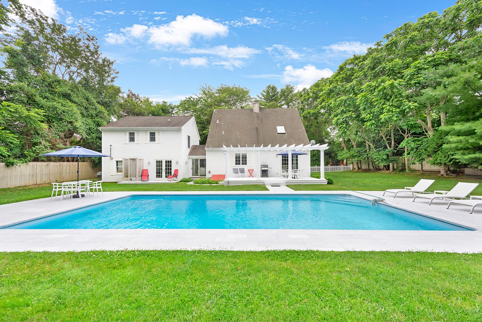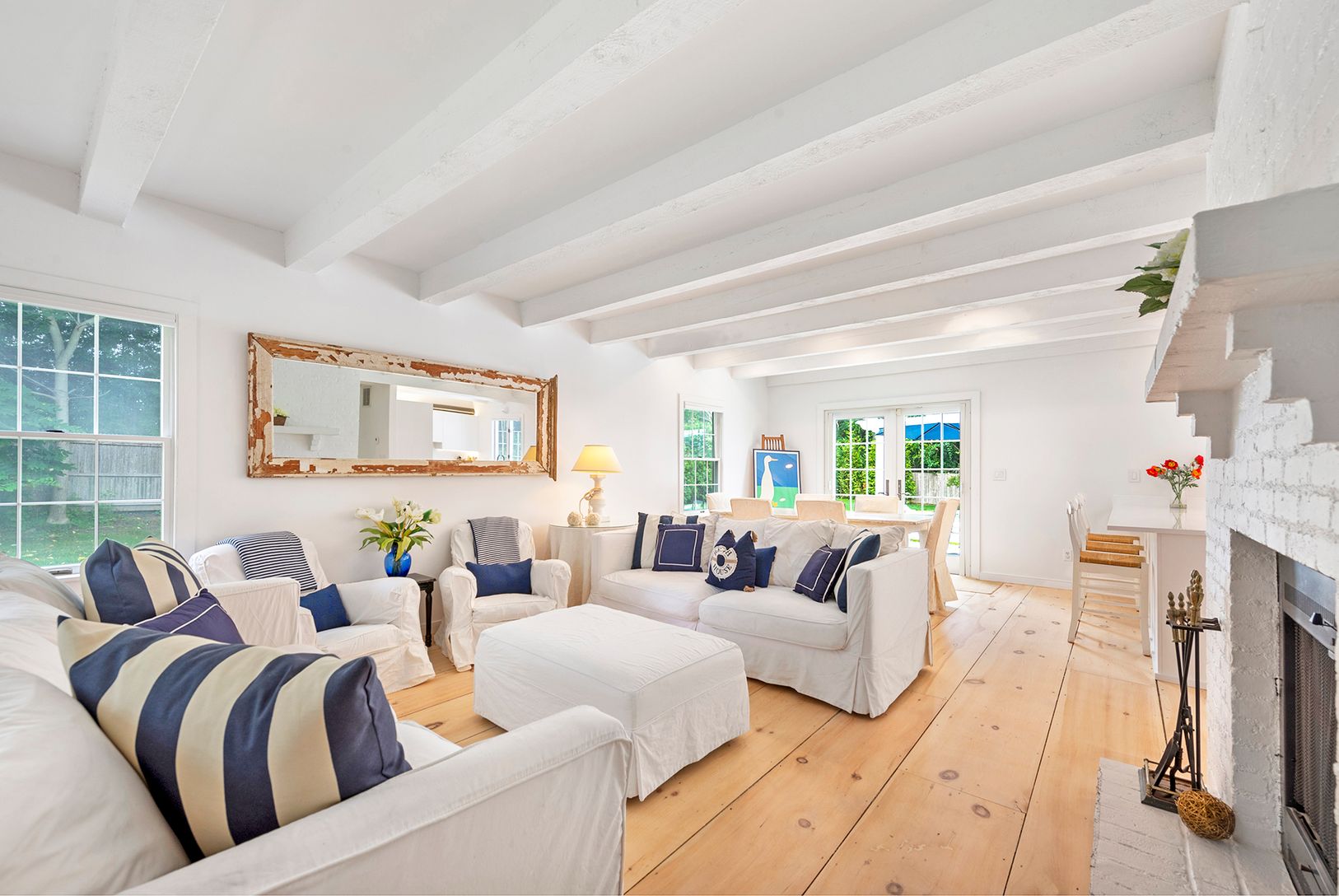 Absolutely fabulous -- yet simple and casual beachy white decor. Newly renovated kitchen and wide bleached plank wood flooring sets the stage for white slip-covered furniture and white country chic bedrooms. The 2-story traditional has five bedrooms, five bathrooms with good separation for privacy. Two living areas and a den. The light bright home has central air, heated pool, outdoor shower, large green lawn area with newly updated pool patio