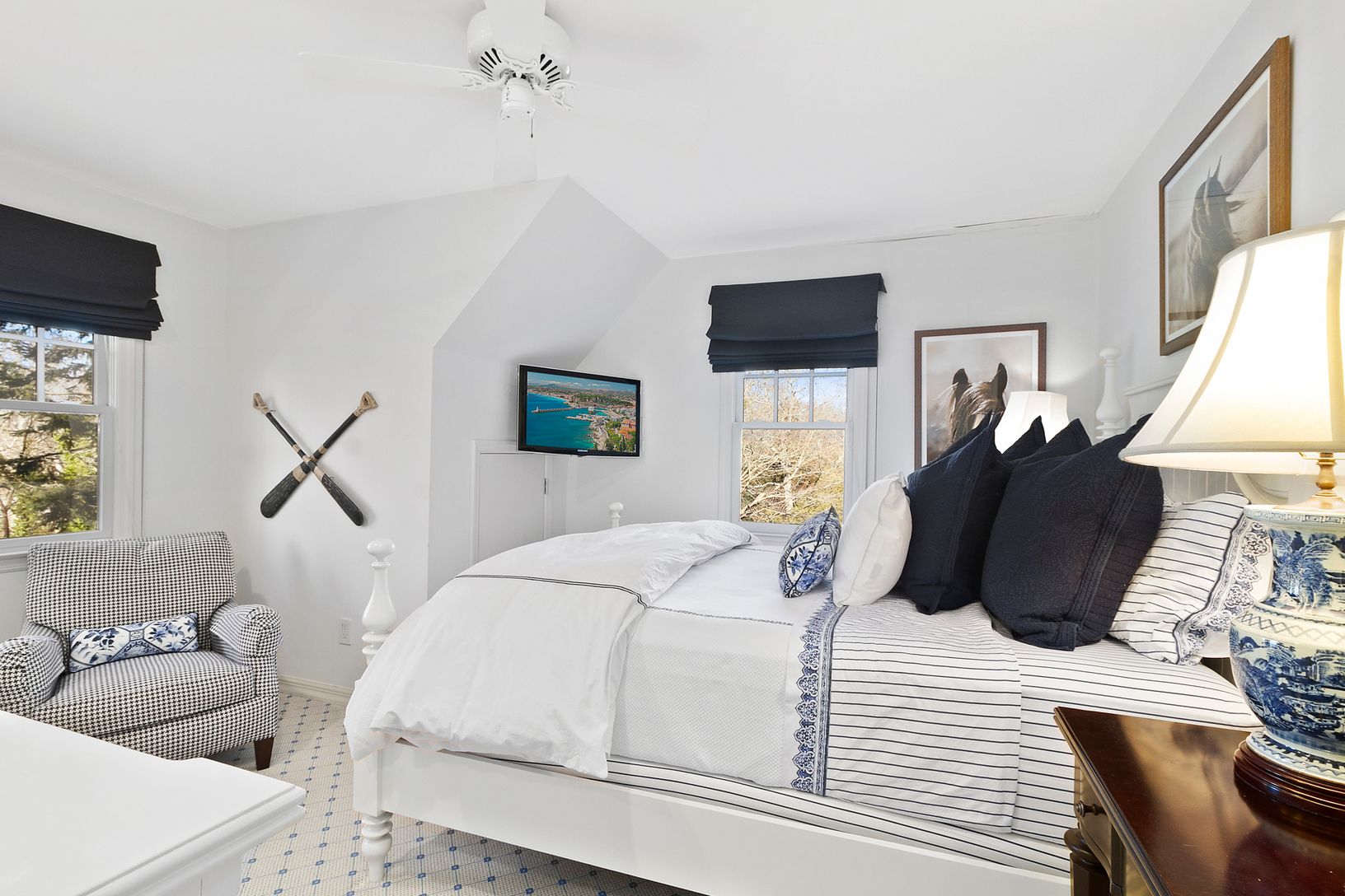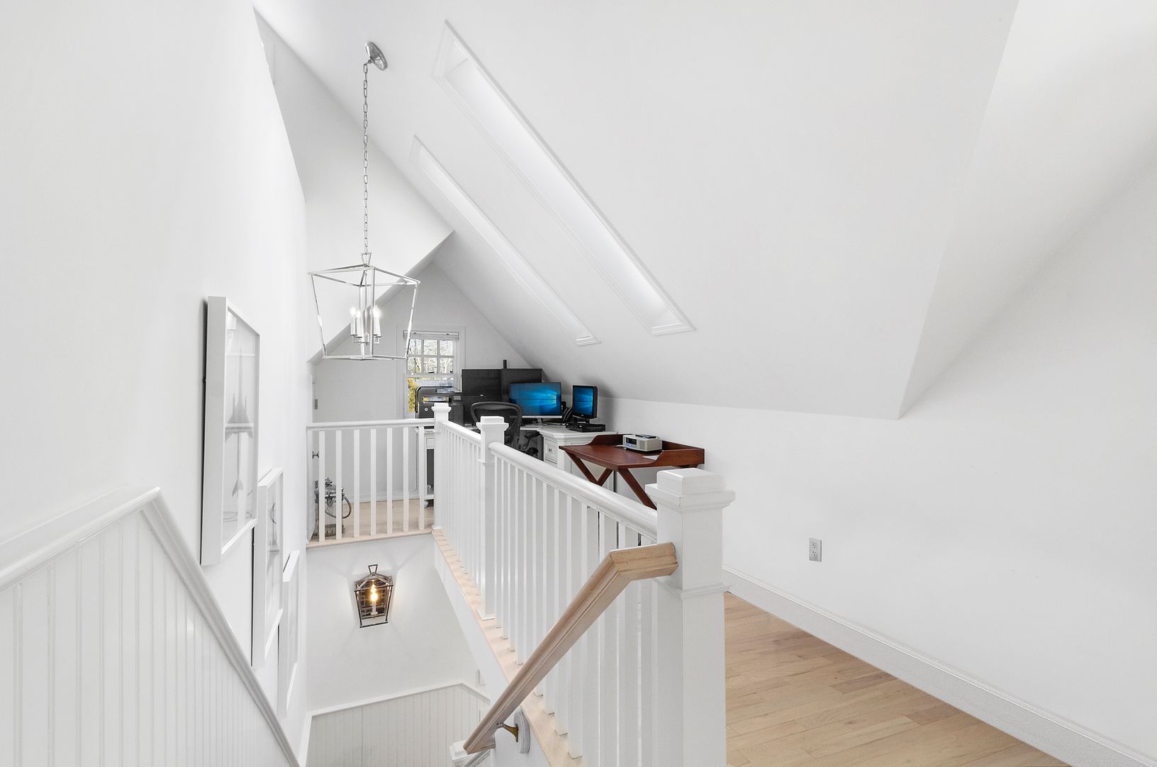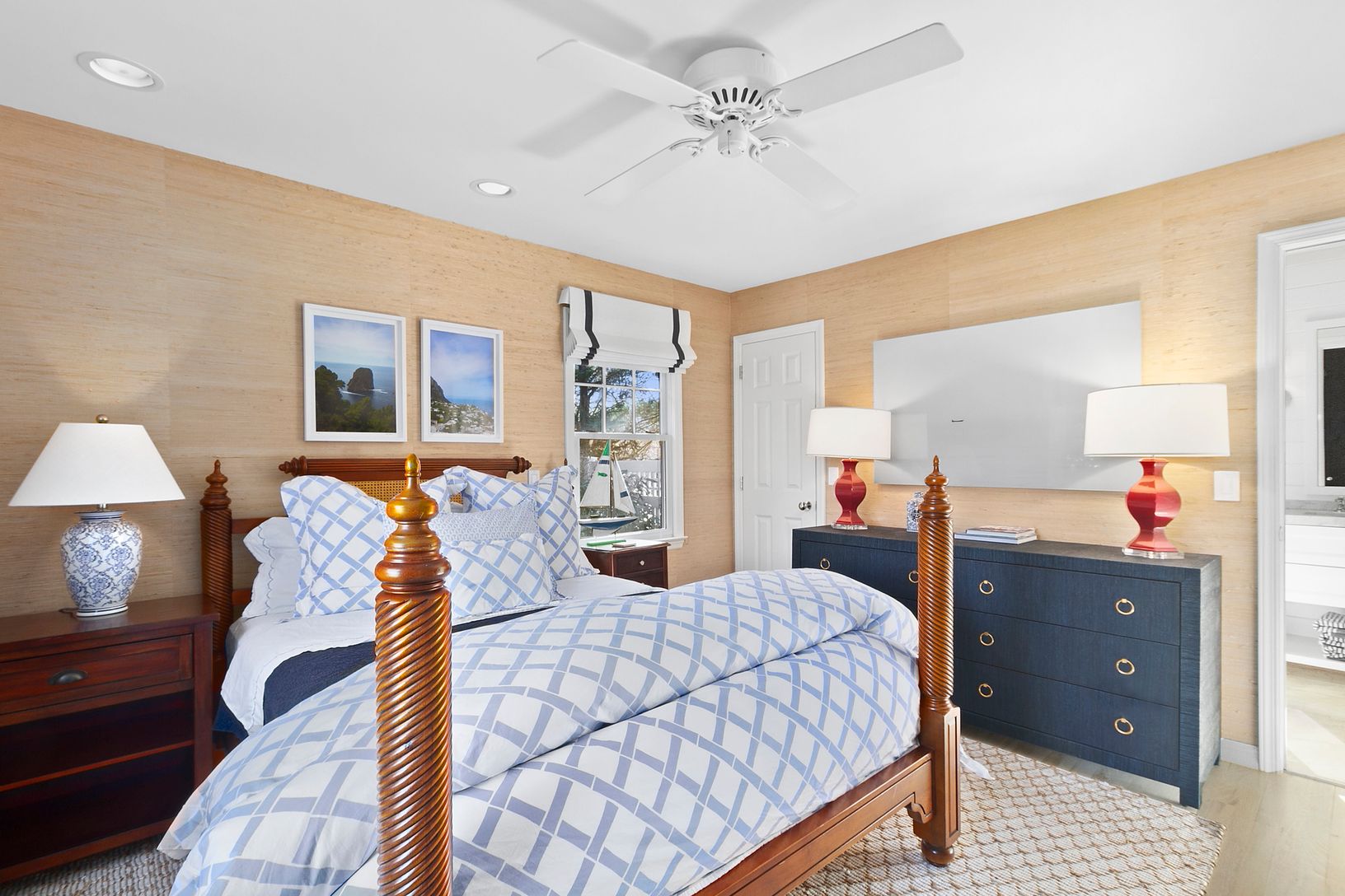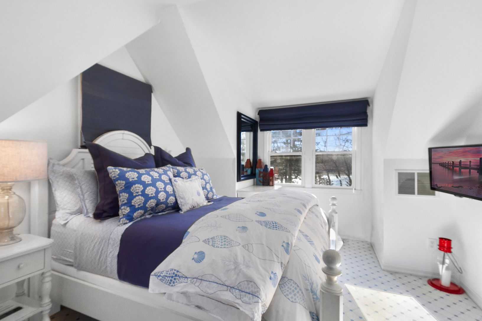 Perched facing west on an elevated waterfront property, sits this turn-key home surrounded by sunset views from most rooms. This two-story 4 bedrooms, 3.5 bath traditional home, graced by a covered entry, opens to a chic ‘beachy' interior executed with high end details and finishes and filled with an abundance of natural light. The main floor boasts an open living area combining a sophisticated kitchen with custom paneled refrigerator/freeze