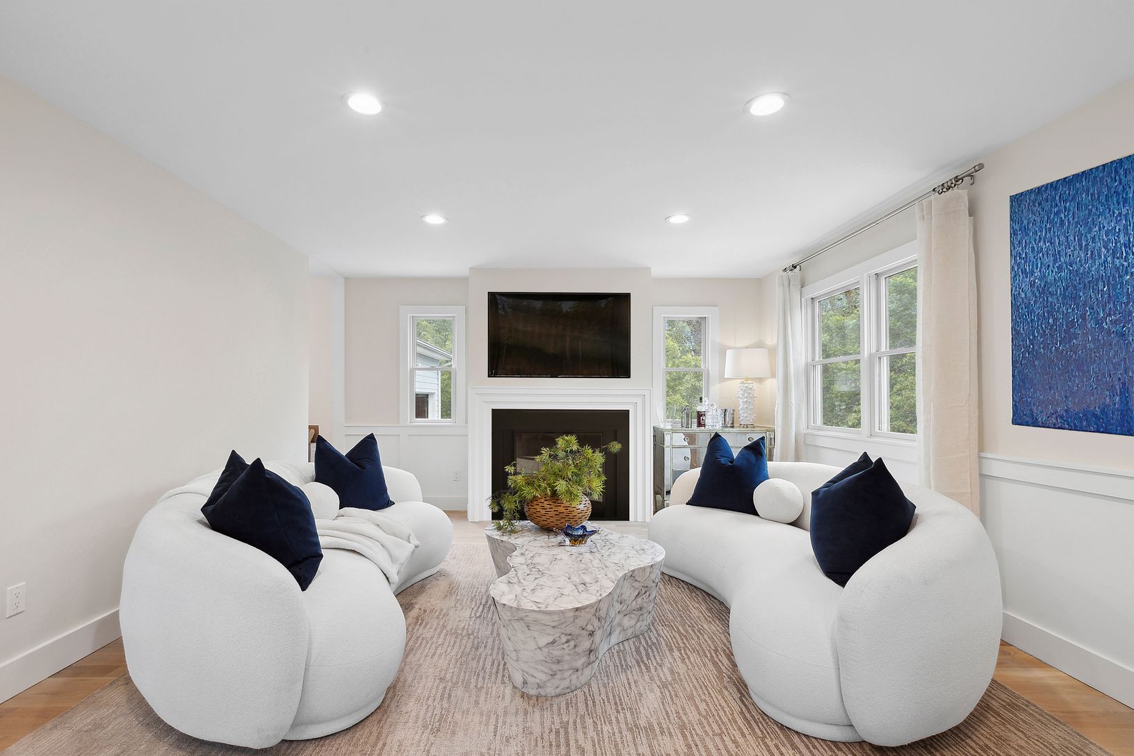 Situated on 0.96 acres+/-, this 5,300 SF+/- home boasts a thoughtful design for modern living and features five bedrooms, three full and one half bathrooms. The property has just undergone a complete renovation, ensuring a harmonious blend of contemporary style and comfort. Peacefully set in a tranquil, wooded area, this newly renovated property offers a haven of privacy with easy access to Southampton, Bridgehampton, and Sag Harbor Villages.
