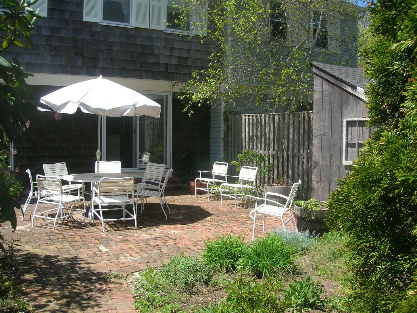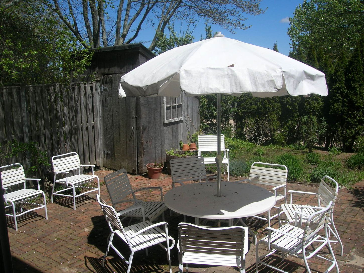 Townhouse condo being freshly painted featuring 3 bedrooms, 2 renovated full baths, central air, cook's kitchen with gas stove, dining room and living room with fireplace. Community tennis and large heated saline pool on premise. There is a private outdoor brick patio with beautiful flowers and herbs plus potting shed. Parking both front and back door of unit. Located for easy trips into town or the best ocean beaches. There are low monthly co