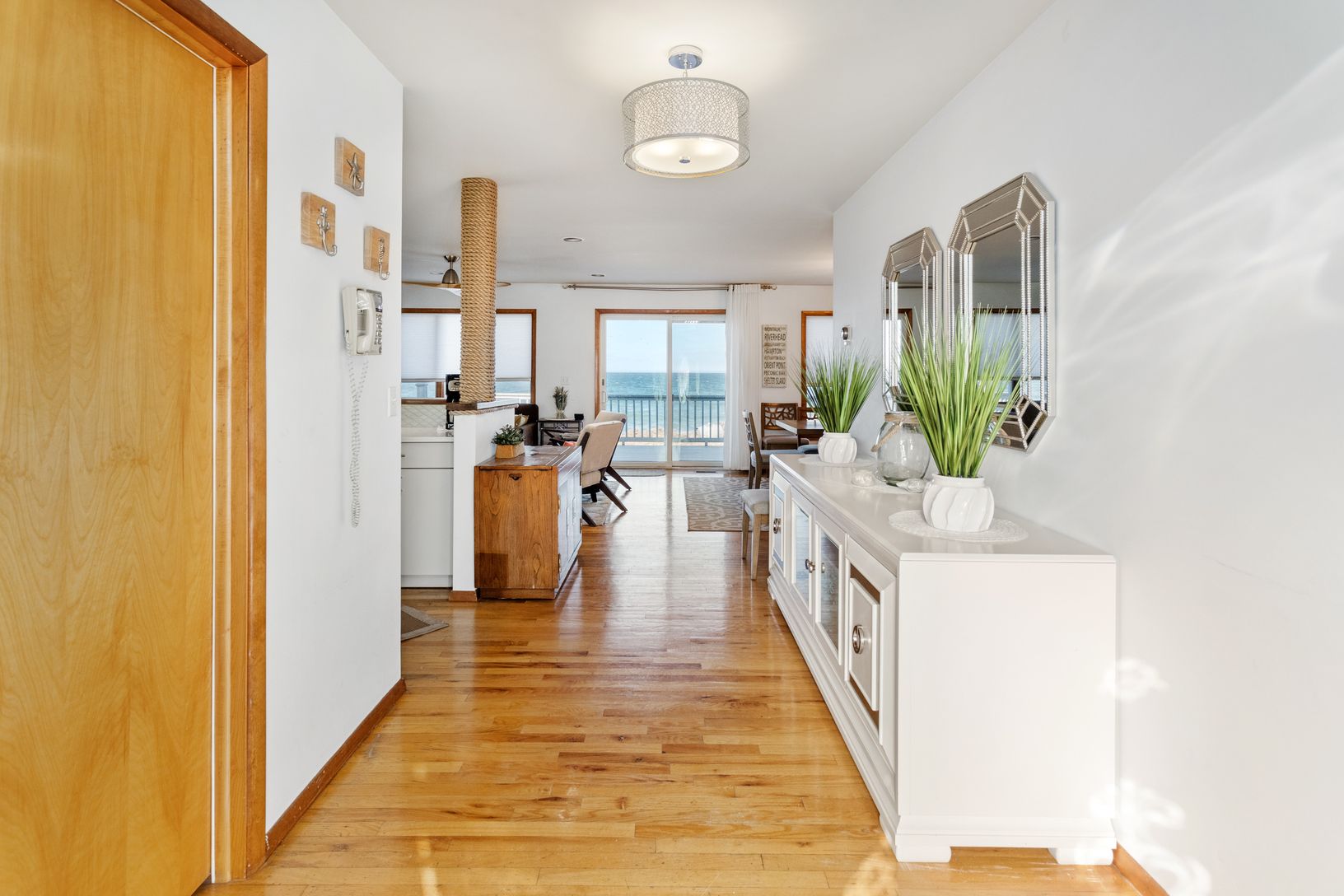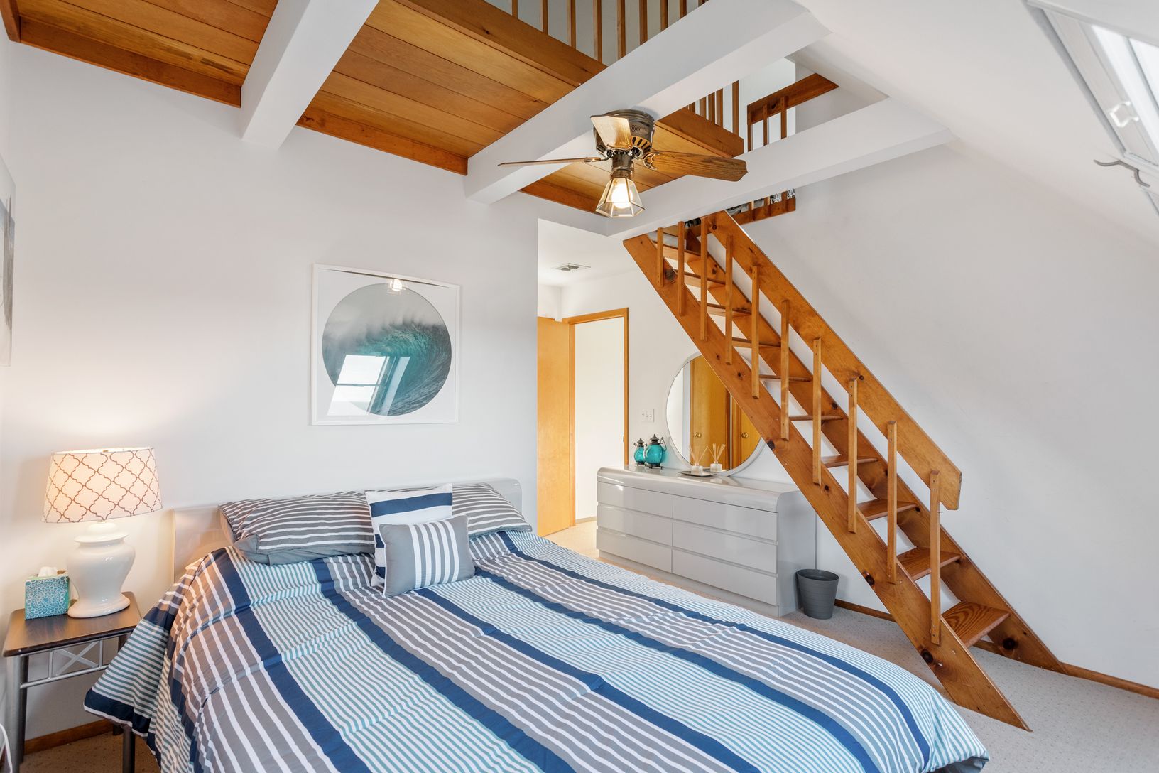 Available for rent, this 1 Acre, 5 bedroom, 2.5 bath home is generously sized, with waterfront Northwest exposures, overlooking the Long Island Sound. The 1st floor, open layout Kitchen, Dining Room and Living Room combo, complimented by a wood-burning fireplace, allows for first-row sunset views. Additionally, the 1st floor consists of 2 Queen sized bedrooms, a full bath, as well as a den. Entering the 2nd floor, you're greeted with 3 bedroom