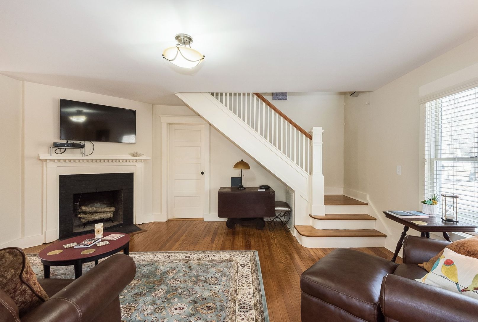 It offers 3 bedrooms (sleeps 6 comfortably) with flat screen TVs/cable/WI-FI; 2 new full baths (1 with original refurbished claw foot tub); brand new gourmet kitchen with granite counters and Jenn Air appliances; mud/laundry room with LG washer/dryer; large open room concept between living room and formal dining room; full length parlor with additional seating area; outdoor paved patio with grill and fire pit are what awaits you in this nicely
