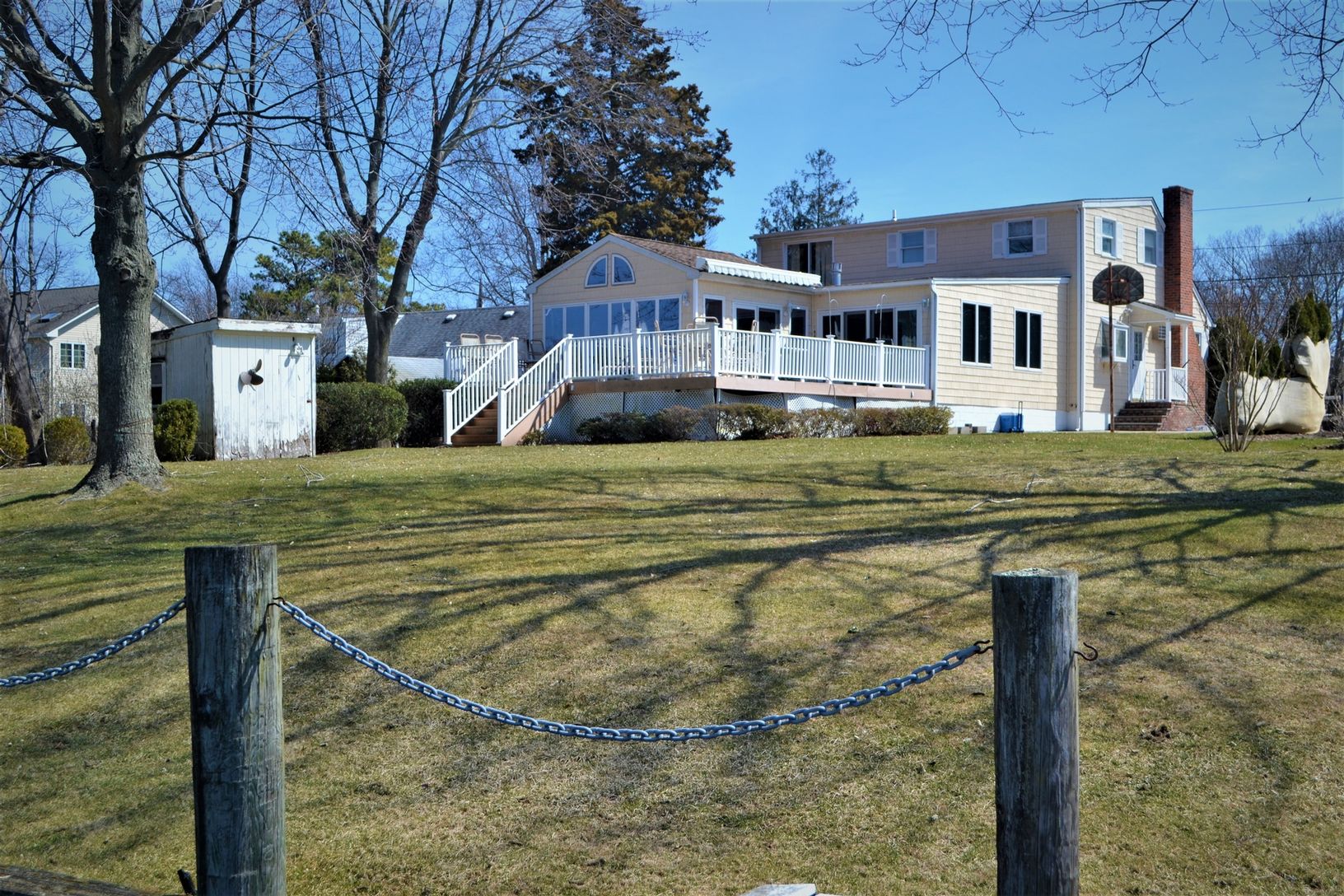 Waterfront home on a Deep-Water Creek with 60 feet of bulkhead that can accommodate large boats and has direct access to Peconic Bay. Open and airy home includes 5 bedrooms, 3 full baths, kitchen with granite counter tops, open concept waterside dining room, living room, sun-room that leads out to the spacious deck overlooking desirable James Creek. Additional there is a family room with a gas fireplace and a game room with a wood burning fire