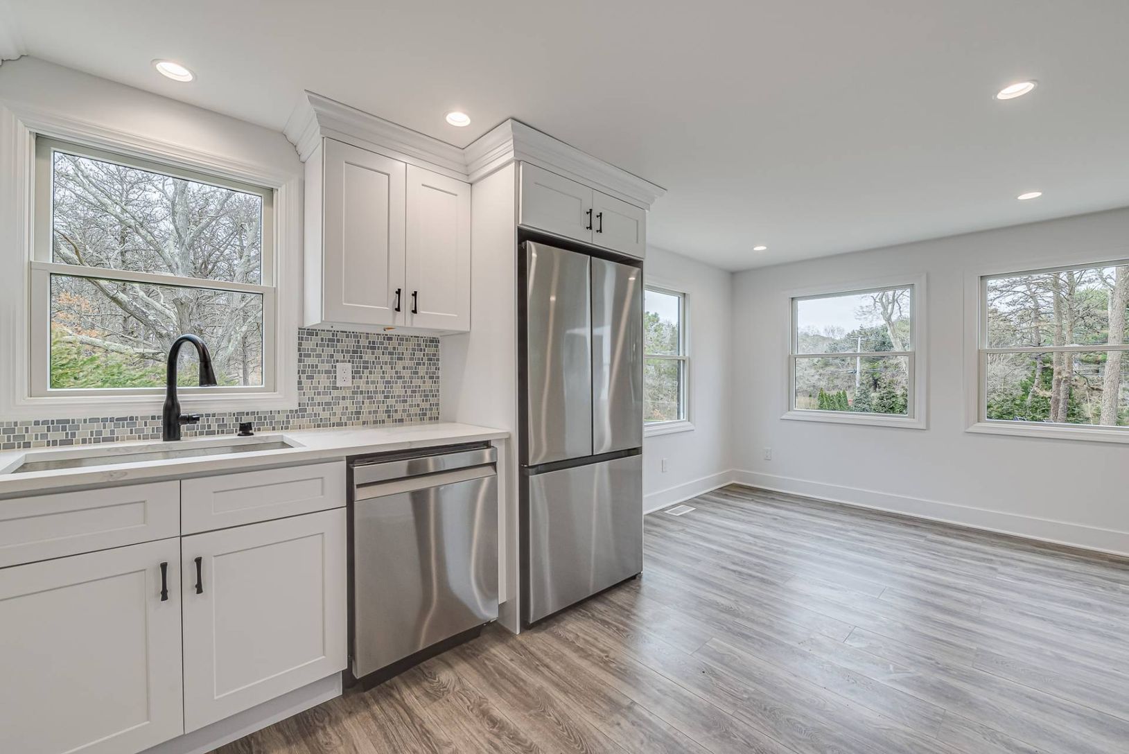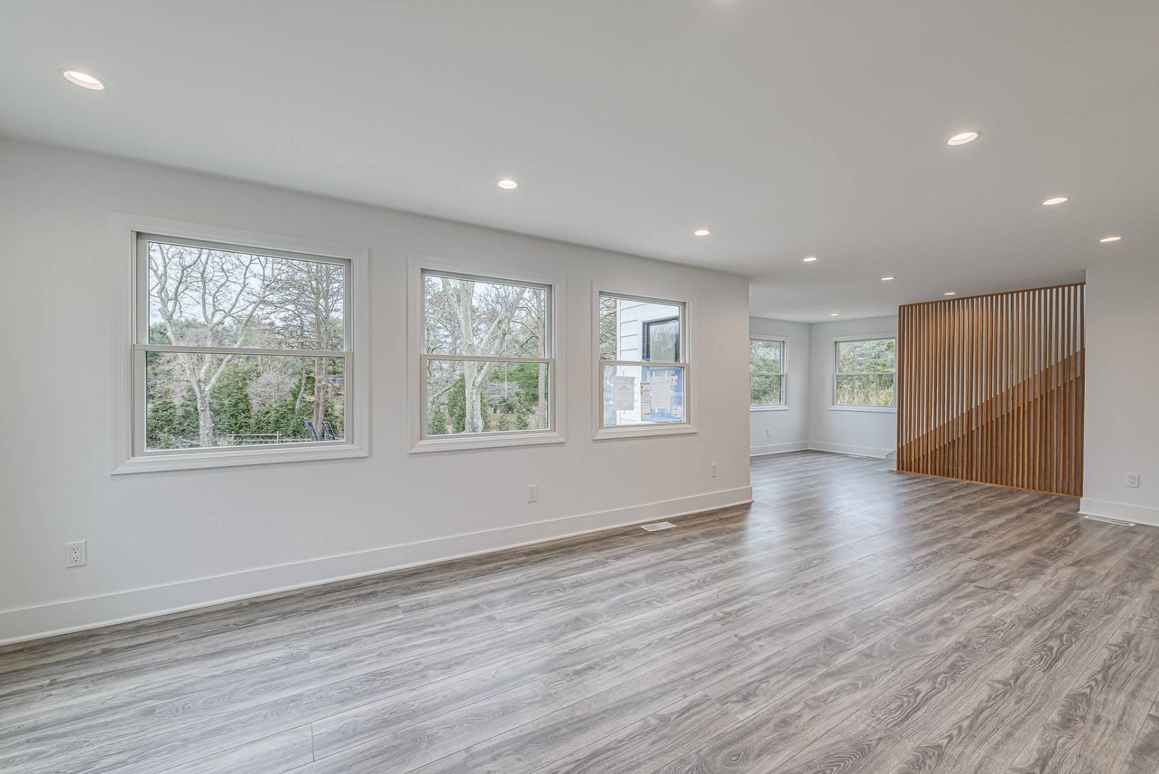 Spend this summer in Southampton in this newly renovated and stylish home on a just-shy half acre with 3 bedrooms and 3 full baths. Enter to light-filled interiors where you'll find open living areas with white walls and ceilings, recessed lighting and plank flooring. The kitchen features stainless steel appliances and waterfall tiled backsplash. Upstairs sliding glass doors open to a terrace . The primary suite includes a bath with marble til