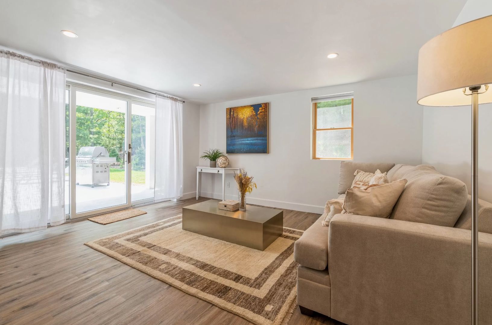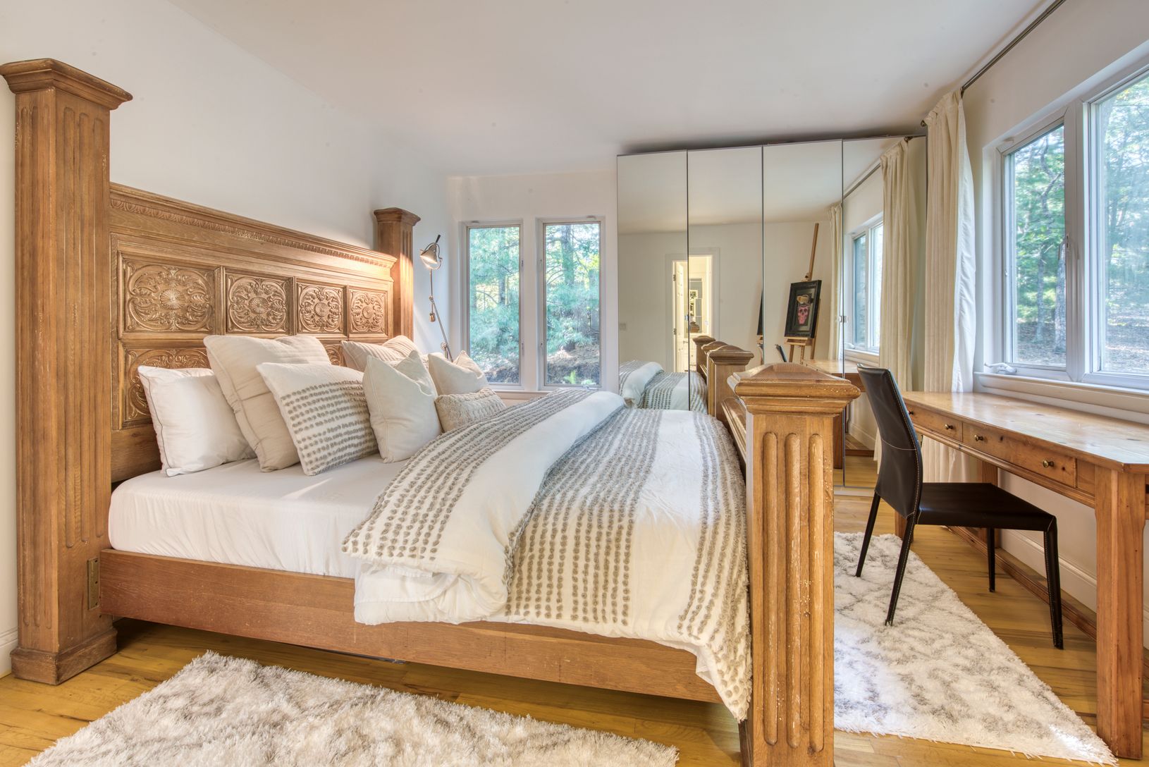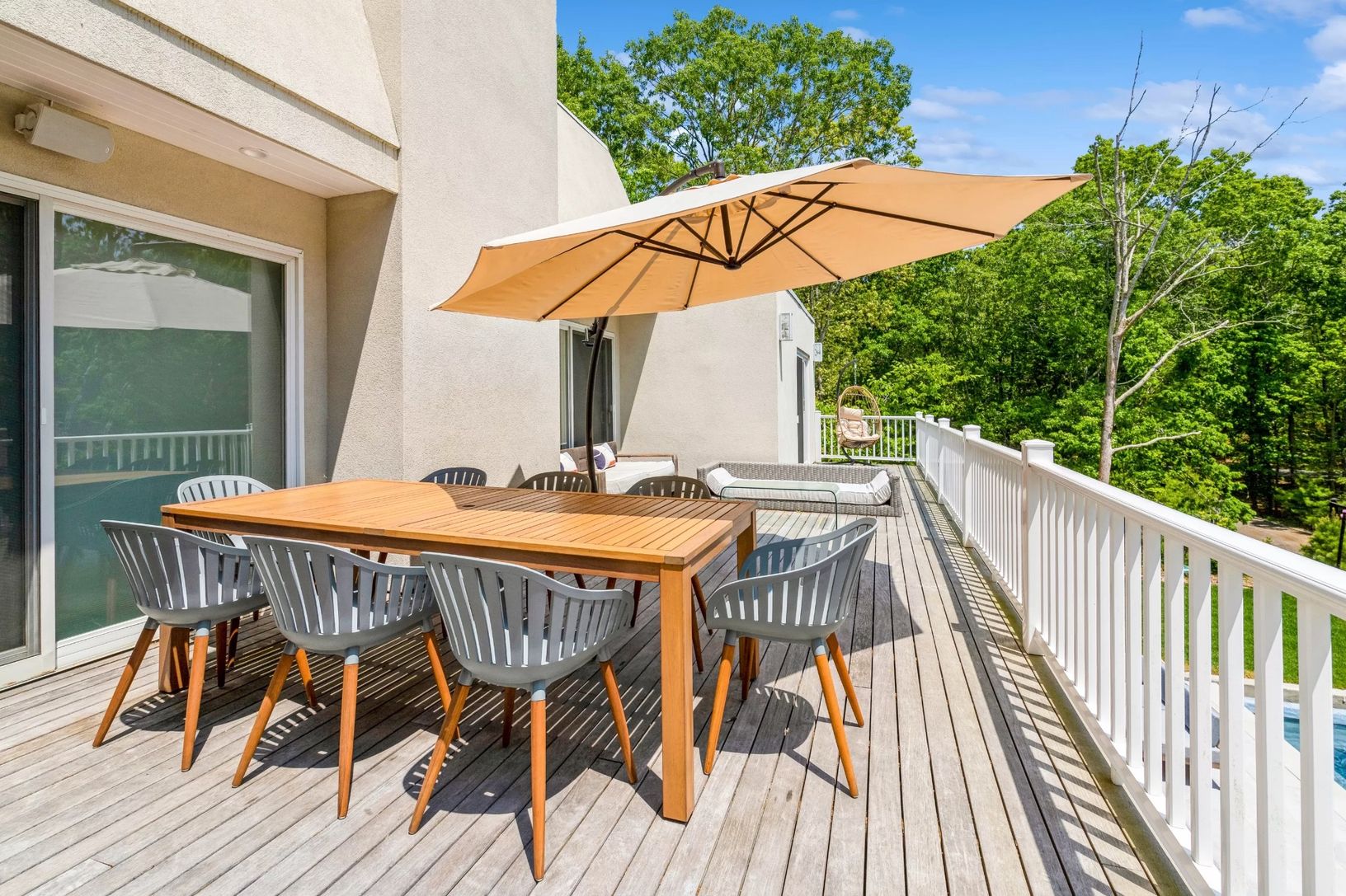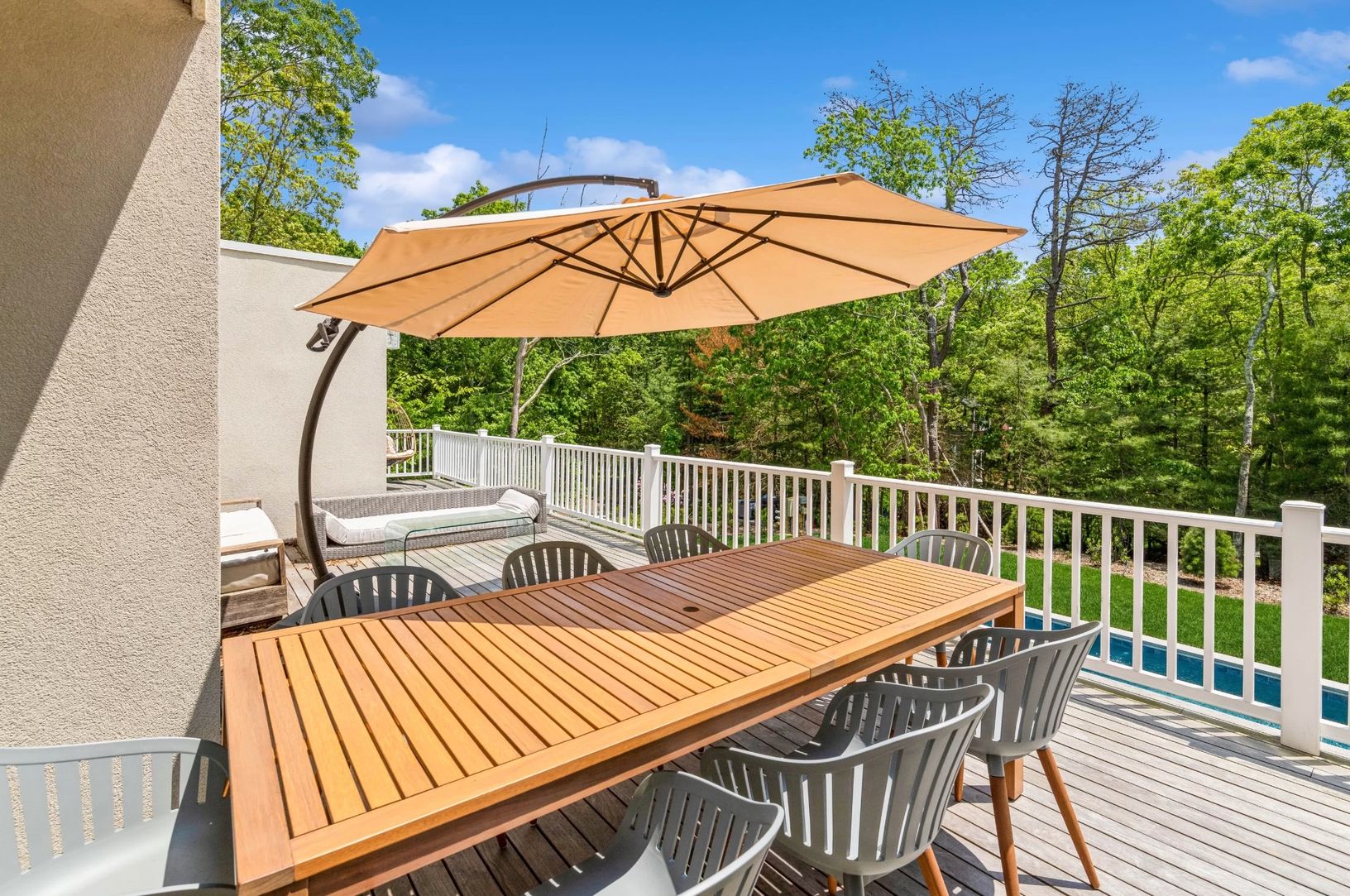 Enjoy this private property located minutes from both East Hampton Village and Sag Harbor. This sunny and stylish 4 bedroom home offers gym, wet bar and great lawn surrounded by lush landscaping. Open floor plan, high ceilings with a great outdoor deck is a great rental for off season or summer.