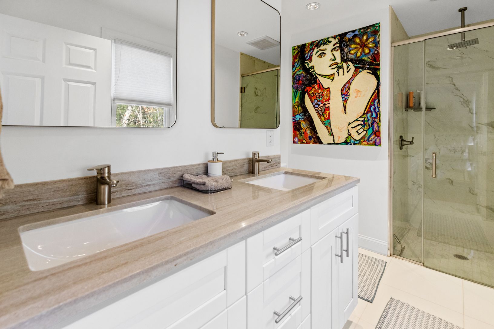 Welcome to this contemporary home in the heart of The Hamptons, close to the best beaches and the shops and restaurants of both East Hampton (5 minutes) and Sag Harbor (12 minutes). This unique two-story 4 four-bedroom, 5 full-bath home offers style and comfort. The private gated .62-acre lush property offers an open floor plan, fireplace, high-end kitchen, and lots of light. Three bedrooms, and three beautiful baths on the main level, with a