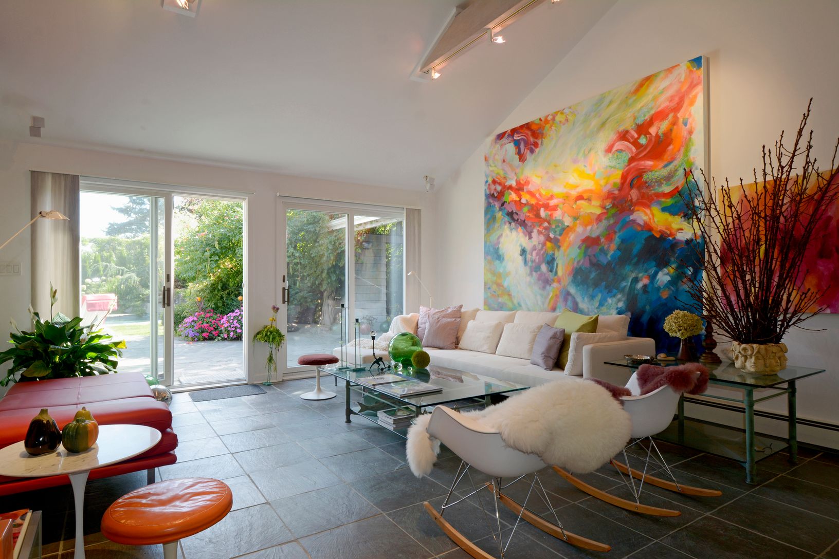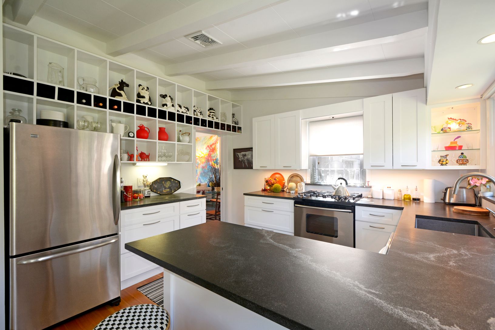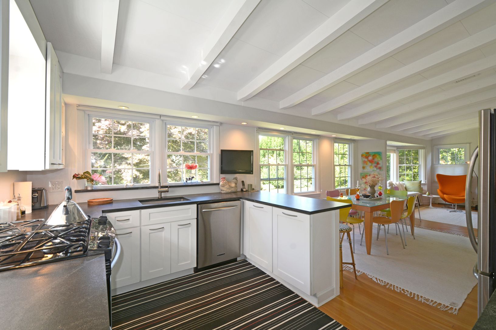 A very thoughtful design with two generous sized living areas. A chef's kitchen with all the amenities including soapstone counter tops and stainless steel appliances. The dining area is open to the kitchen and to one of the living spaces which h