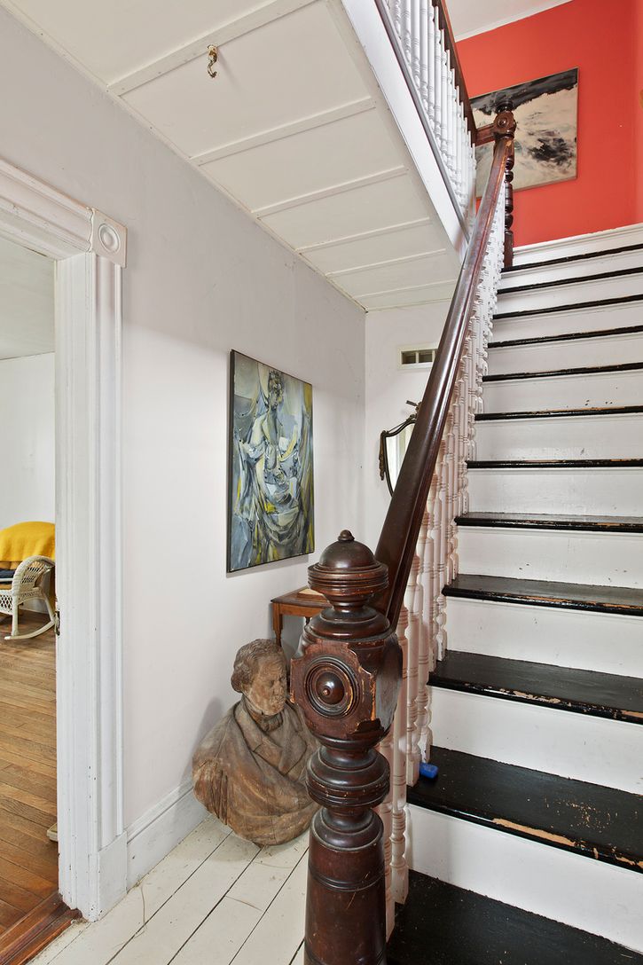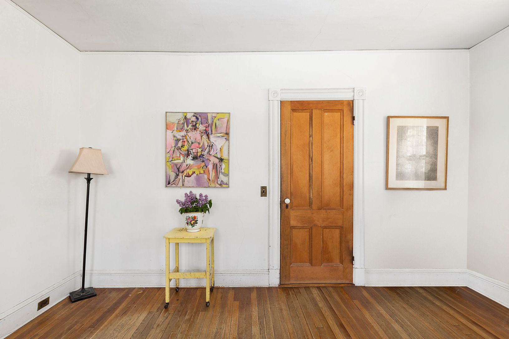 This two-story traditional c. 1890 has original features including the etched glass front door with door bell, staircase banister and floors. The first floor has two parlors, kitchen, bedroom and full bath. The second floor has a living area, three bedrooms and one bath with access to the large attic. Natural light pours into this classic house and has a partial basement in good shape with bilco doors. Natural gas for cooking and oil hot air f