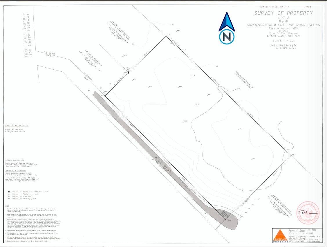 Located in East Hampton and opposite the marinas at 58 Three Mile Harbor Hog Creek Road exists this great opportunity to build on this 1.7 acre flat and rectangular shaped wooded lot. Room for substantial home, garage, pool and more. Adjacent to East Hampton town reserve land. Easy access to marinas opposite as well as restaurants and shops. According to survey and the Town Of East Hampton Building department permitted limits of Clearing is 28