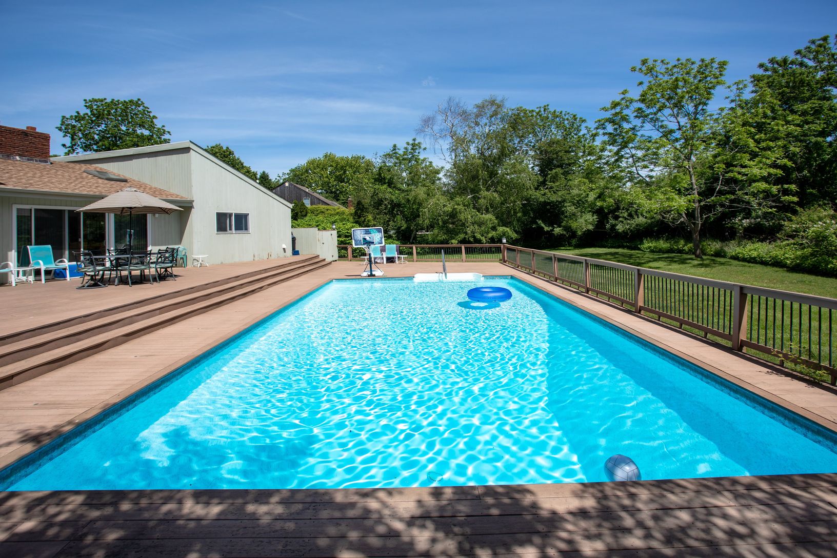 Come and enjoy this quaint Contemporary located just north of the highway in Amagansett. Three beds and two baths & central air. Take a dip in the heated pool or head into Amagansett main street just a few blocks away. Indian Wells Beach is an easy straight mile away. Great rental and a great price..